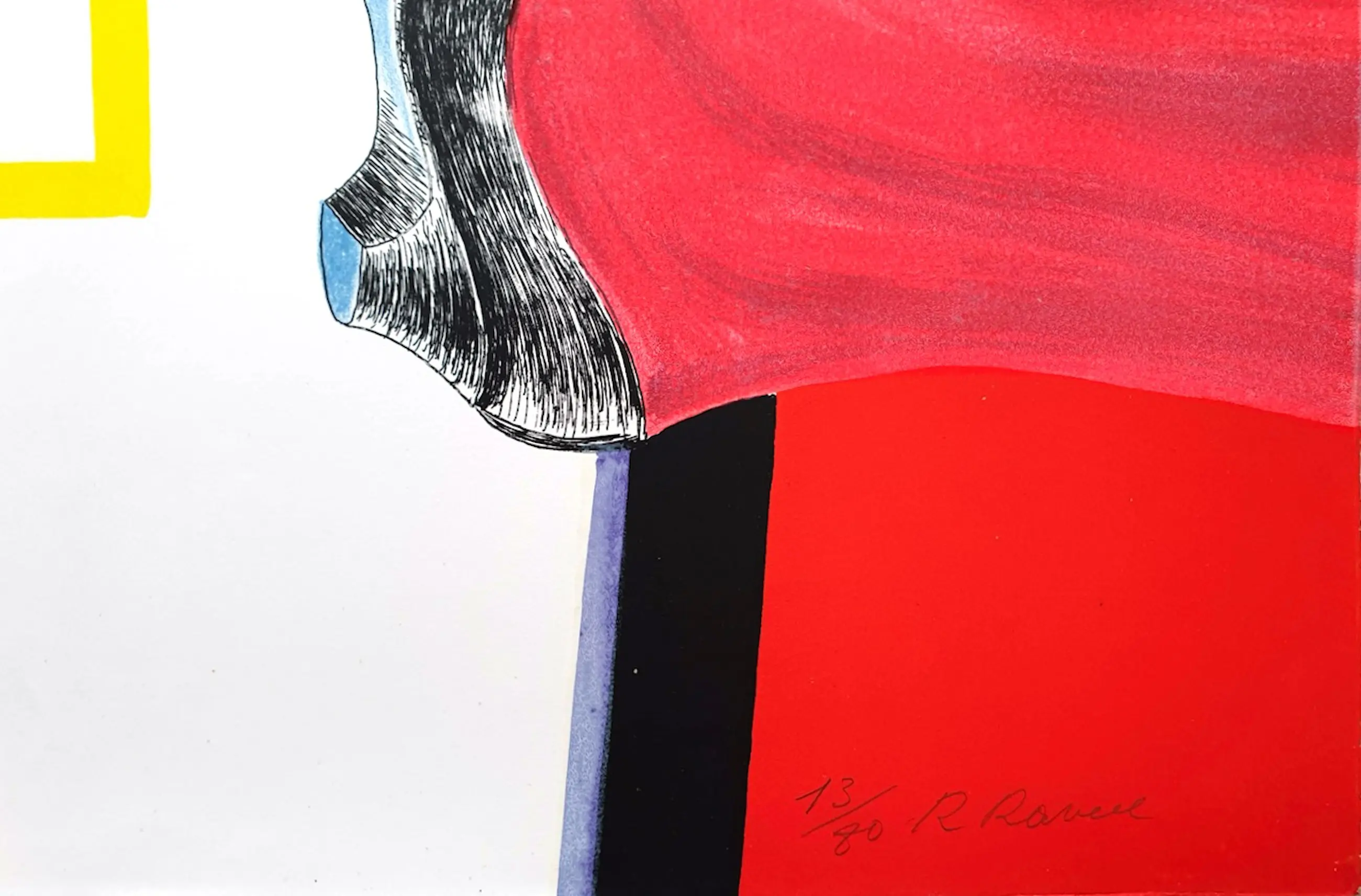 Een hoogtepunt in Raveels grafisch werk, ontstaan in nauwe dialoog met Hugo Claus. Inclusief het bijbehorende gedicht, rechtstreeks uit de originele grafiekmap, vormt dit een zeldzaam en compleet geheel voor verzamelaars.