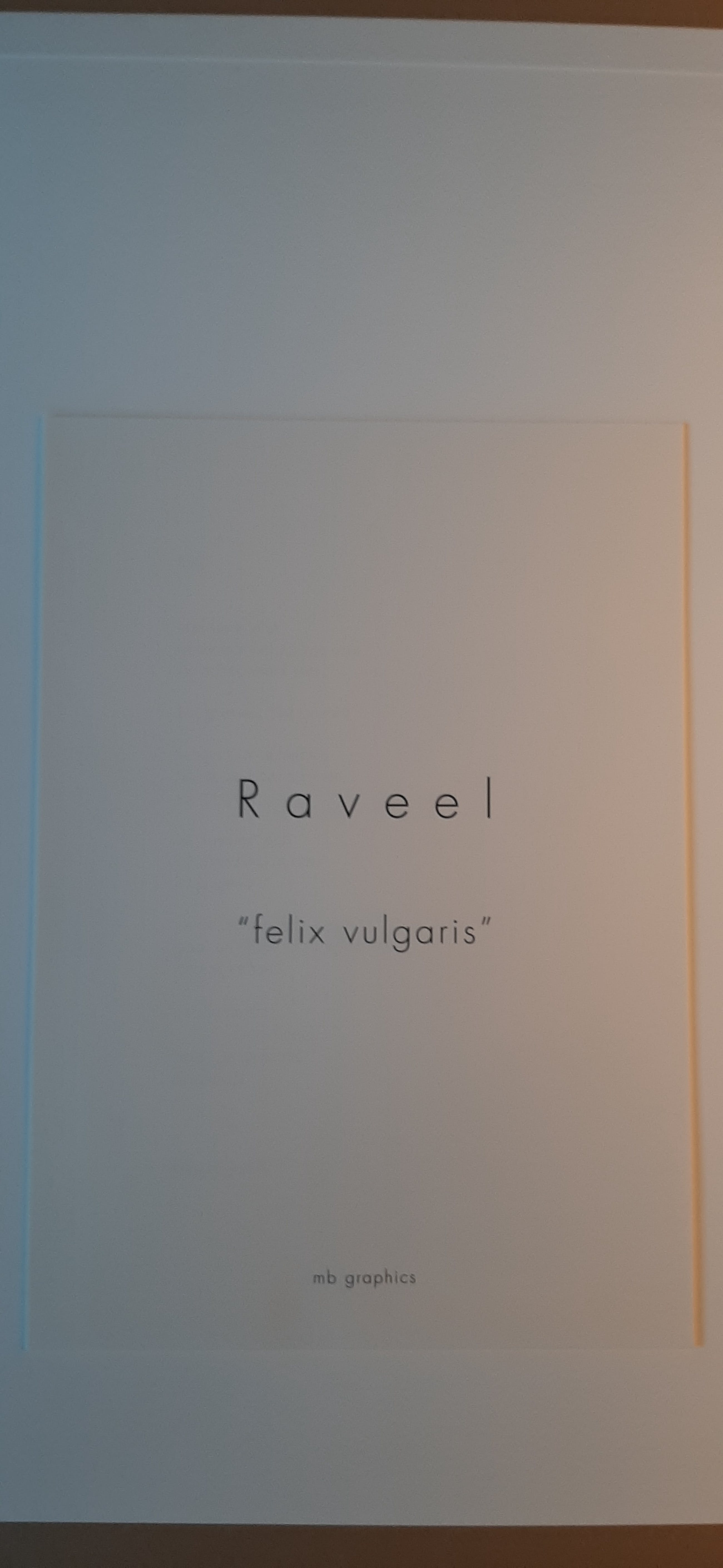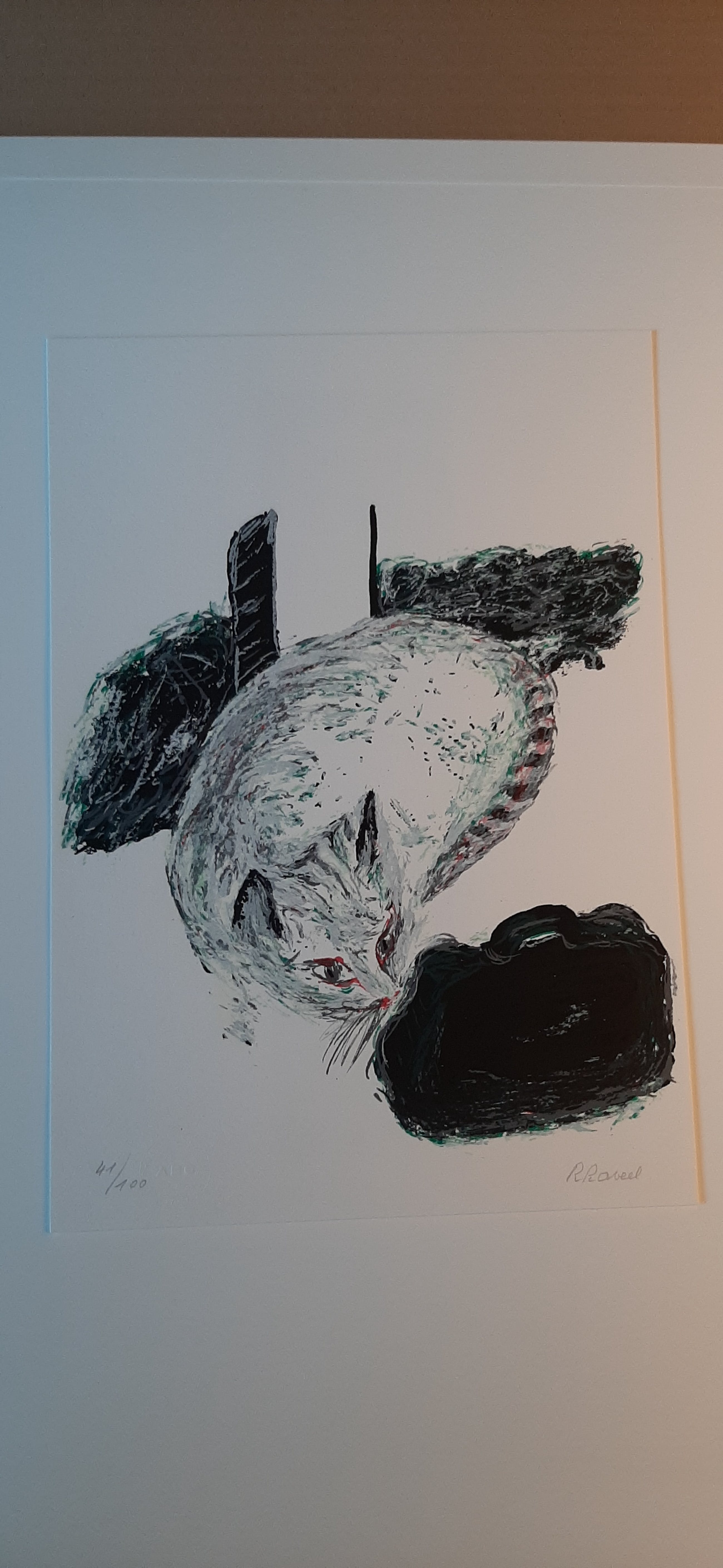 Bijhorend wordt een blad geleverd met een gedicht over katten van Roland Jooris, een blad met foto's van Raveel terwijl hij deze litho's signeerde en een voorblad met de titel. (totaal 4 bladen van 40 x 28 cm) Wordt geleverd met certificaat van galerie uit Knokke
