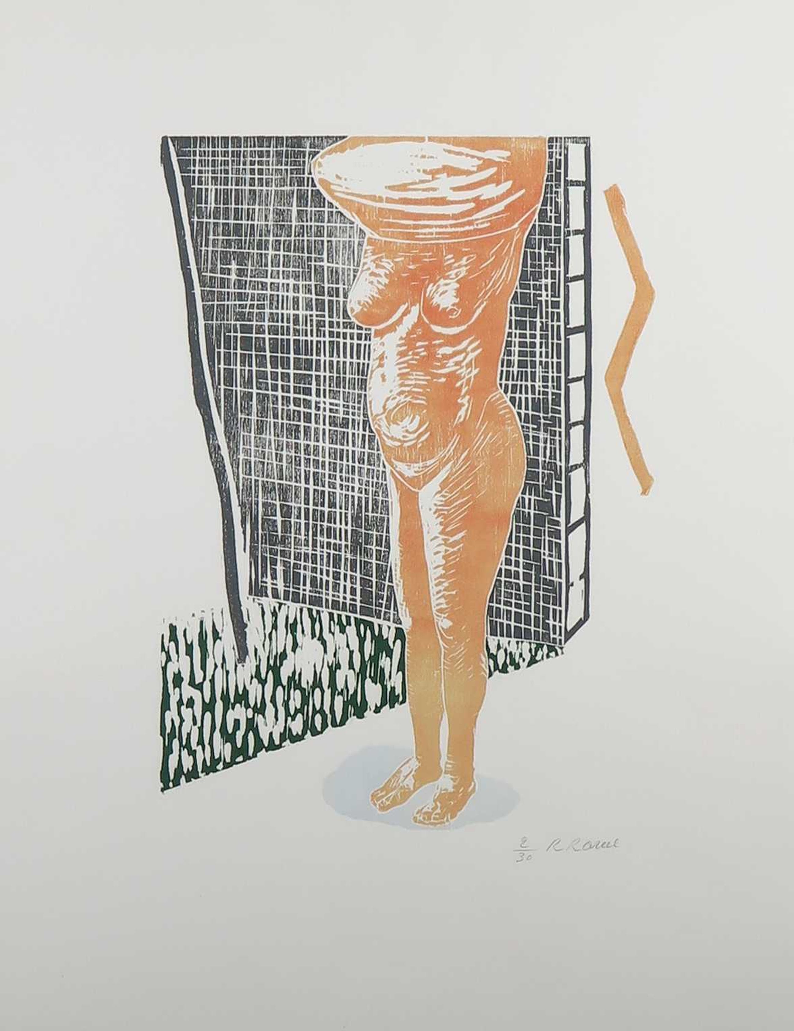 Houtsnede getiteld Naakt uit 1983.