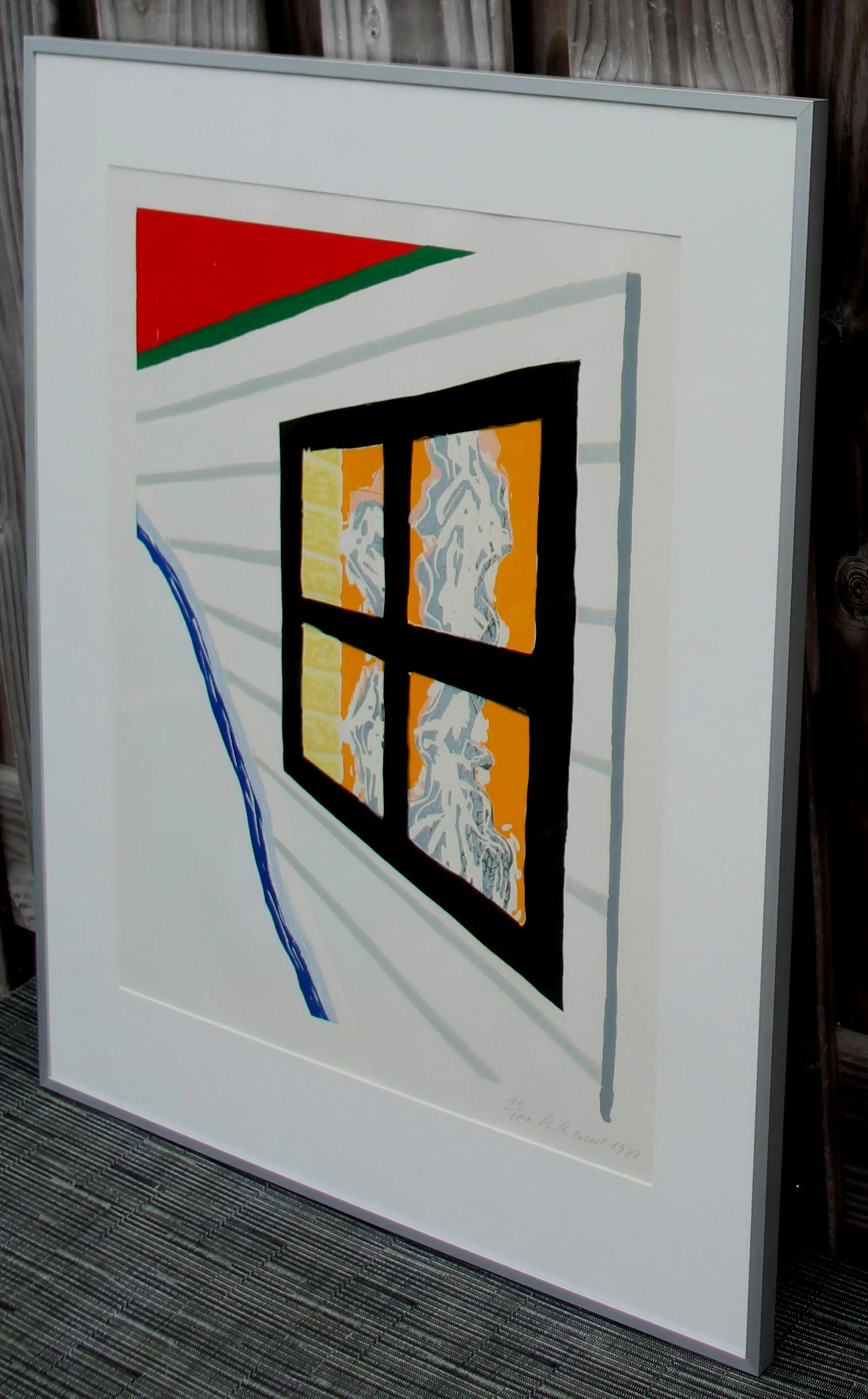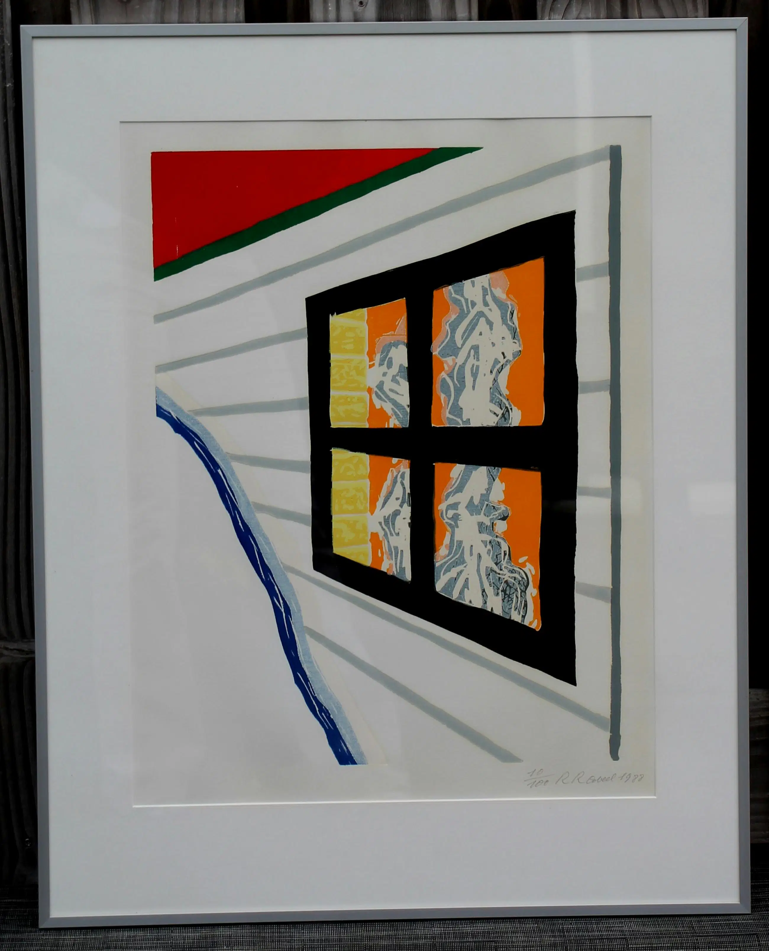 Ingelijste zeefdruk van Roger Raveel. Titel: 'venster in Tourves'. Jaar: 1988. Oplage: 10/100. Afmetingen incl lijst: H79 x b57cm. Afmetingen voorstelling: H50 x b37.5cm. Het werk is rechts onderaan gesigneerd door de kunstenaar. De authenticiteit van het, aangeboden, werk wordt volledig gegarandeerd. Een certificaat van echtheid kan, op aanvraag, worden gemaild.