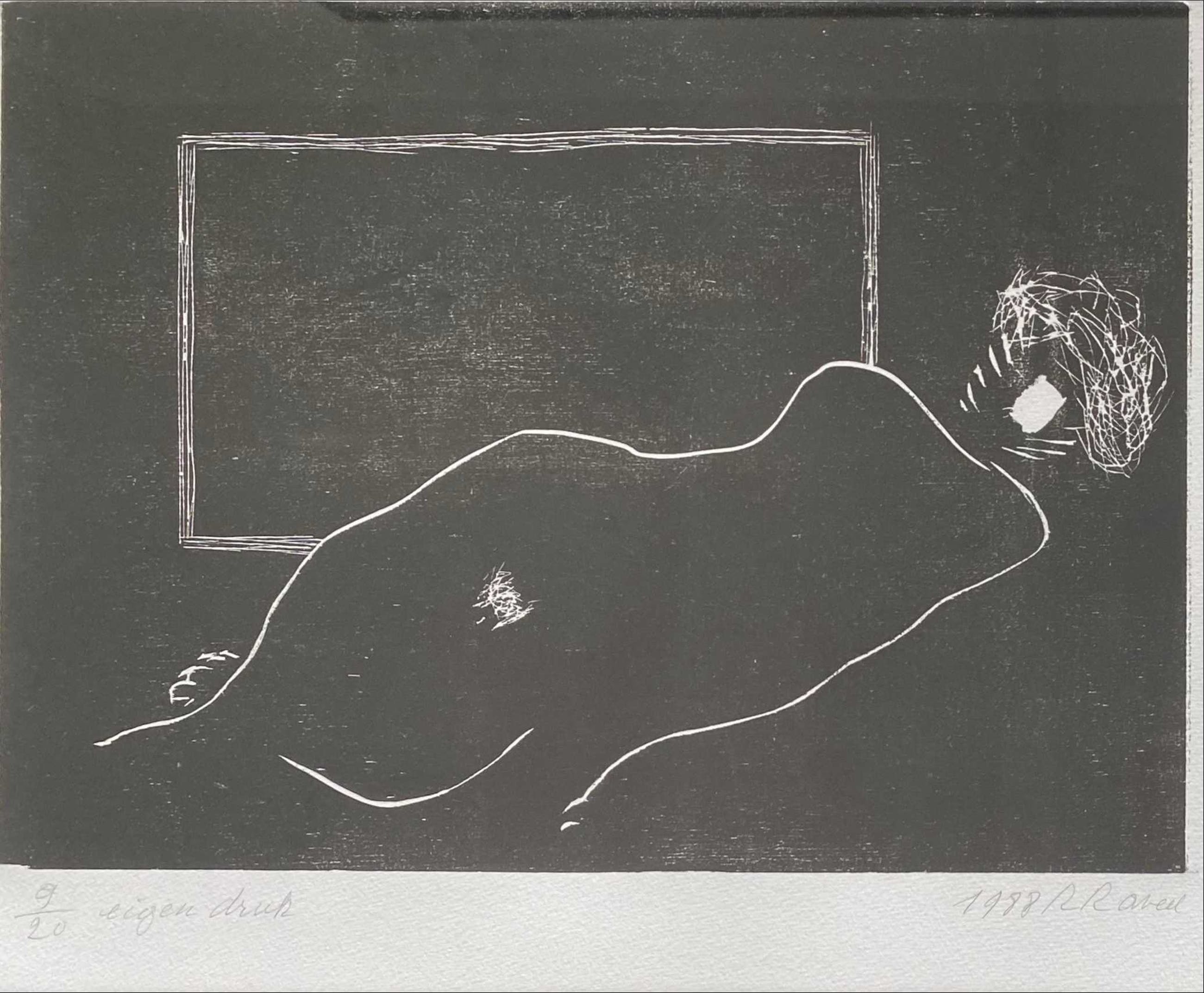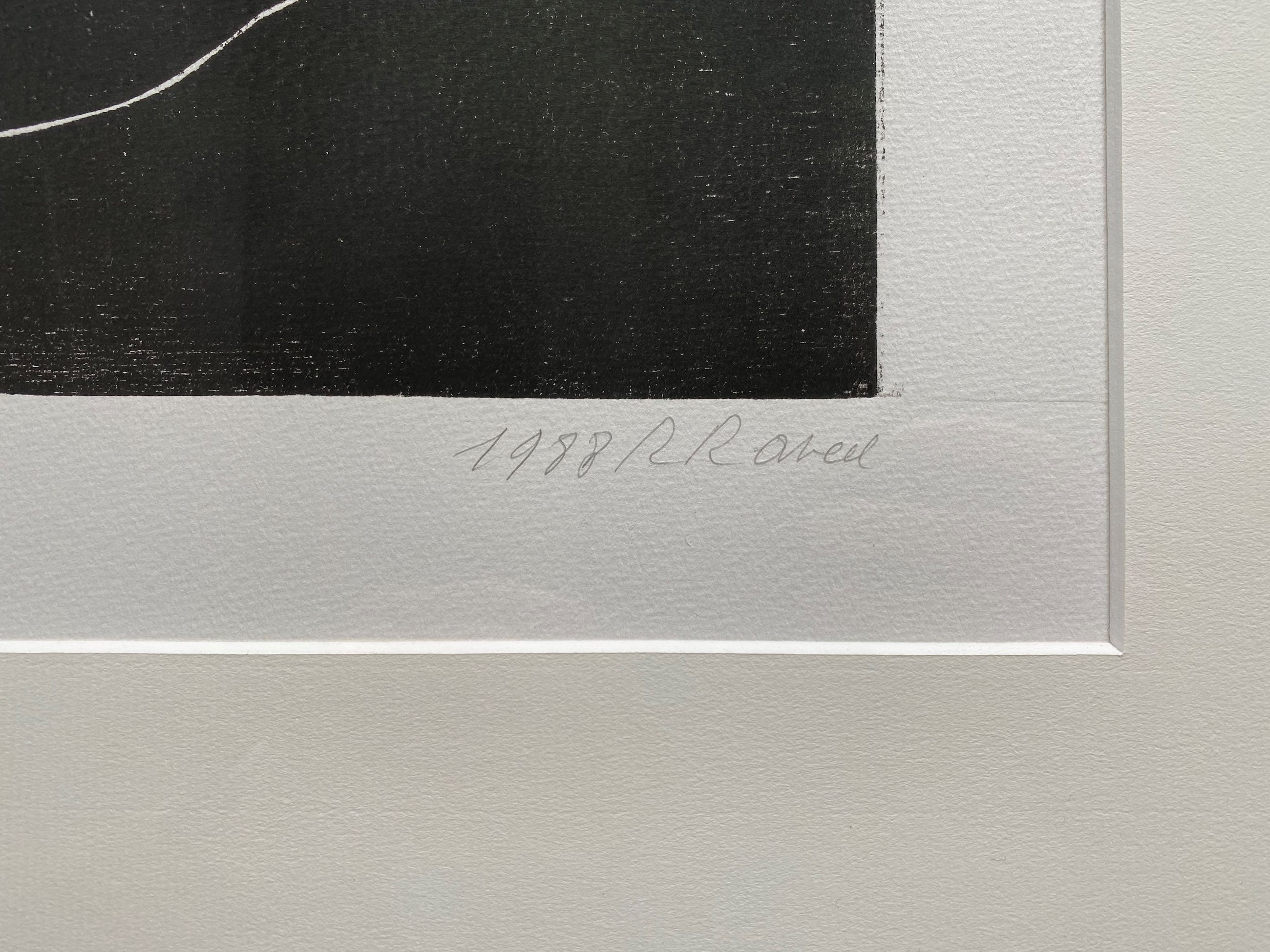 Litho Raveel, lage oplage, bijschrift 'eigen druk'.