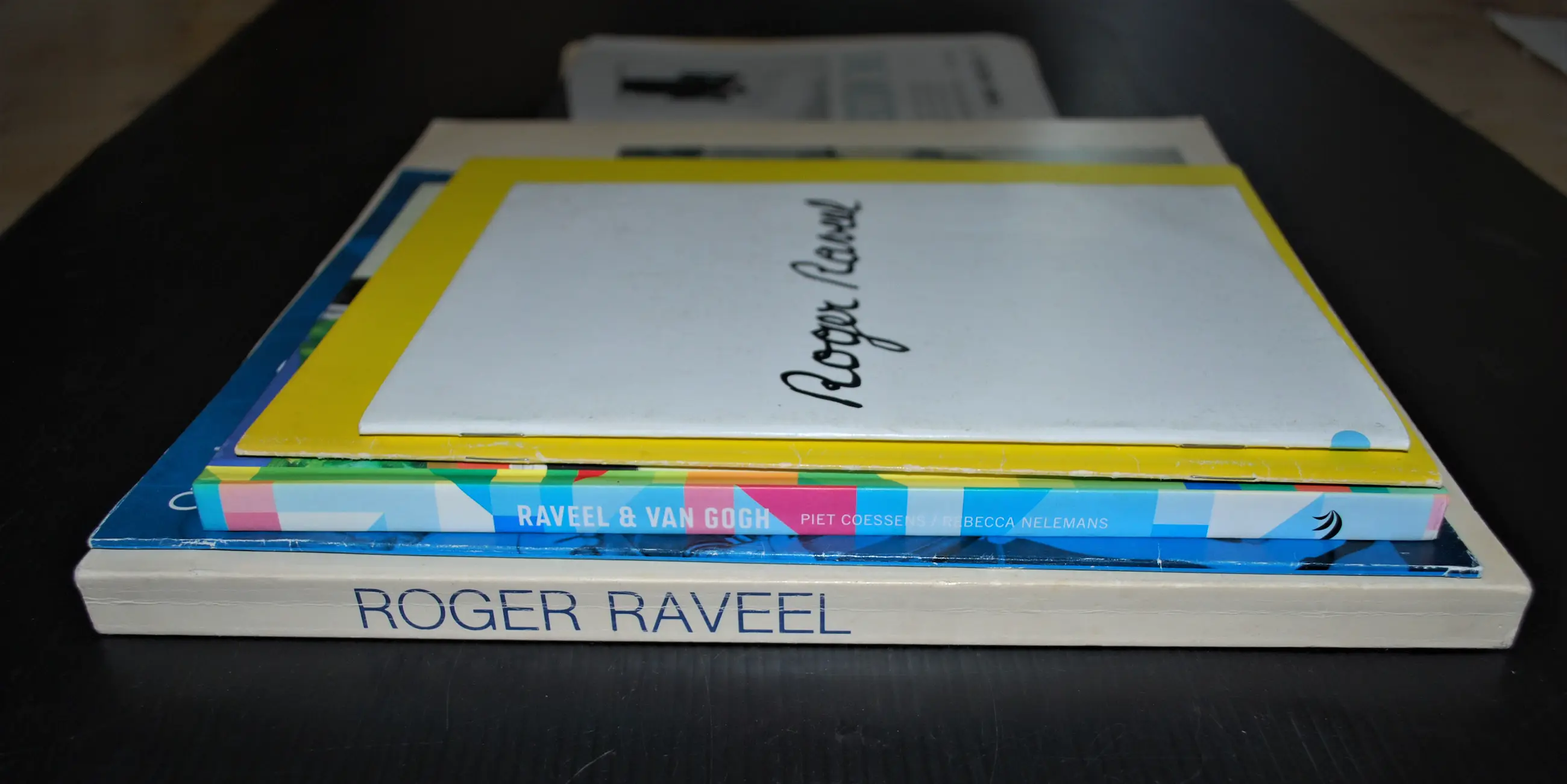 - Openbaar Kunstbezit, met de keuzes van Raveel en zijn toelichting (betreft Lucas Cranach, Spilliaert,de Smet, Permeke, Frits van den Berghe, Brusselmans, Magritte, Jim Dine, Gerhard Richter, Raoul de Keyser). Interessante thema-brochure, 25 pag. in kleur en zw/w. In goede gebruikte staat, ezelsoor achterkant.