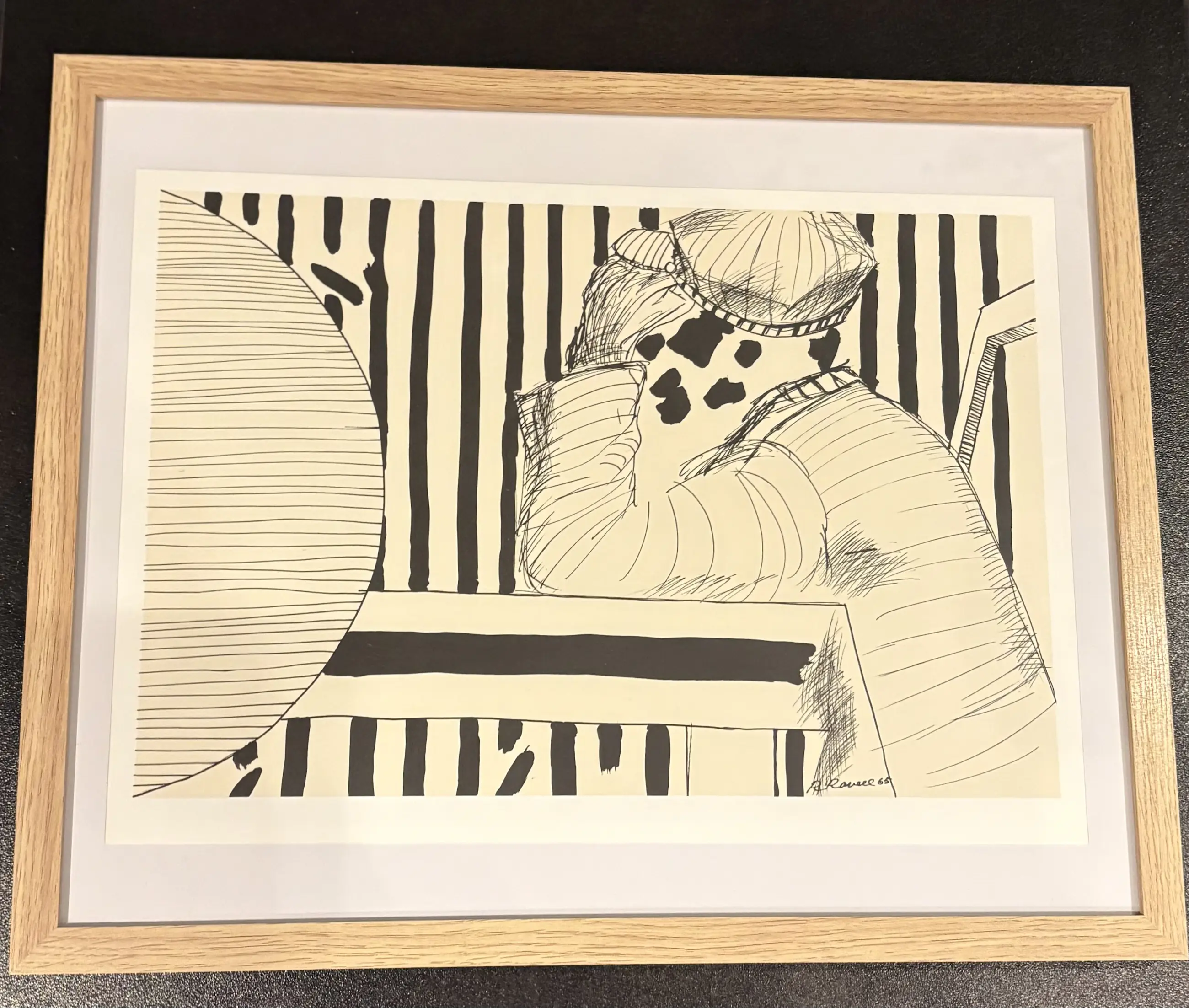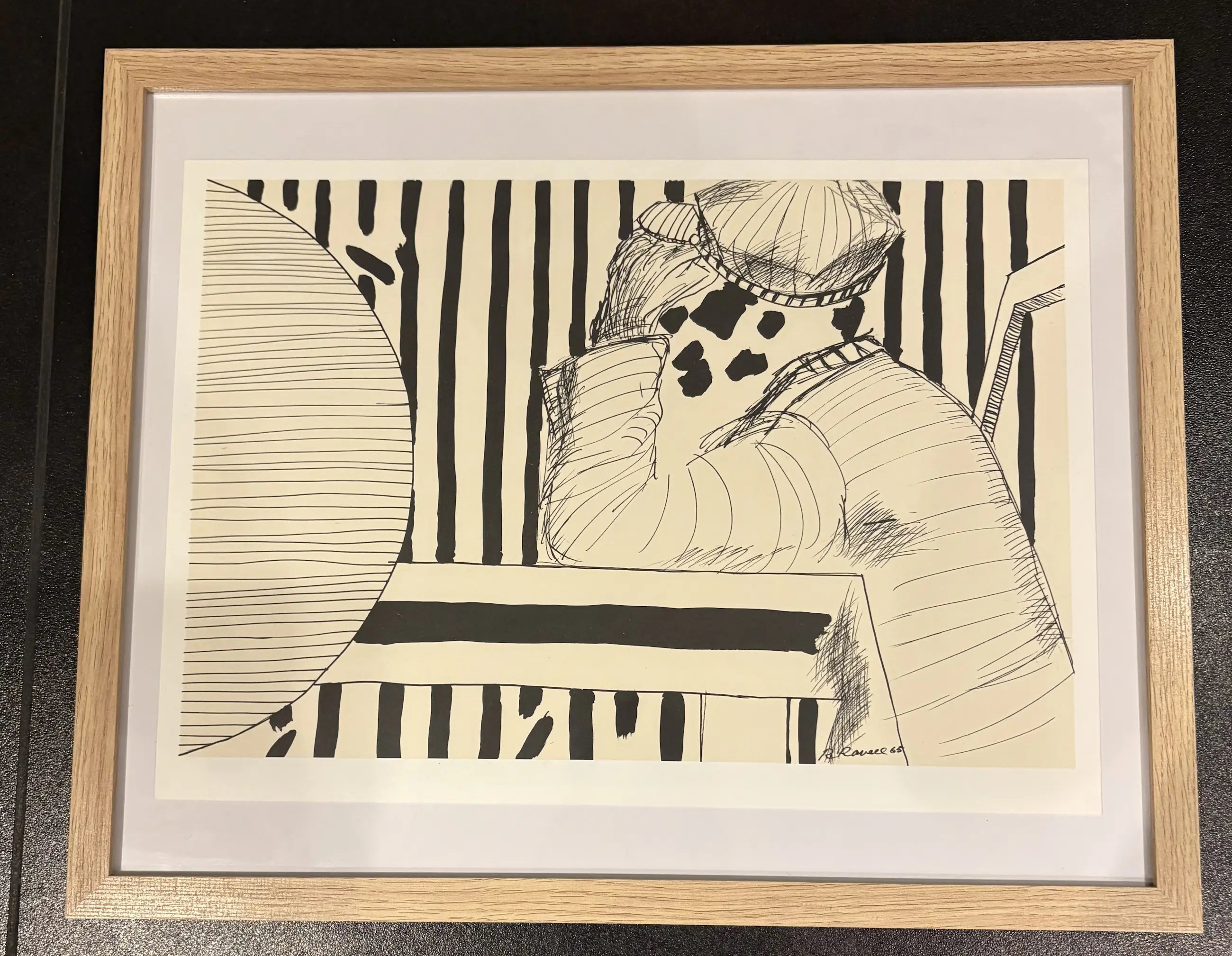 Offset “dubbende man” van Roger Raveel Afkomstig uit kunstmap hedendaagse Belgische kunstenaars, in oplage van 750 stuks. Jaar: 1977 Niet genummerd/ gesigneerd Mooi Ingeframed in kader 50x40 cm