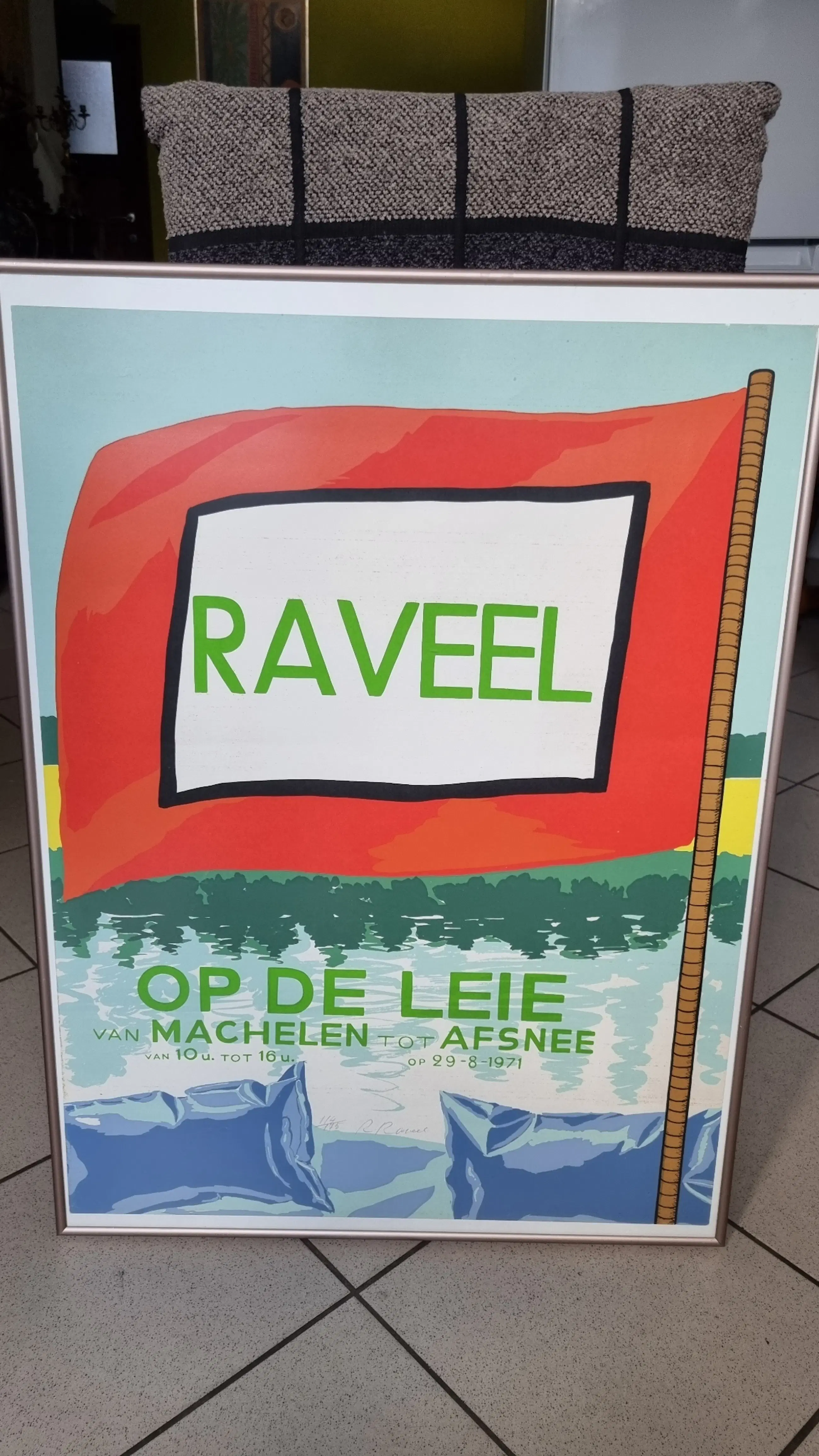 Dit meesterwerk van Roger Raveel, "Raveel op de Leie van Machelen tot Afsnee," vangt de betovering van de Belgische natuur in levendige kleuren en scherpe lijnen. De schilderij toont de serene Leie, waar realisme en symboliek samenkomen. Dit is niet alleen een visueel genot maar ook een investering in het erfgoed van een van België's meest invloedrijke kunstenaars. Authentiek en in uitstekende staat.
