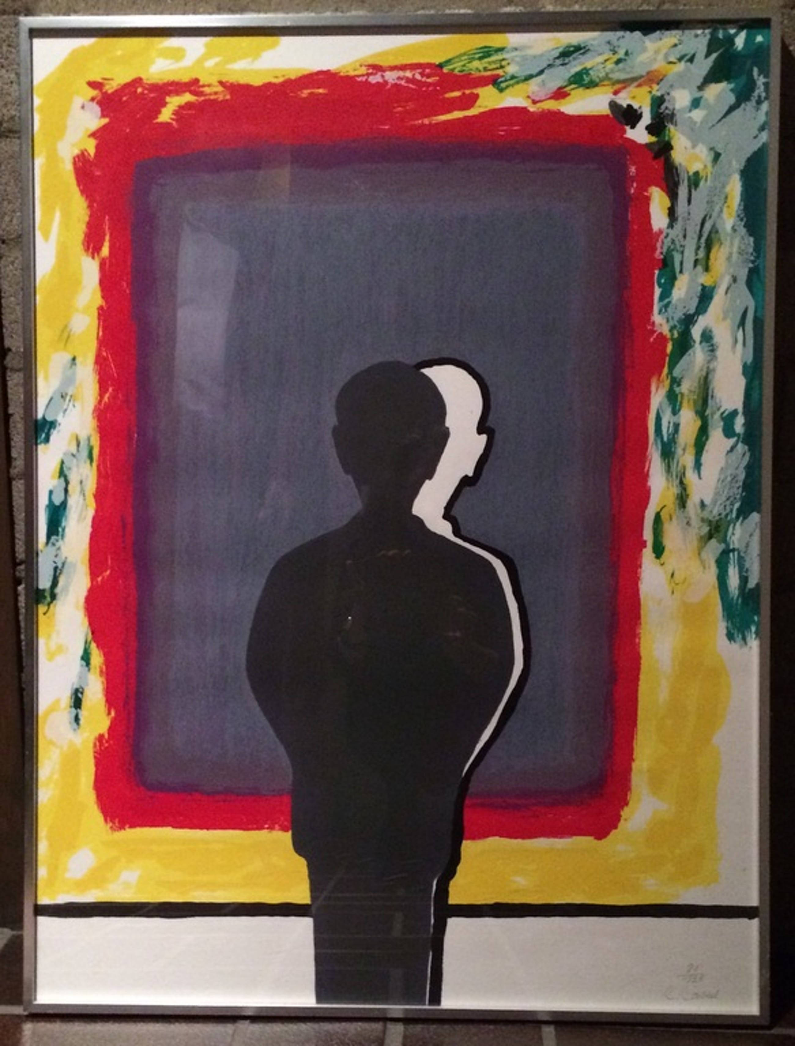 Ingelijst in aluminiumlijst zonder passepartout.