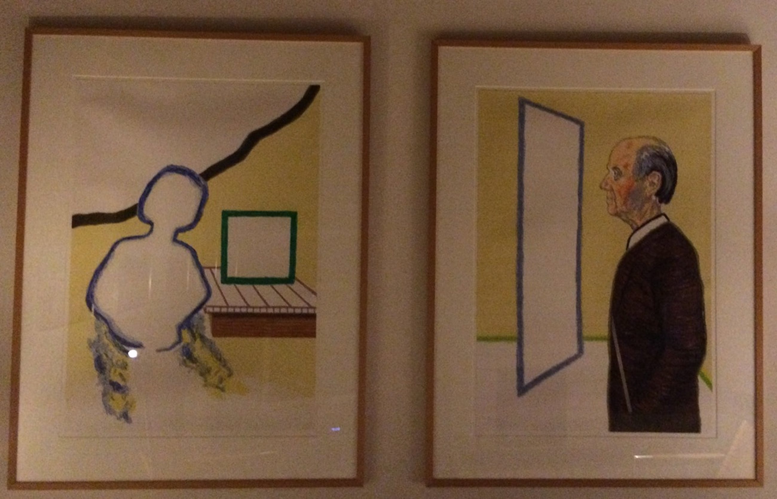 Volledige titels: "Zelfportret in profiel voor de leegte van een rechthoek in perspectief" en "Toen zat zij aan een tafel". Beide zijn in een houten lijst ingelijst. Afmetingen lijst: 125 x 96 cm; formaat afbeeldingen: 98 x 68 cm. De werken zijn in een uitstekende conditie, gesigneerd, herkomst gegarandeerd en aantoonbaar.