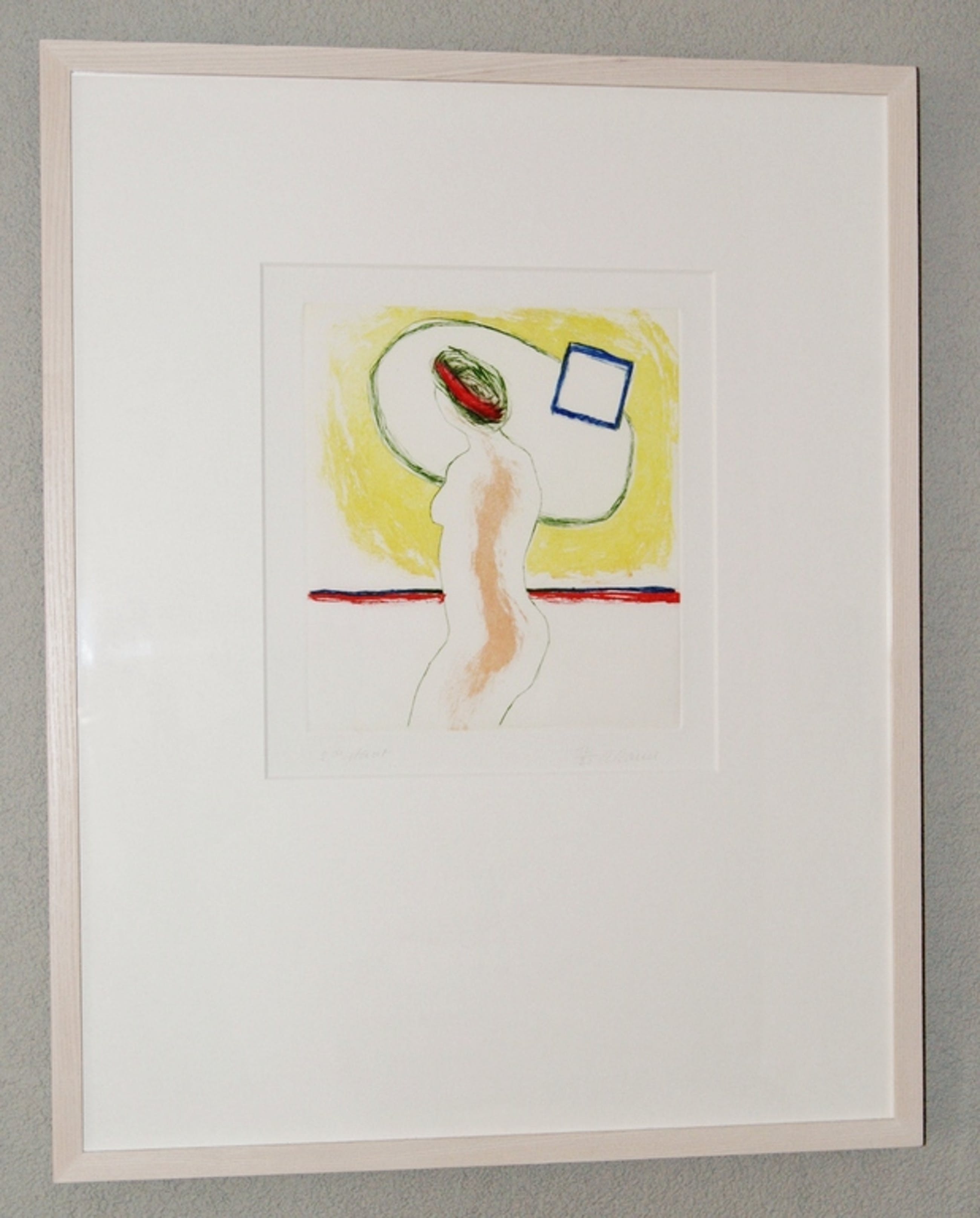 Een vrij zeldzame kleuren ets 'Naakt' van Roger Raveel uit 1988, oplage 20 ex.