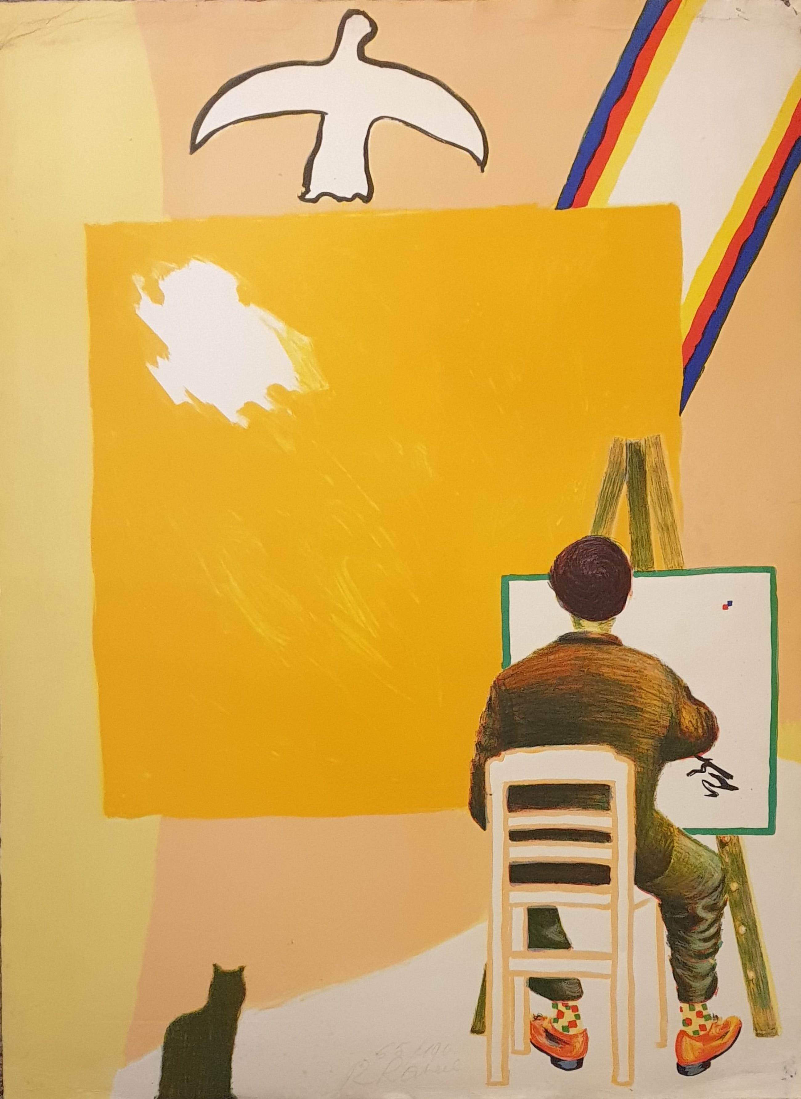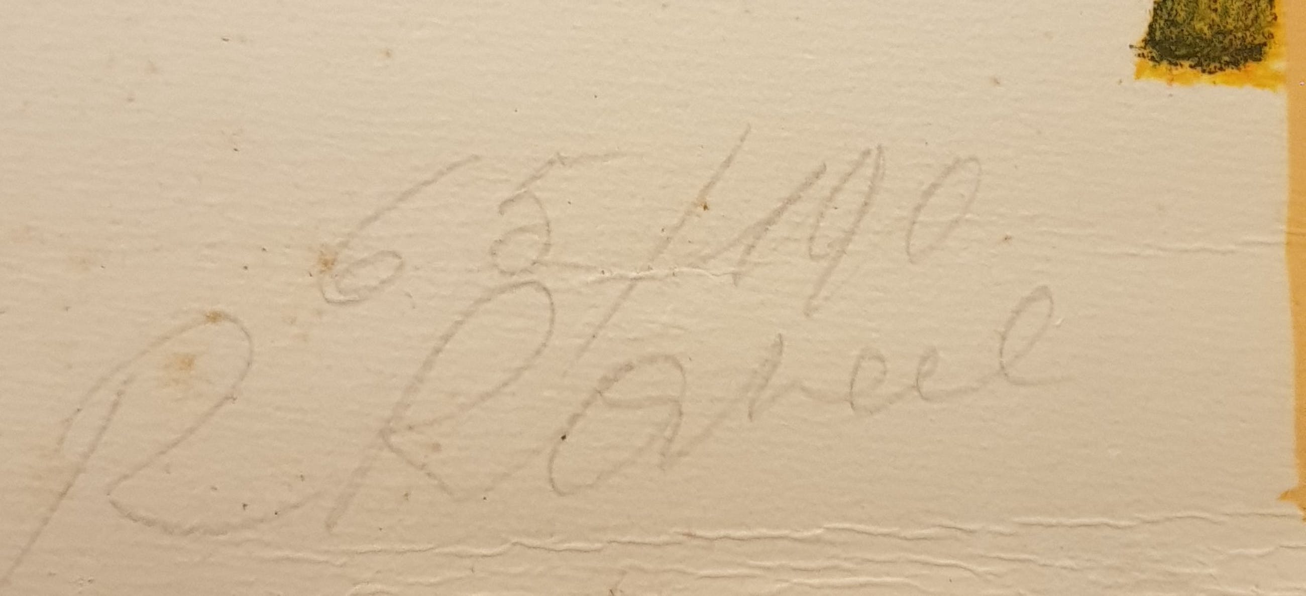 Kleurenlitho, potlood gesigneerd en genummerd 64/190 midden onder uit de serie Prent 190