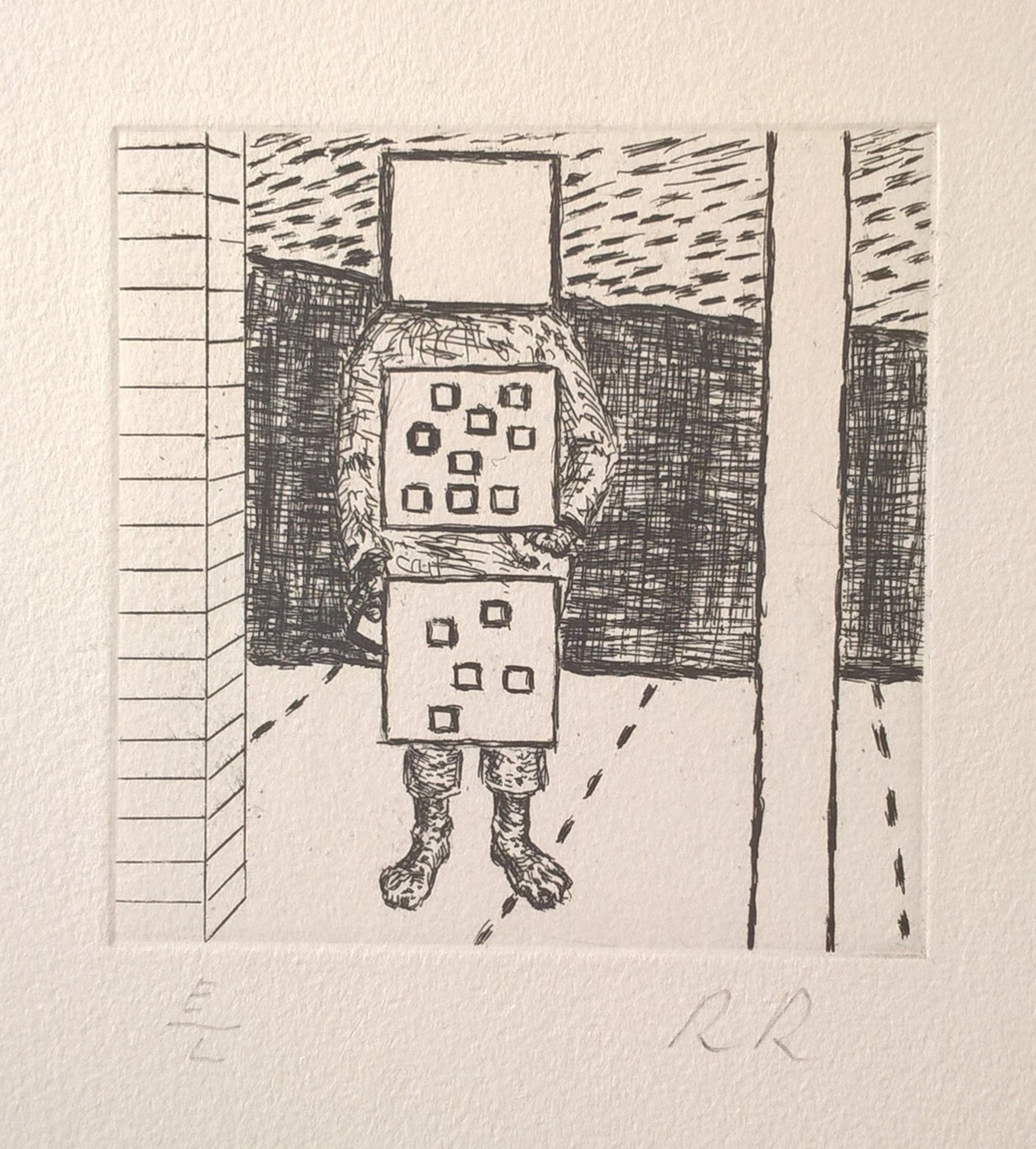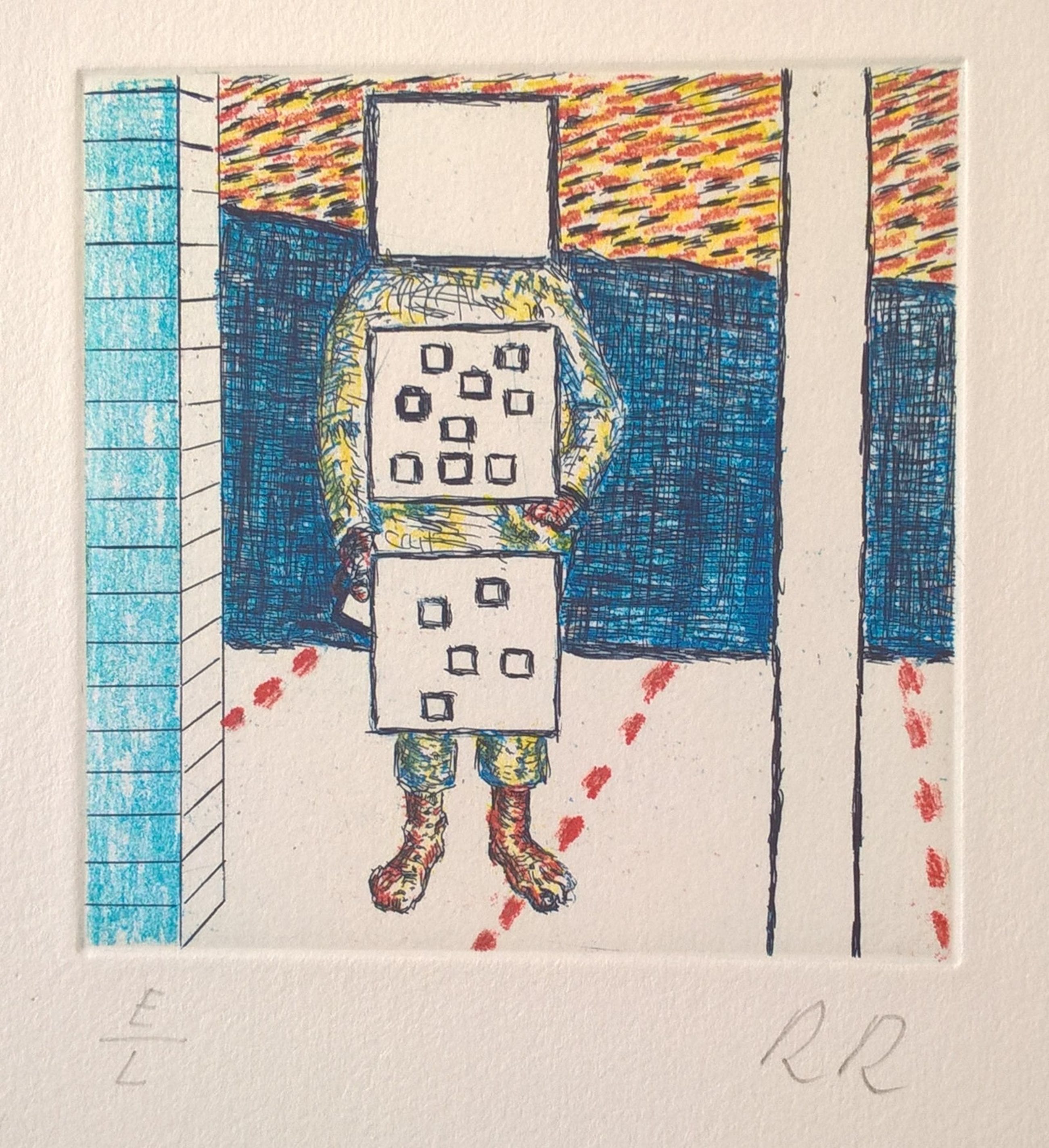 Bibliofiele uitgave van Roger Raveel - Waarom - uit 2002. De 2 losse etsen zijn in potood gemonografeerd , de colophon is in potlood handgesigneerd. De ingebonden ets is niet gesigneerd of gemonografeerd. Afmeting 32 x 24 cm Beeld van de etsen 9.5 x 9.5 cm. Op de 1e lege pagina zit een ezels oor, verder goed.