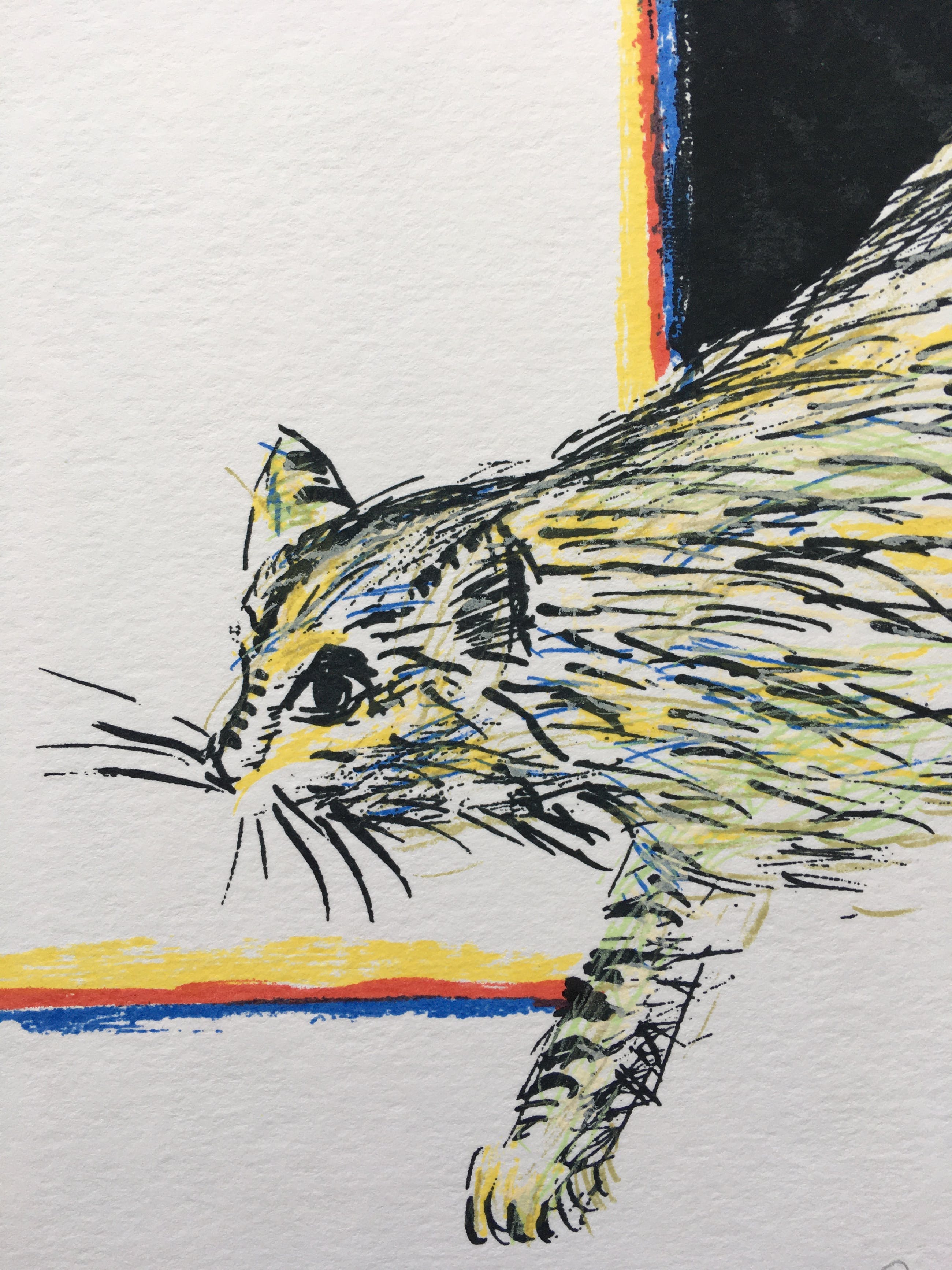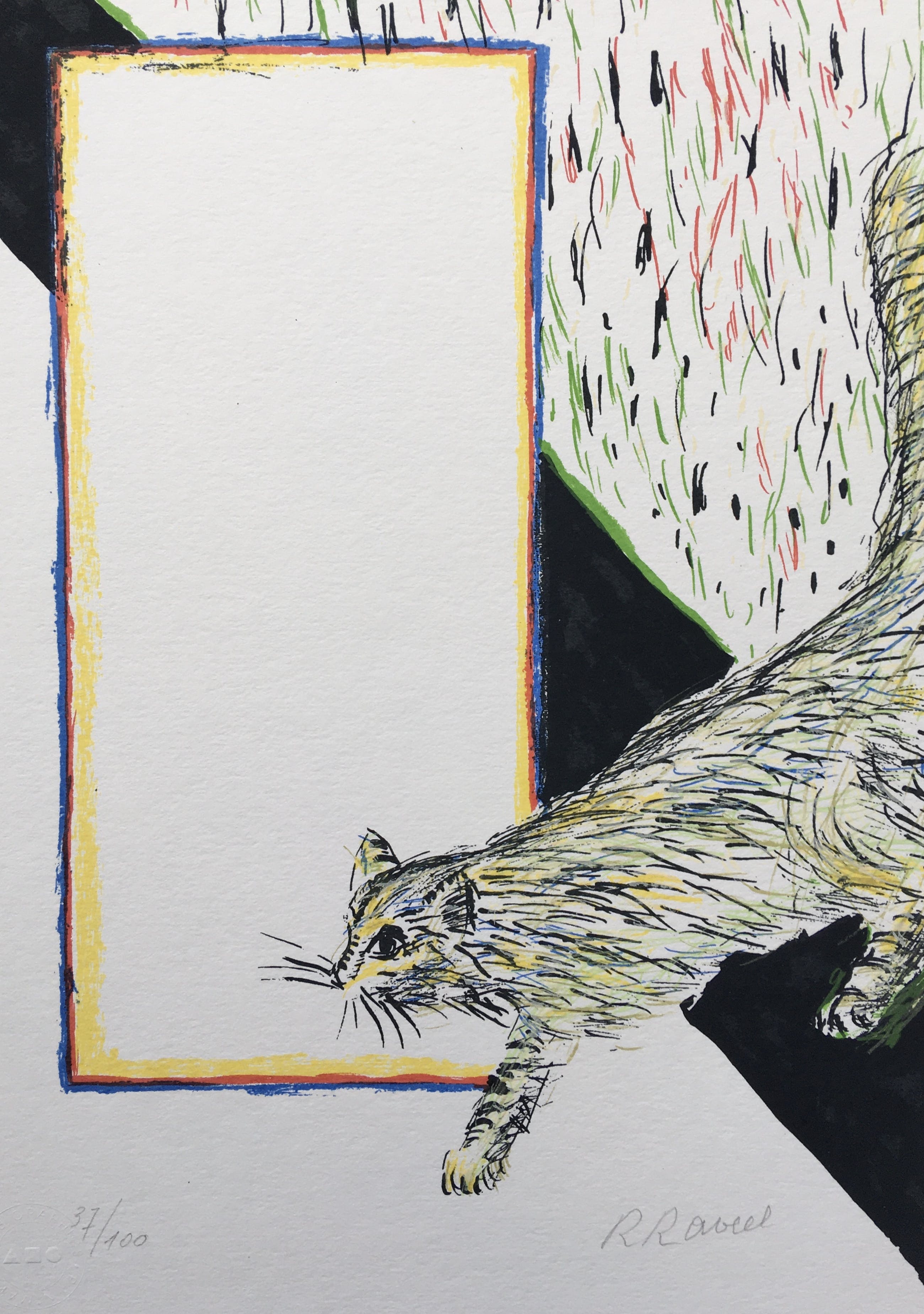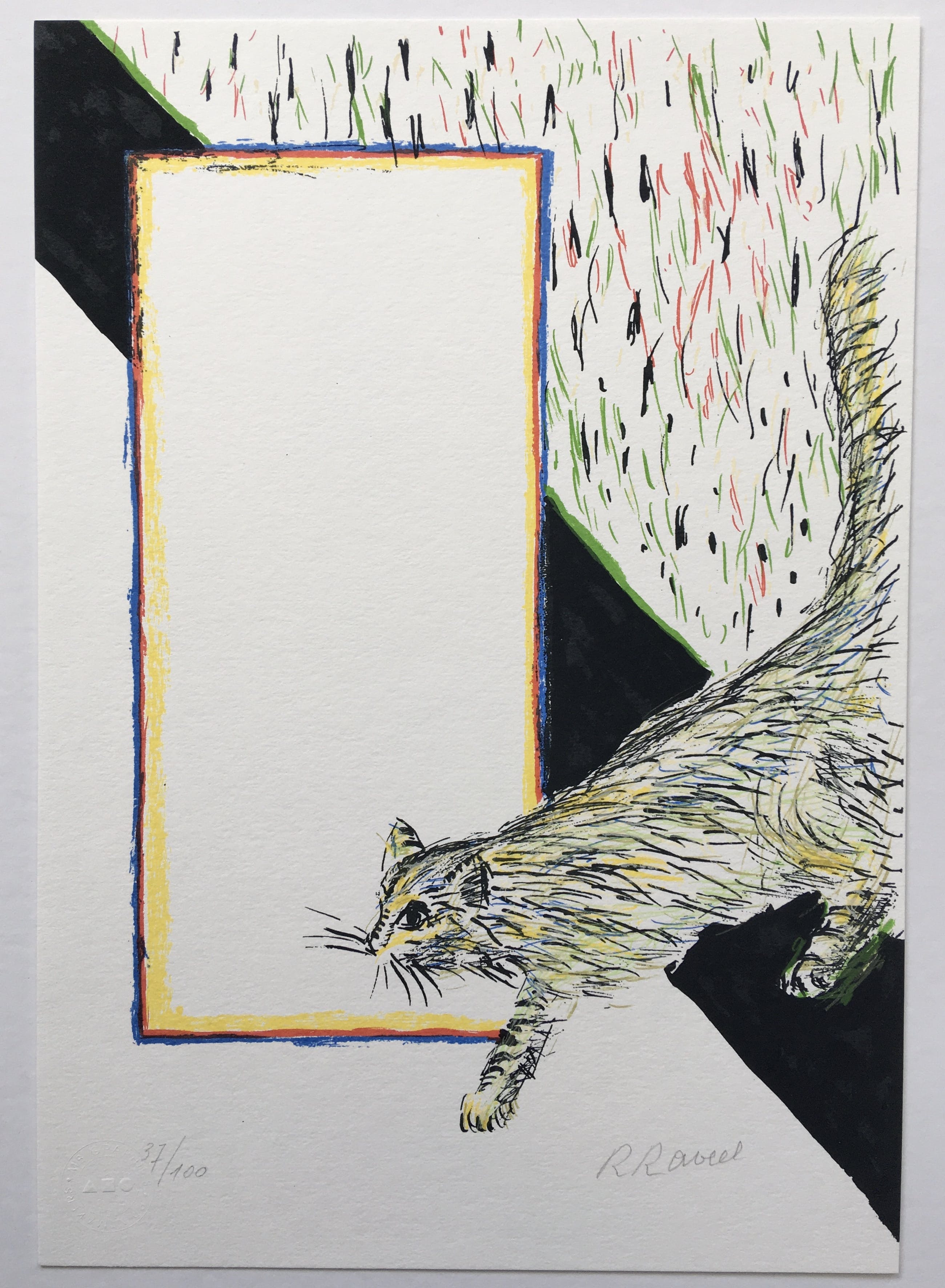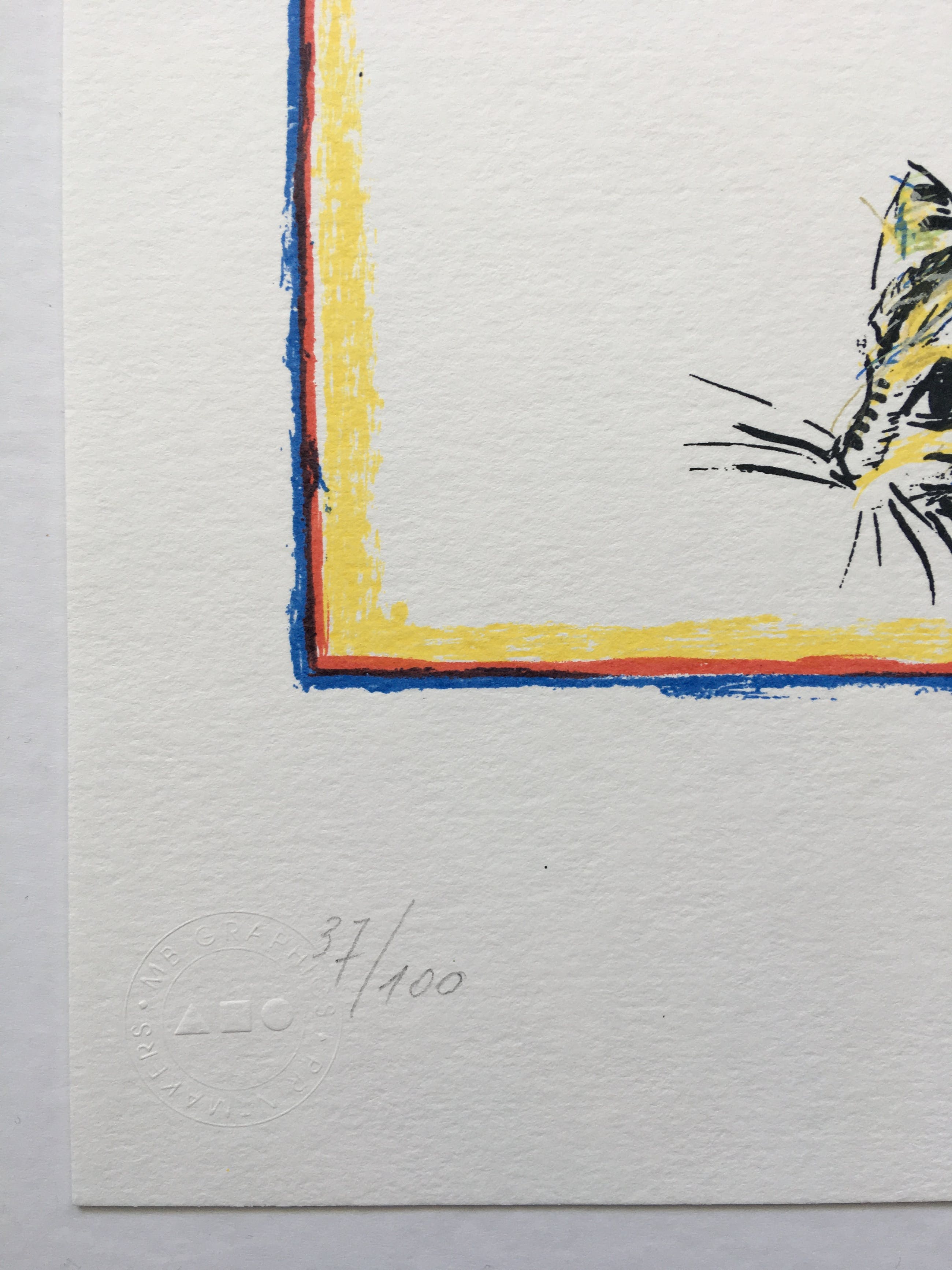 Fraaie zeefdruk van de Belgische kunstenaar Roger Raveel uit de serie Felix vulgaris. Het werk is gesigneerd en genummerd, oplage 37/100. De zeefdruk is in perfecte conditie.