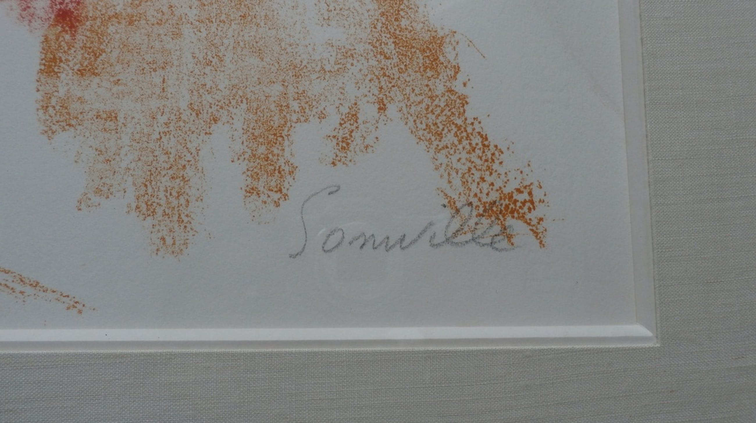 Ingelijste litho van Roger Somville. Het werk is met potlood, onderaan het blad gesigneerd door de kunstenaar. Afmetingen blad: h106 x b86 cm. Afmetingen voorstelling: H72 x b53 cm. De authenticiteit van dit werk wordt volledig gegarandeerd. Een certificaat van echtheid kan, op aanvraag, worden meegestuurd.