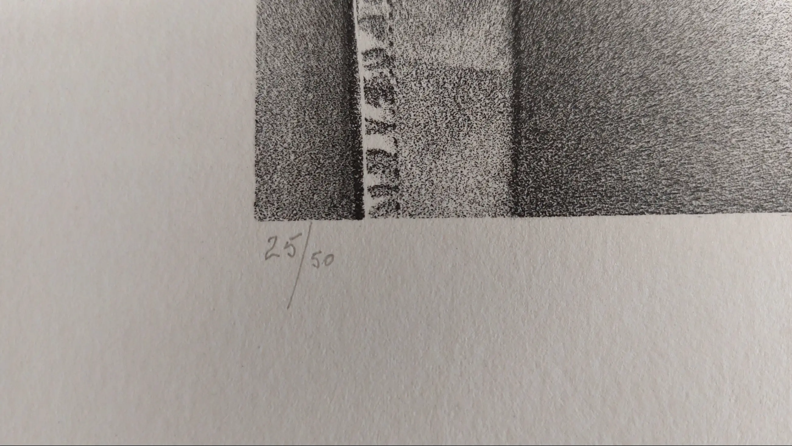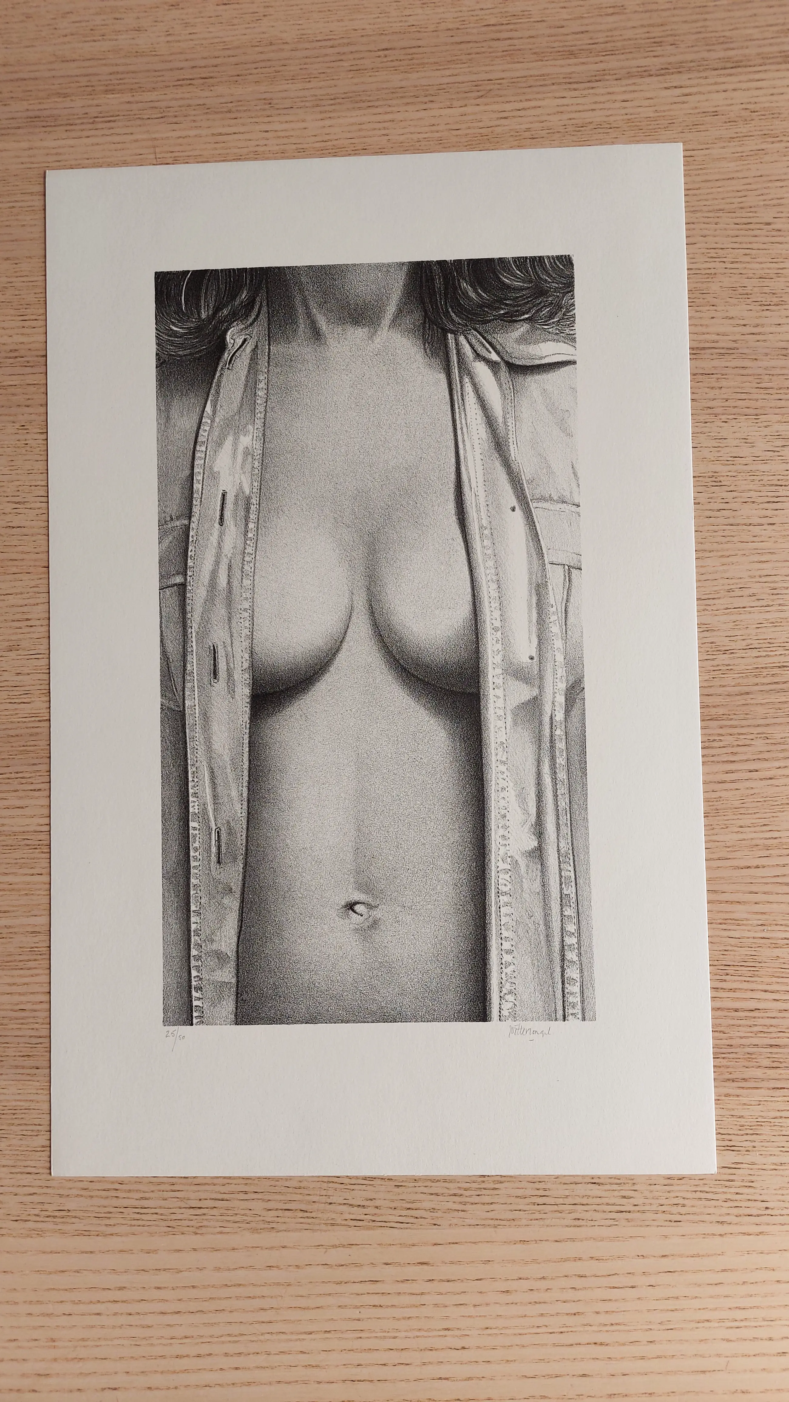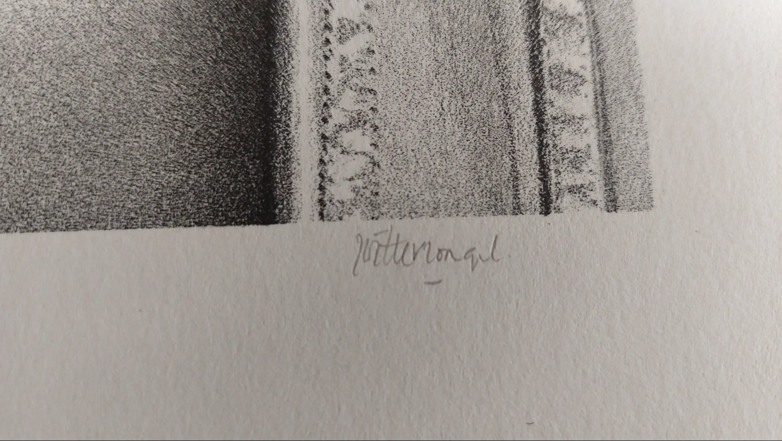 Litho in uitstekende staat, afgedekt en beschermd bewaard. Afmetingen van het werk zelf zijn 30.5 cm op 17 cm, het papier zelf is 41 cm op 26 cm.