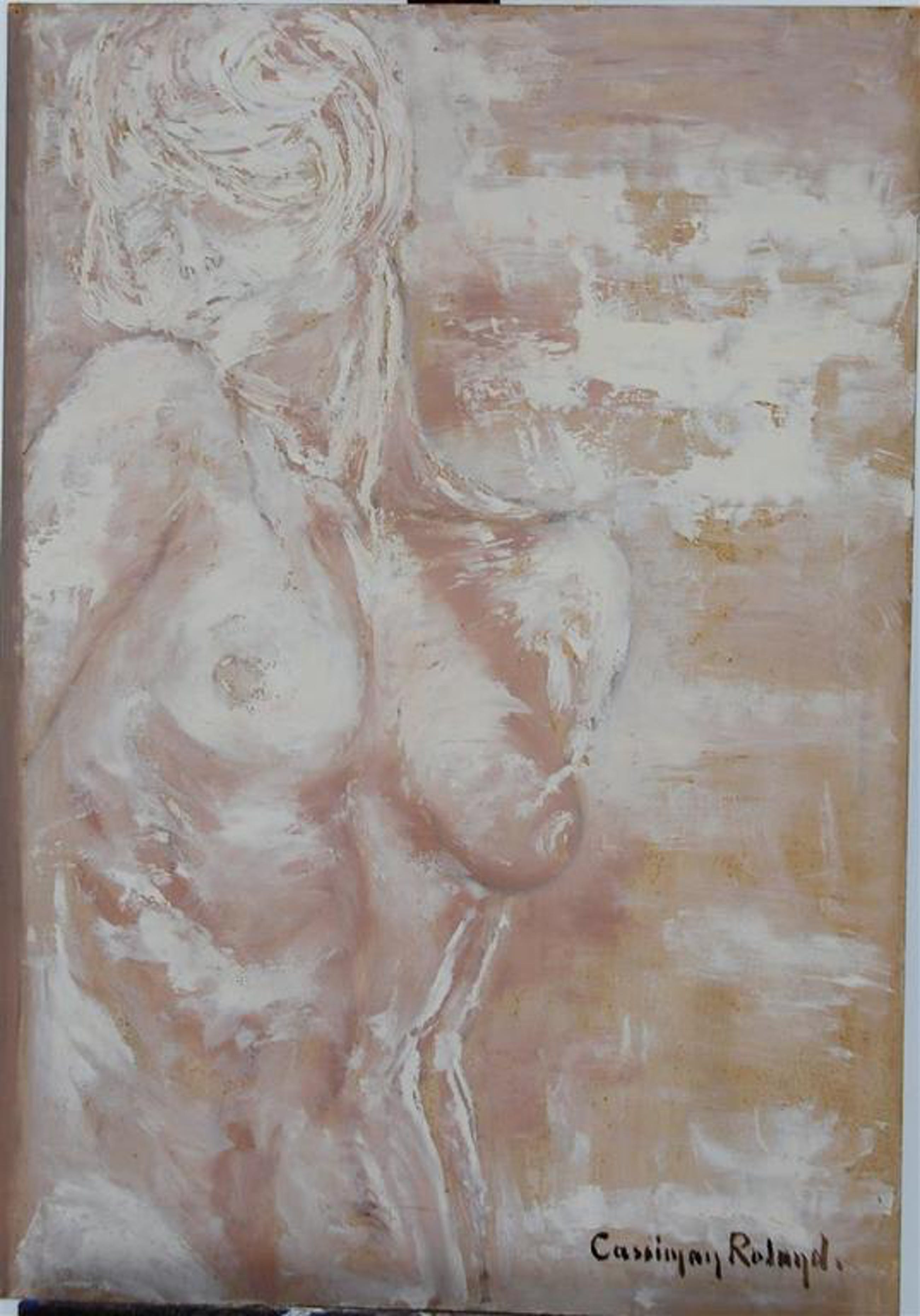 SCHILDERIJ OLIE OP HOUT "NAAKTE VROUW" VAN CASSIMAN ROLAND