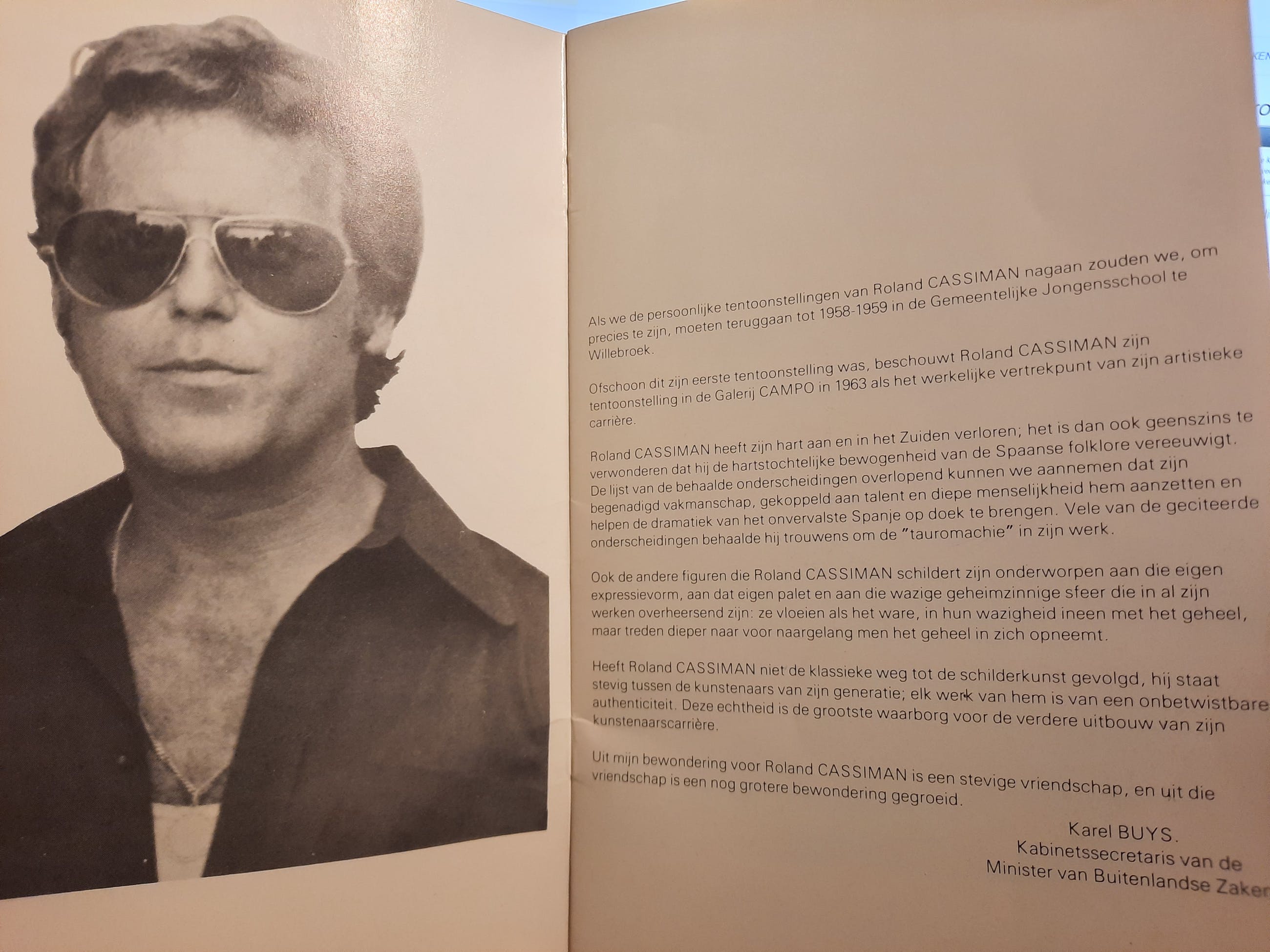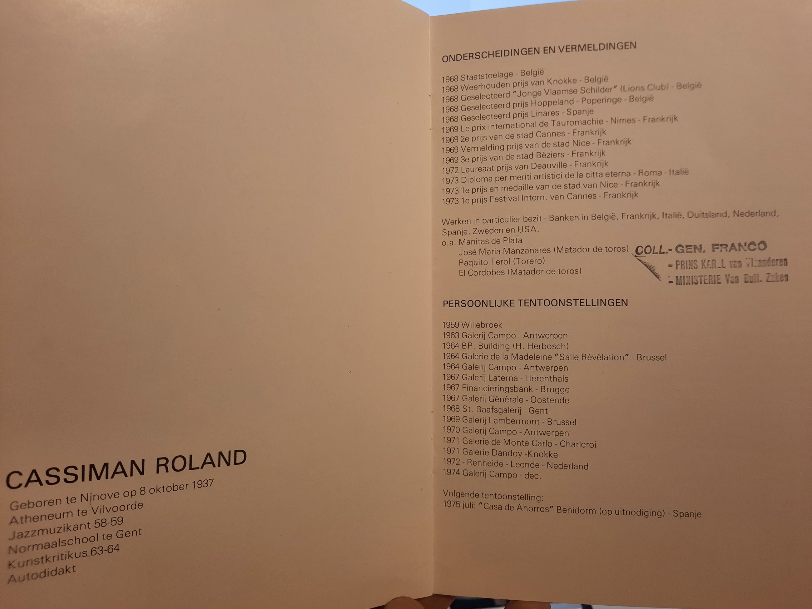 Het centrale thema van Roland Cassiman is de mens. De mens niet in zijn totaliteit, maar als individu. Om dit te begrijpen heb je alleen gevoel nodig; geen uitleg, geen installatie. Hij is nooit naar een academie geweest, hij is autodidact. In het begin schilderde hij in straten in donkere kleuren, expressionistisch. Vervolgens werden het menselijke figuren en portretten. Woont en werkt in België en Spanje. Cassiman maakte werken voor o.a. Manitas de Plata, “El Cordobes”; José Mari Manzanares; “Domecq”, Luis Francisco Espla, Paco Camino, Palomo Linares, Clem Schouwenaars, Chet Baker, Philip Catherine e.a. gekende figuren. De enige Belgische kunstenaar die ook tijdens een “Corrida de Prensa” in Spanje een “toro” (stier) werd opgedragen.