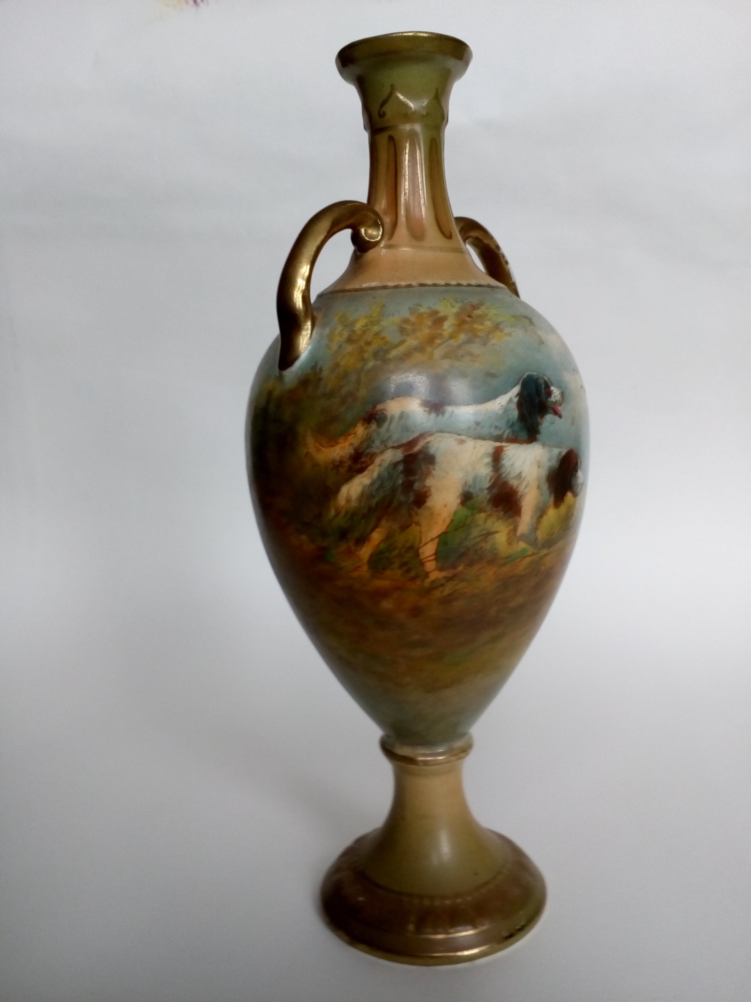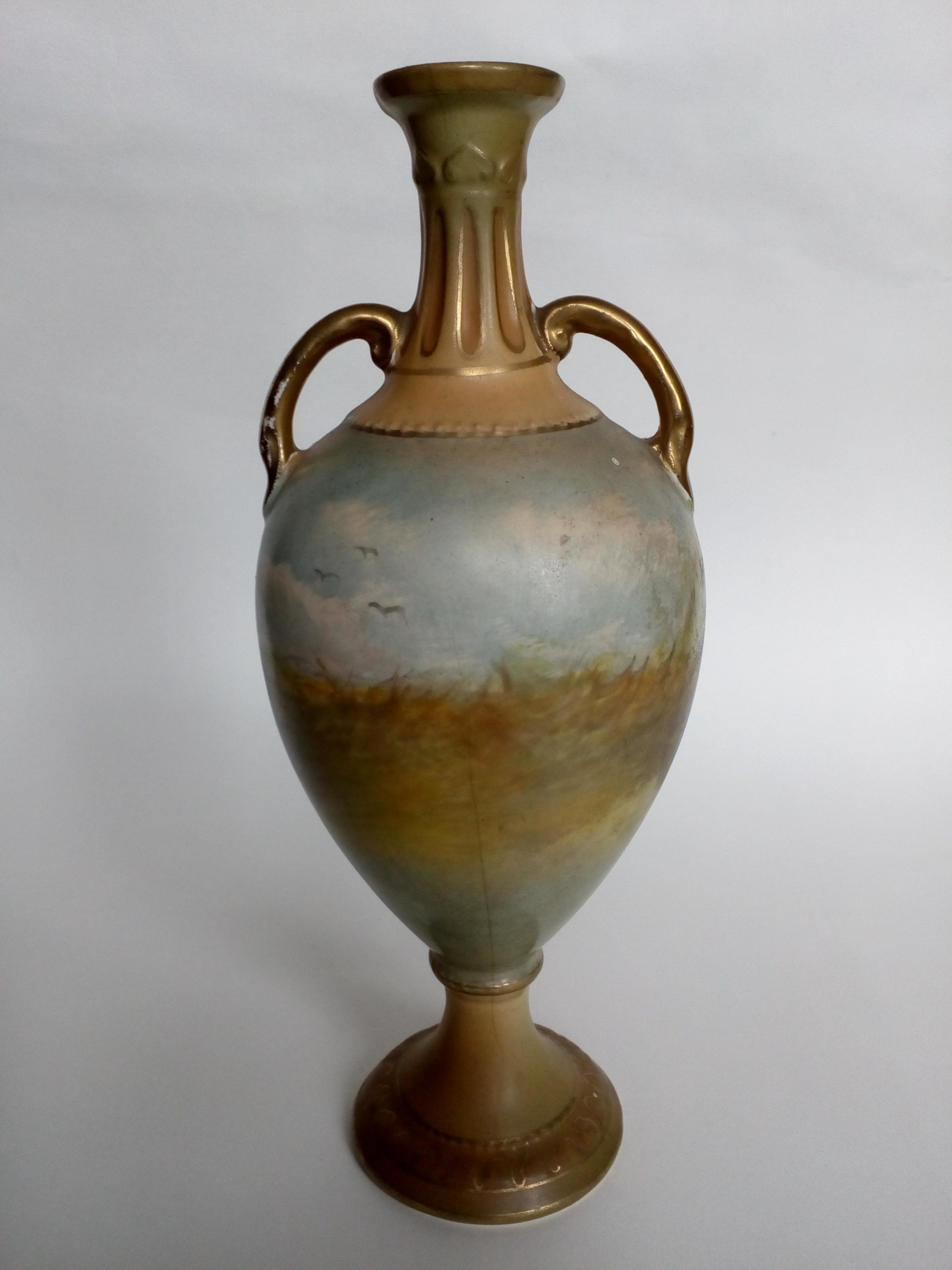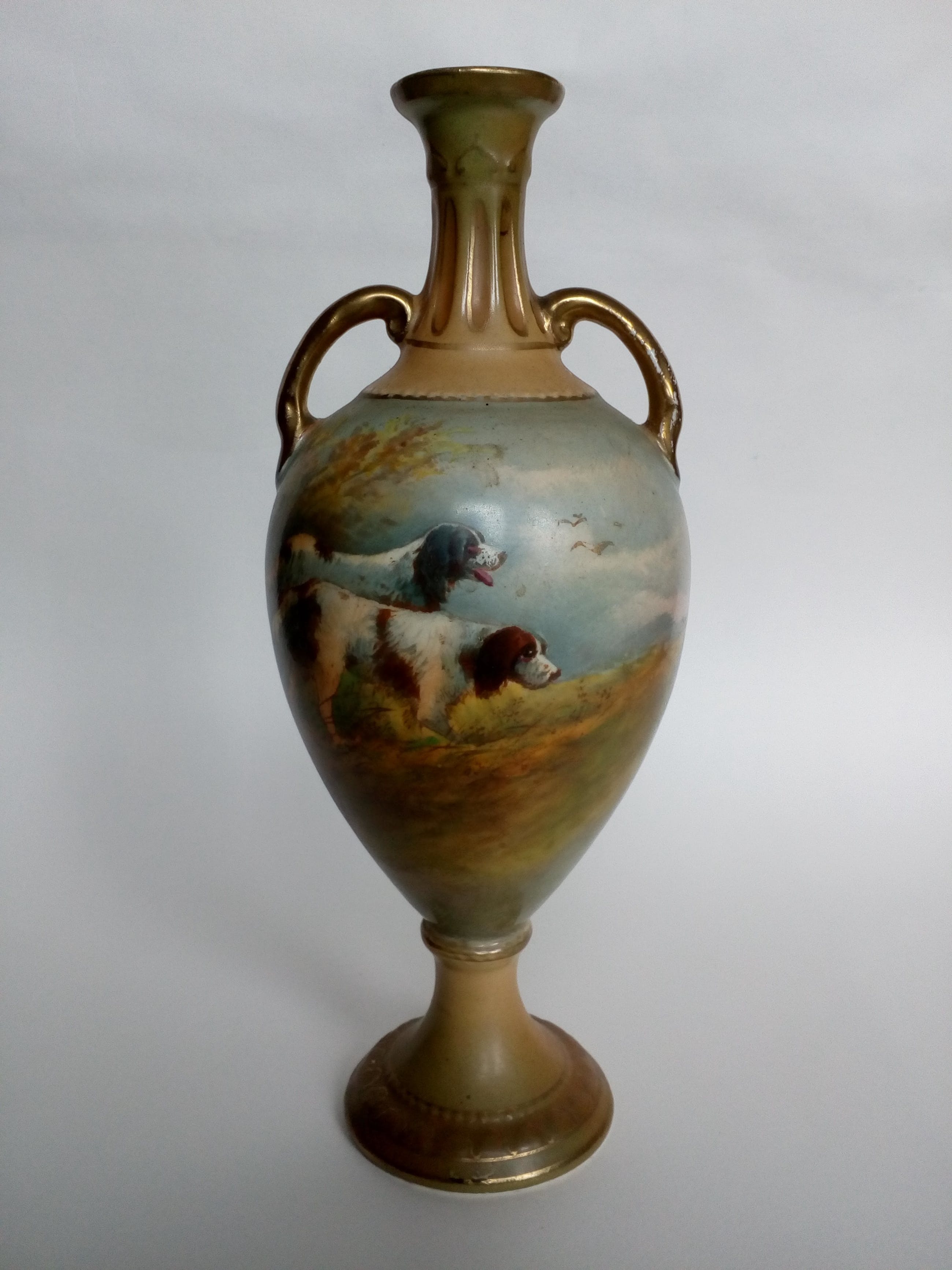De vaas oogt prima. Minimale beschadigingen, zoals verwacht mag worden van een ca. 100 jaar oud vaasje; haarfijne lijn en missend goudkleur aan een oor, zie foto's. LAGE STARTPRIJS!!