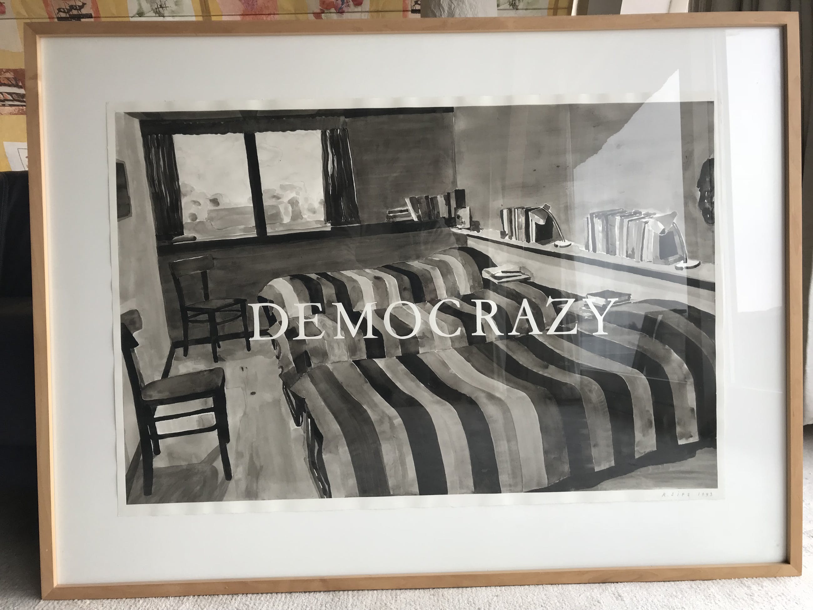 Roland Sips was een pikeur om 'normale' conventies door middel van zijn beeld ter discussie te stellen. Raden van Bestuur of Colleges van Bestuur bestaan vaak uit 3 leden. Democratische besluitvorming komt hierdoor op de tocht te staan: met wie slaapt bestuurslid A nu? met B of C ? Wat kan de 'overblijver' doen voor het volgende besluit ? In dit beeld holt Macht de democatrische beginselen uit. Schilderij is door Roland zelf ingelijst en direct van hem gekocht.