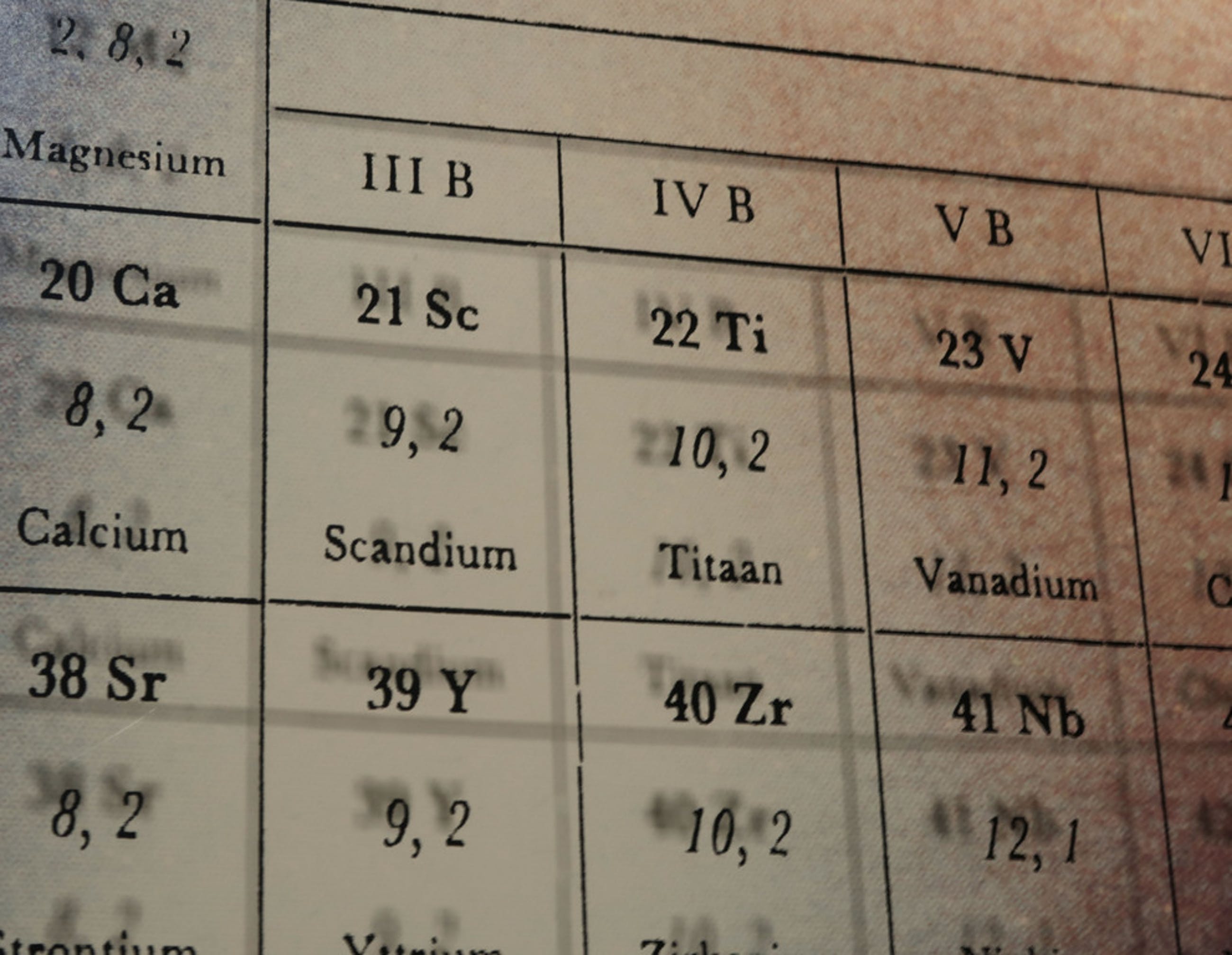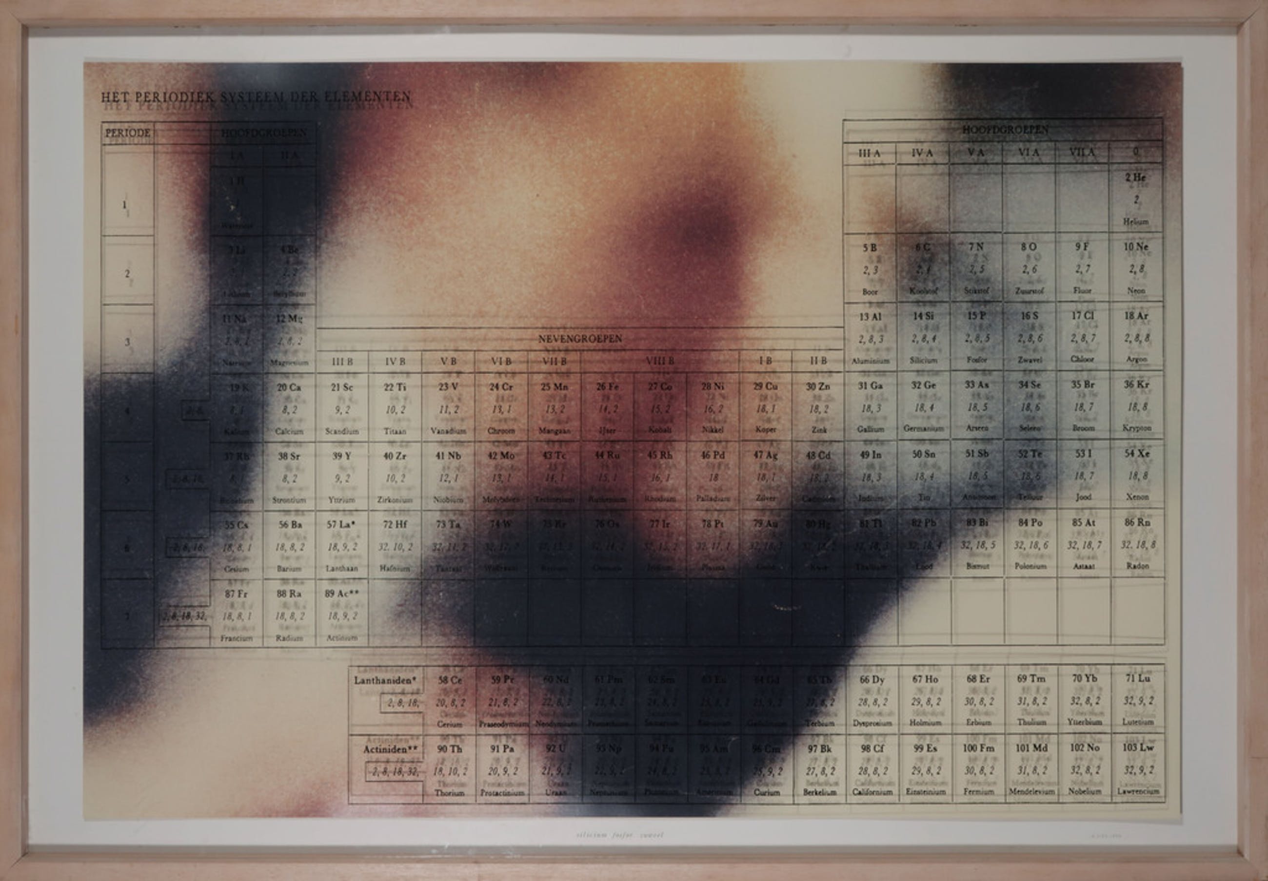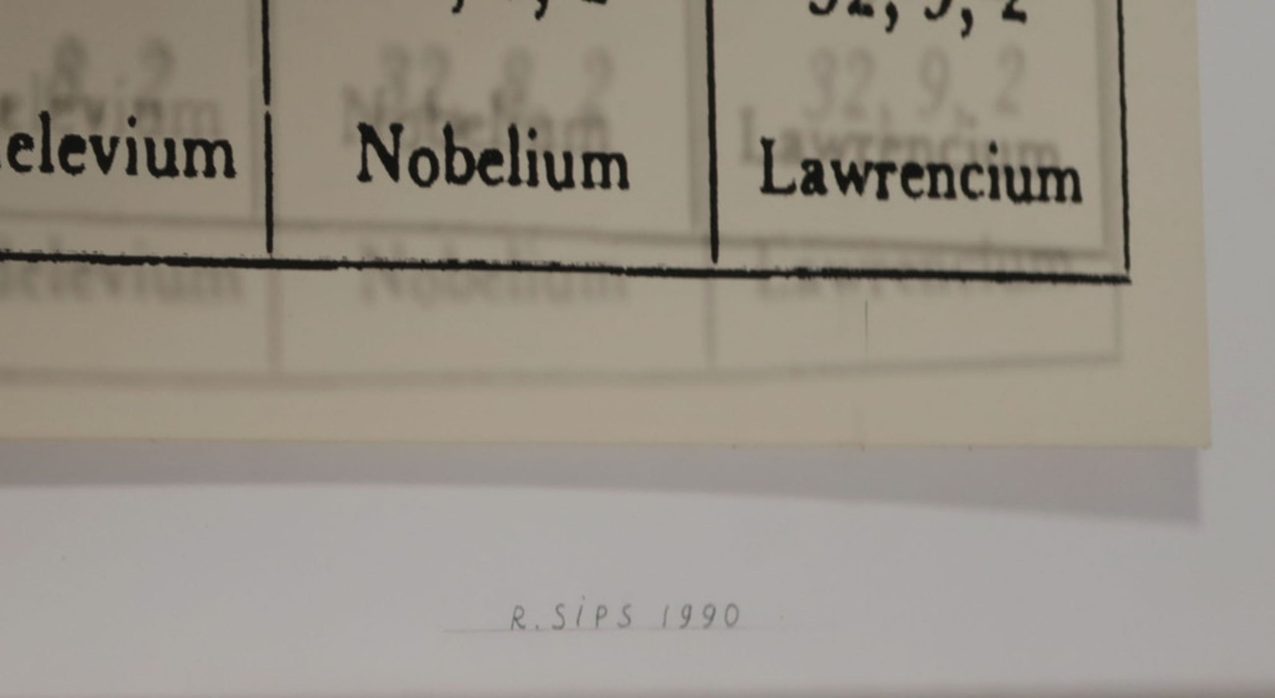 Materiaal: Foto op dibond(?), periodiek systeem achter glas gedrukt.
