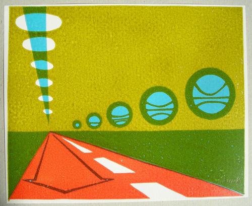 Rolf Liese - Rote Straße vor Grün und Ocker, Farblinolschnitt von 1969, handsign.
