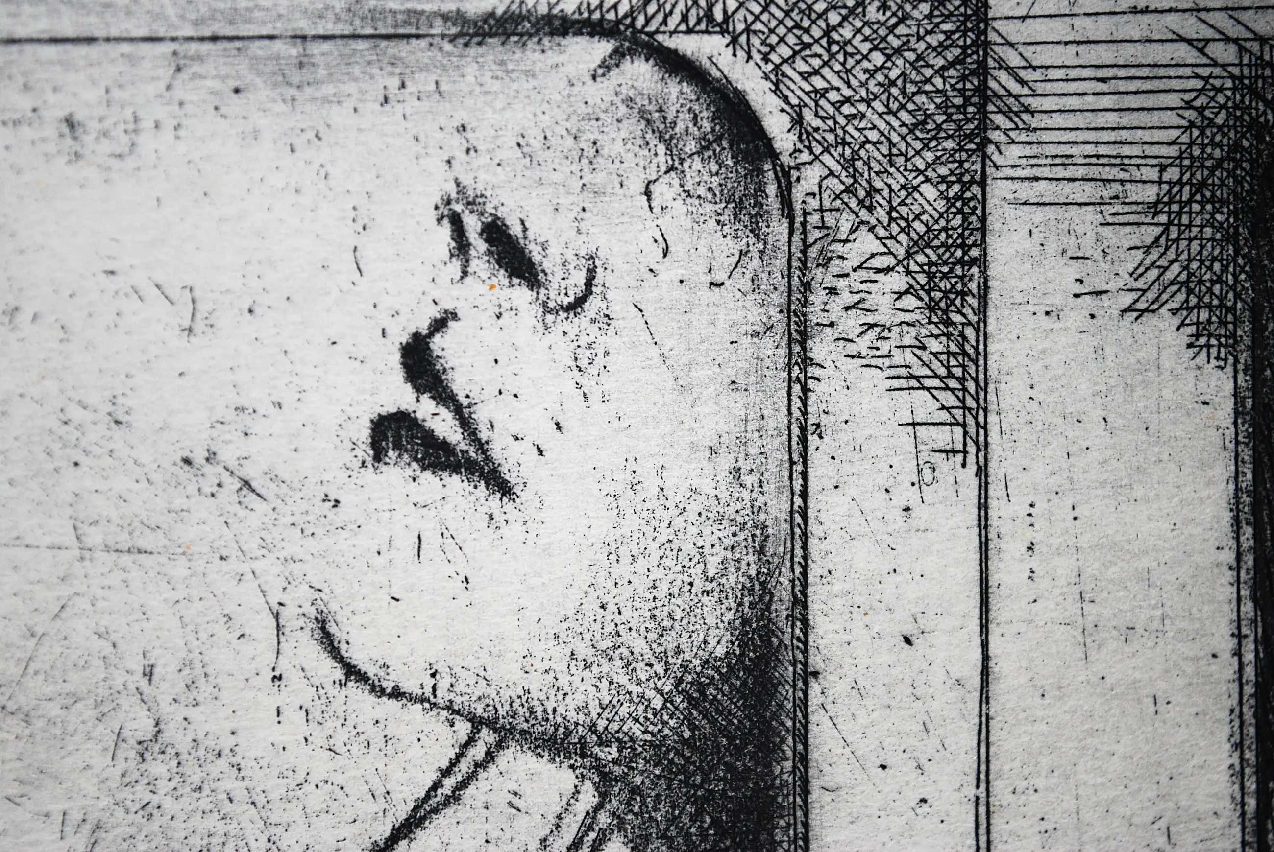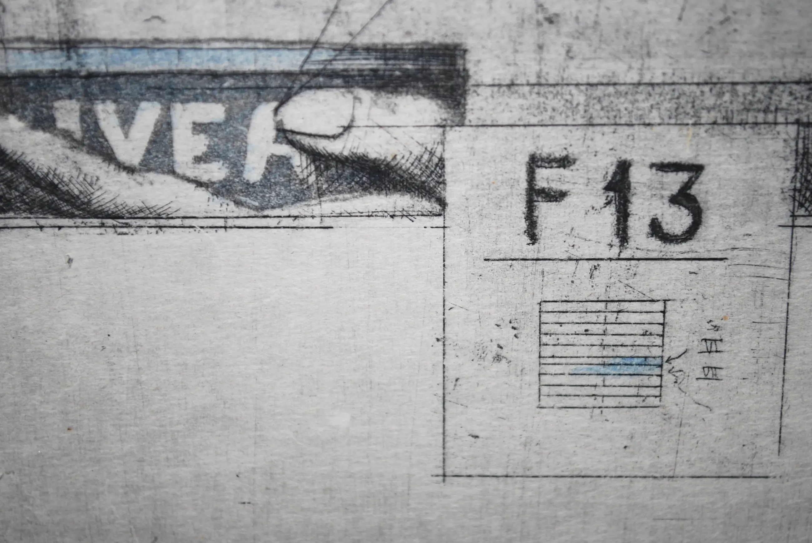Enkele details onderaan de ets zijn in lichtblauw.