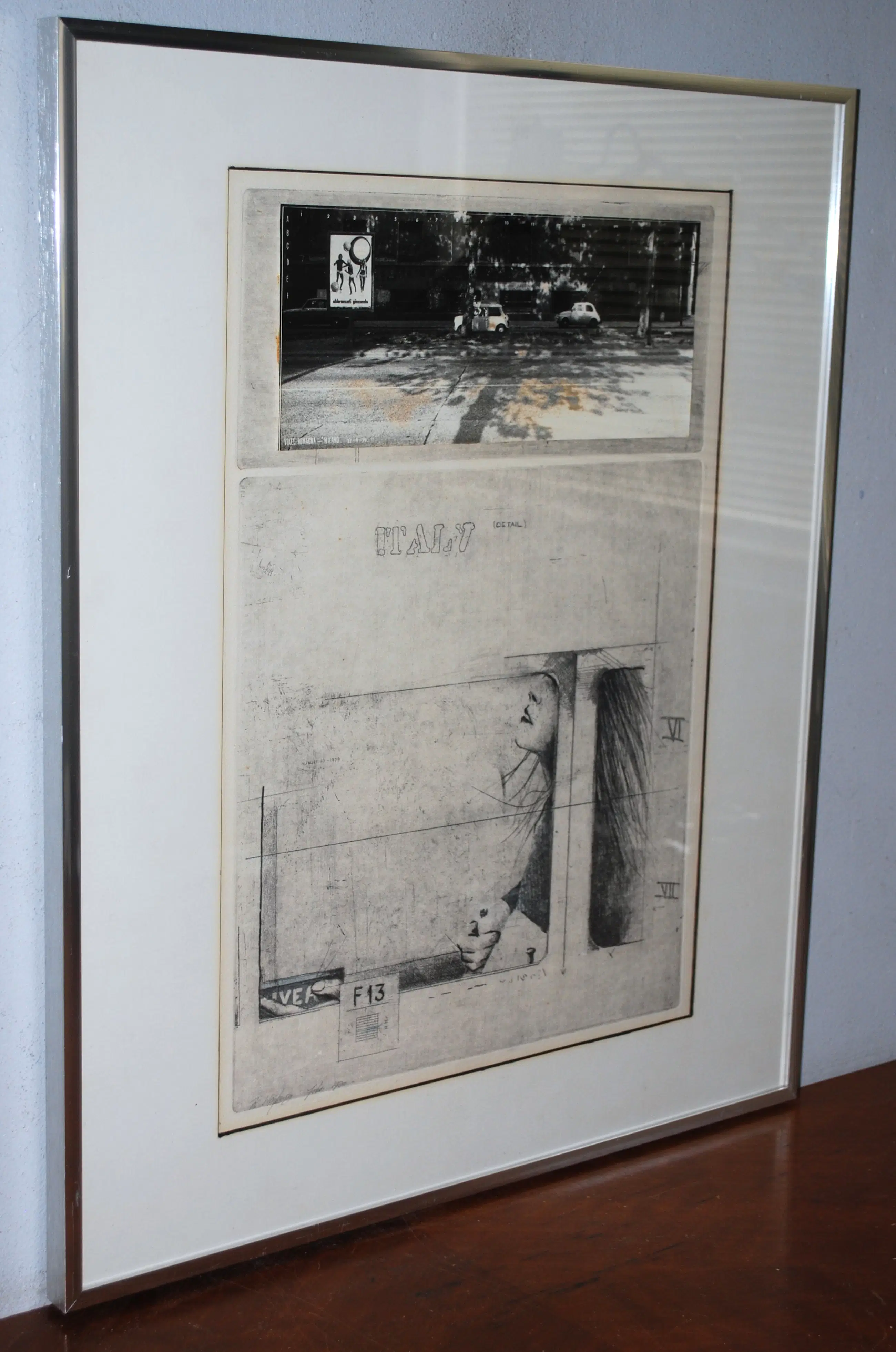 In een fraaie alu lijst, waarvan de zijkanten geborsteld zijn.