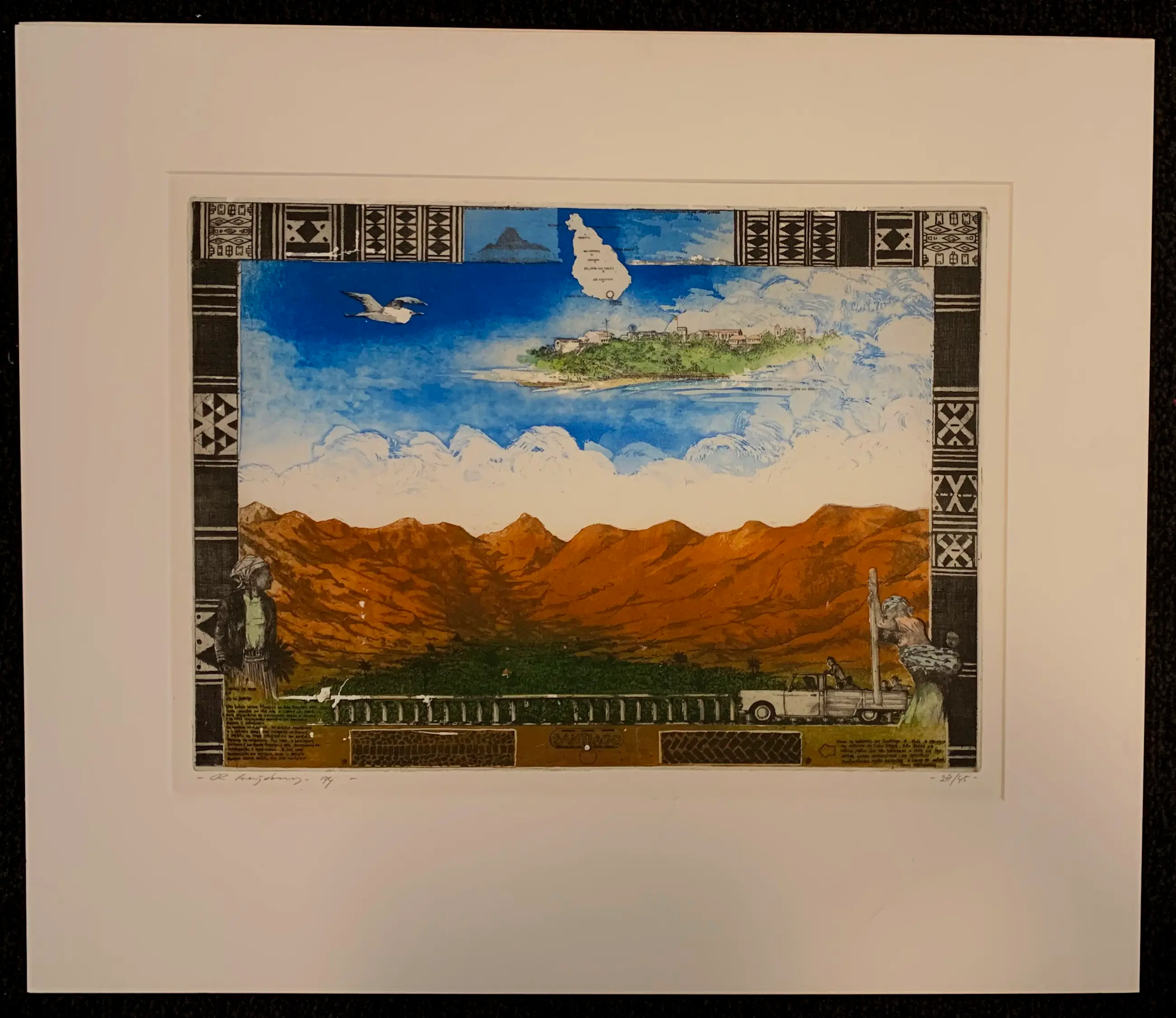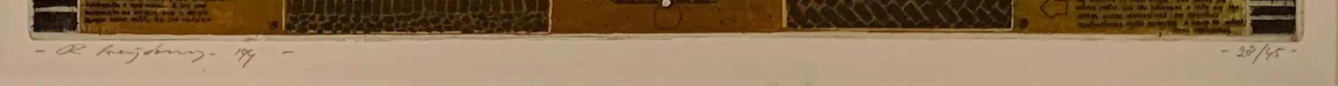 Ets/aquatint van Rolf Weijburg. Titel: Santiago. Jaar: 1992. Oplage: 28/45. Afmetingen incl passe-partout: H60 x b70cm. Afmetingen voorstelling: H35 x b49cm. Het werk is links onderaan, gesigneerd door de kunstenaar. De authenticiteit van dit werk wordt volledig gegarandeerd. Een certificaat van echtheid kan, op aanvraag, worden gemaild.