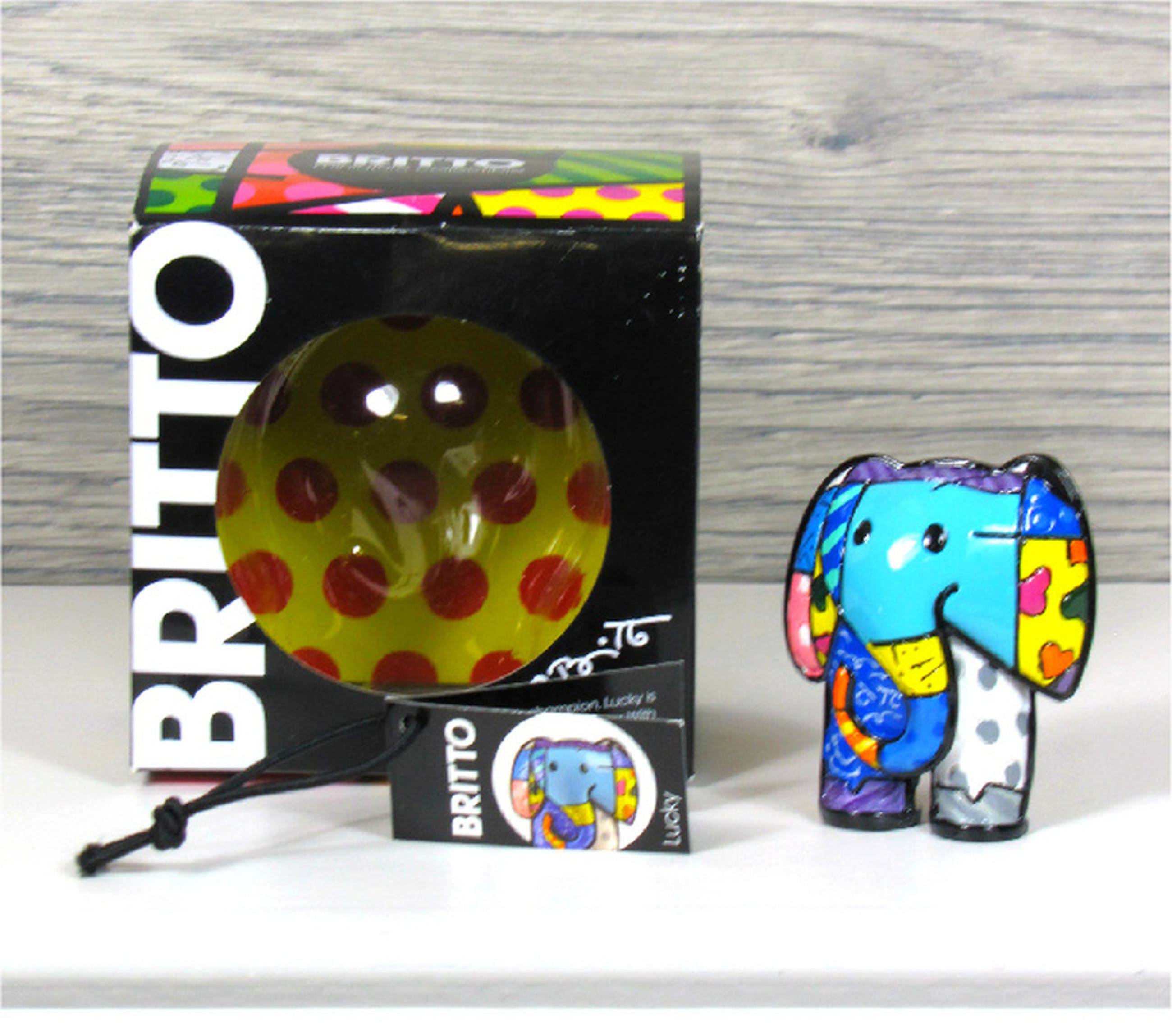 Vervaardigd van polystone, kleurrijk beschilderd en gesigneerd in de druk door Romero Britto. Worden geleverd in bijhorende opbergdozen met speciaal gevormde piepschuimblokken, inclusief Britto labels en genummerde certificaat.