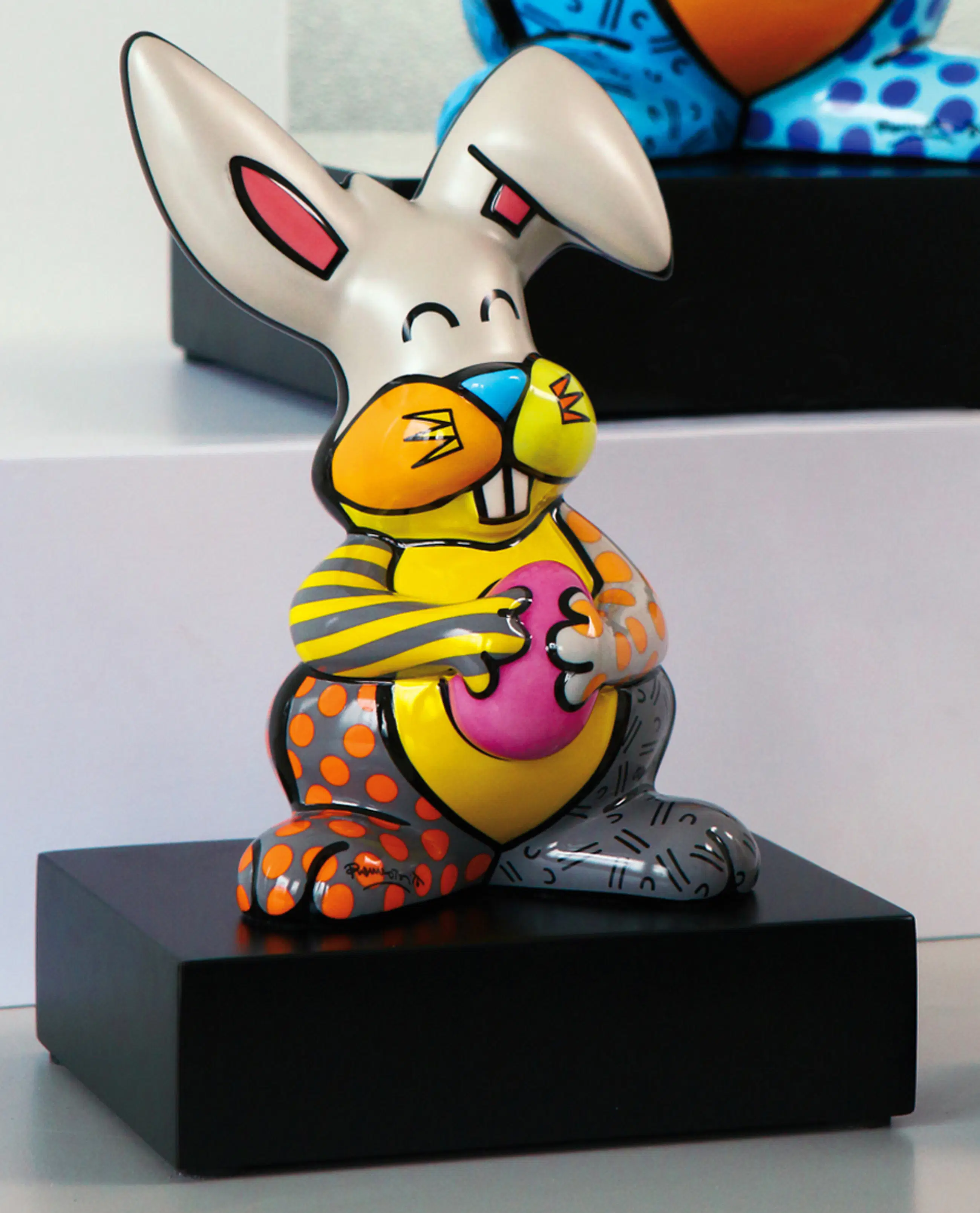 Het konijn is een sculptuur van de kunstenaar Romero Britto, geboren in Recife, Brazilië in 1963. De levendige en kleurrijke kunstwerken van Romero Britto worden stilistisch geclassificeerd als (neo-)popart. Het beeld komt uit de productlijn Pop Art van Goebel.