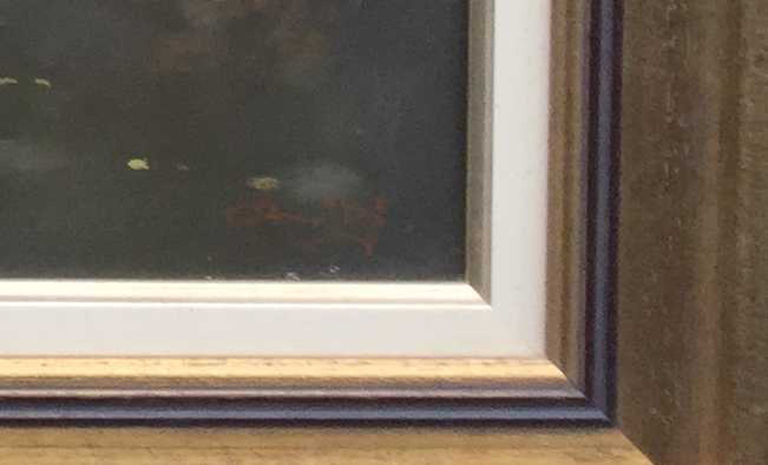 | Vergeelde vernis, oppervlaktevuil. Lijst bevat oppervlaktevuil en slijtschade door de tijd. | |