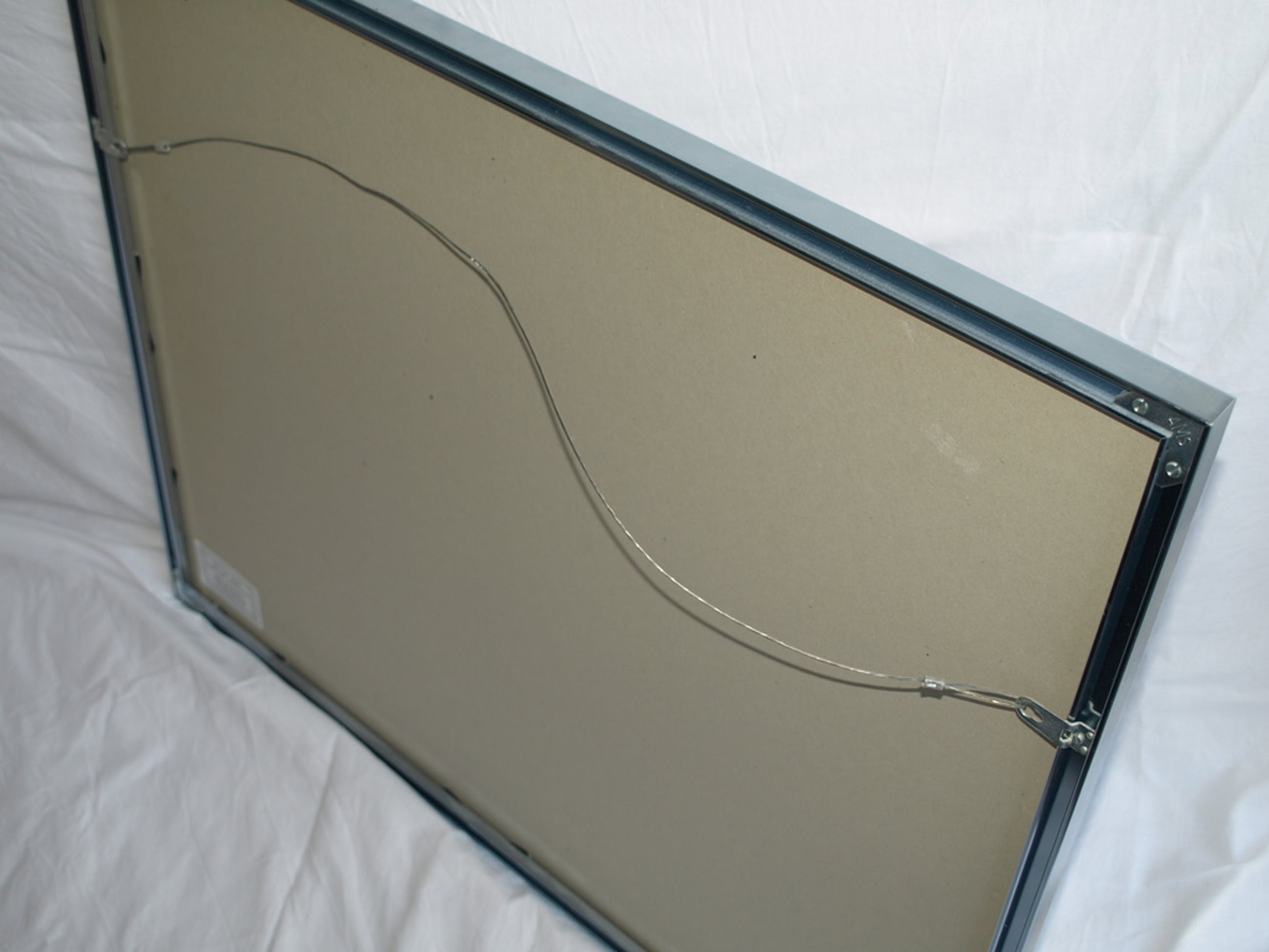 Ingelijst: Ingelijst in een aluminium lijst met passe-partout en glasplaat.