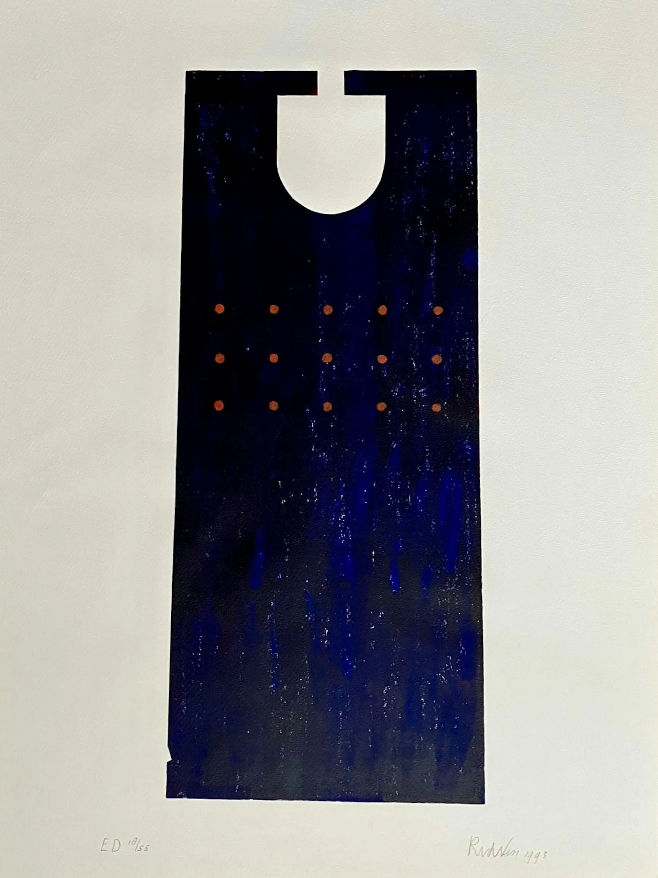 Abstract, minimaliistisch werk van Ron van de Ven (Maastricht, 1956), schilder, sculpturist en monumentaal vormgever. Dit is een eigen druk, nummer 18 uit een oplage van 55.