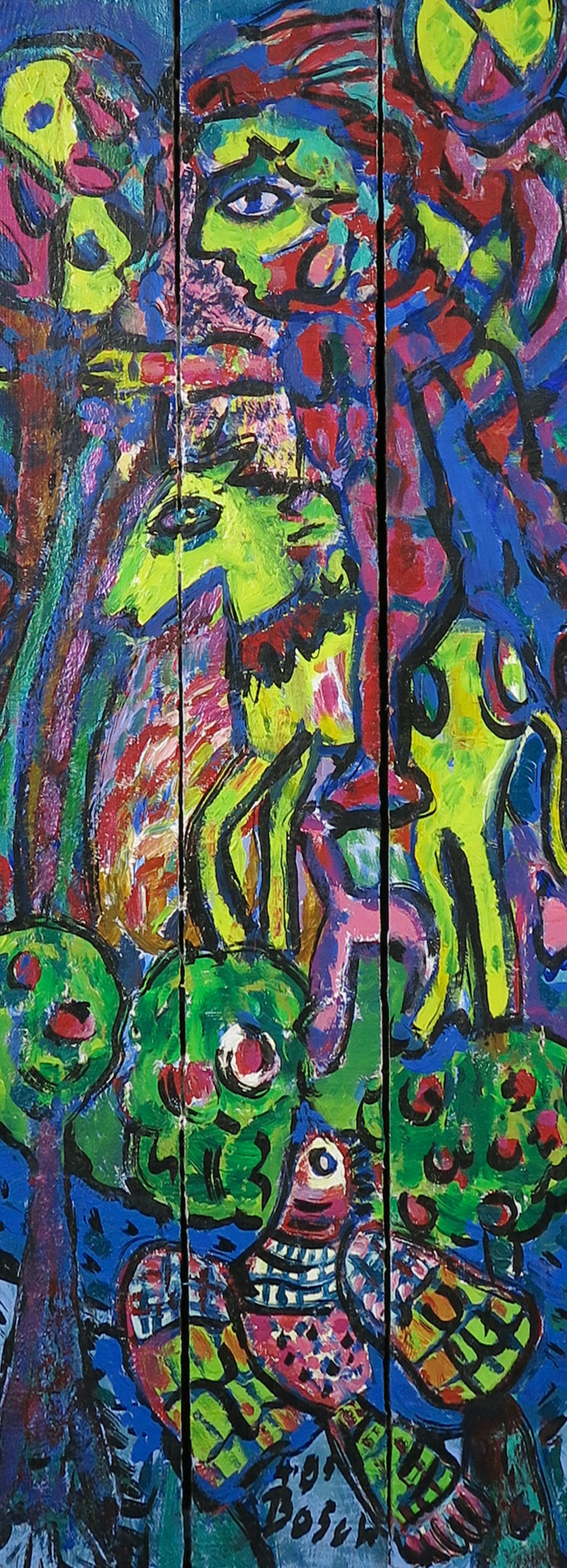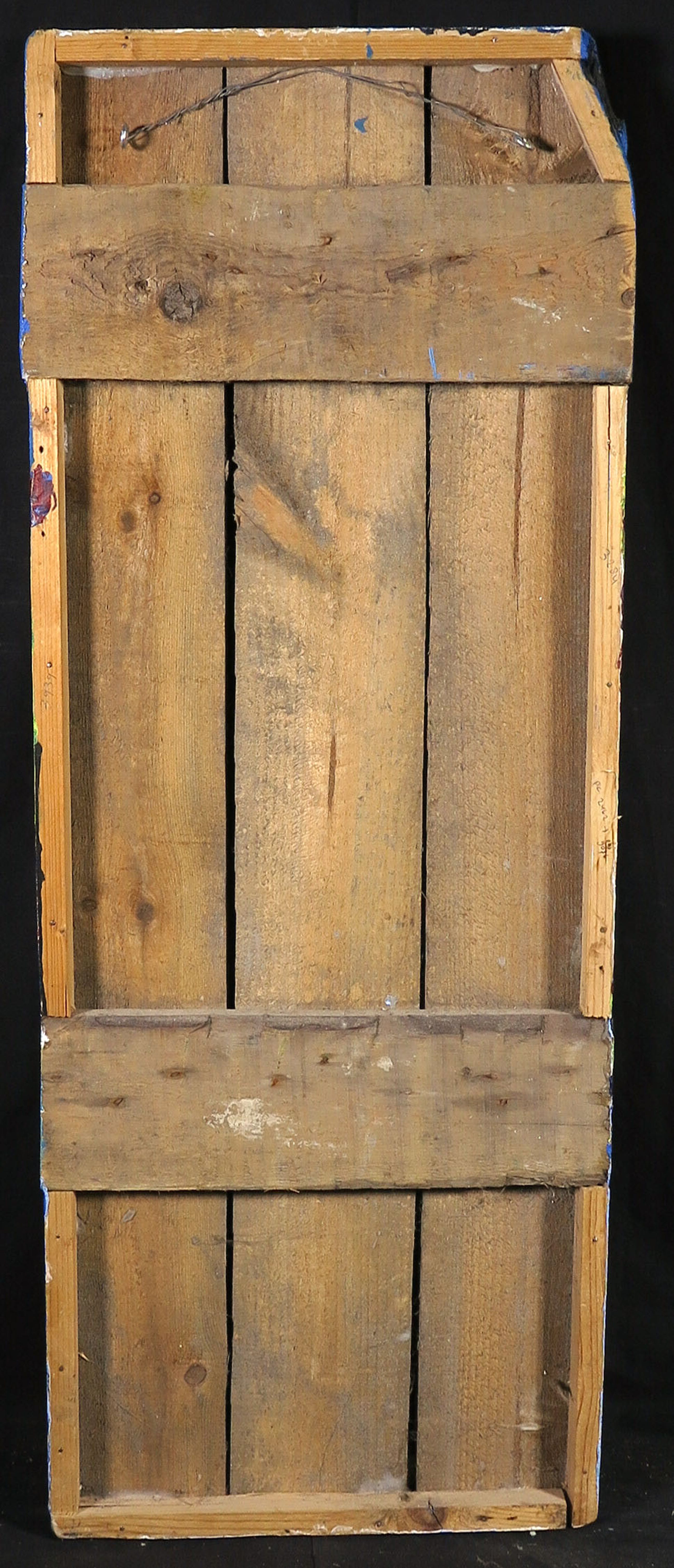 | Het werk is wat scheluw, door de werking van het hout. | |