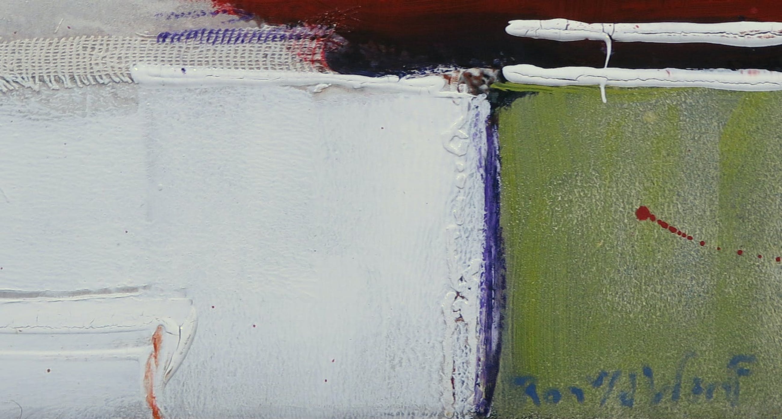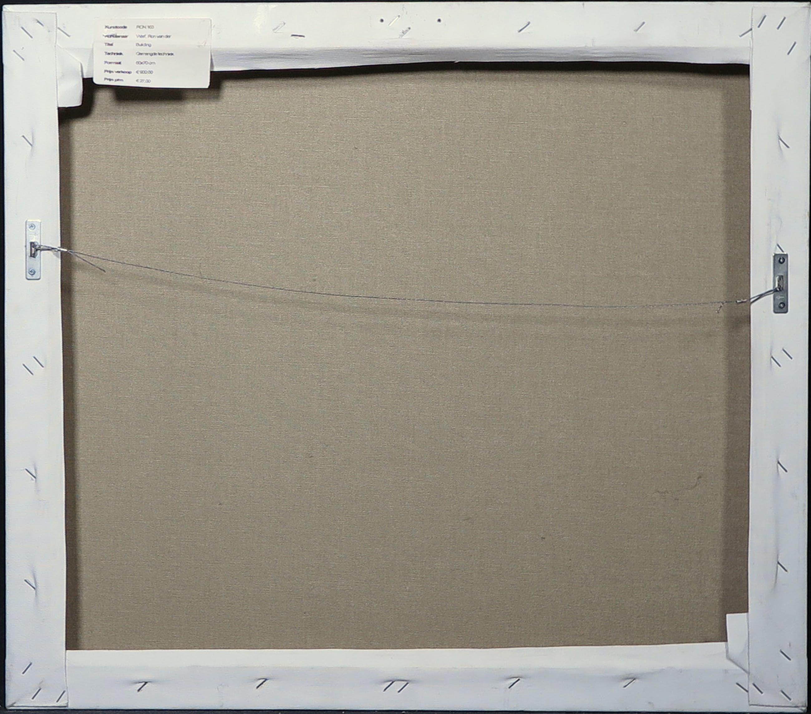 | Wat craquelé in de verf en enkele lichte beschadigingen/vuiltjes langs de randen van het werk. | |