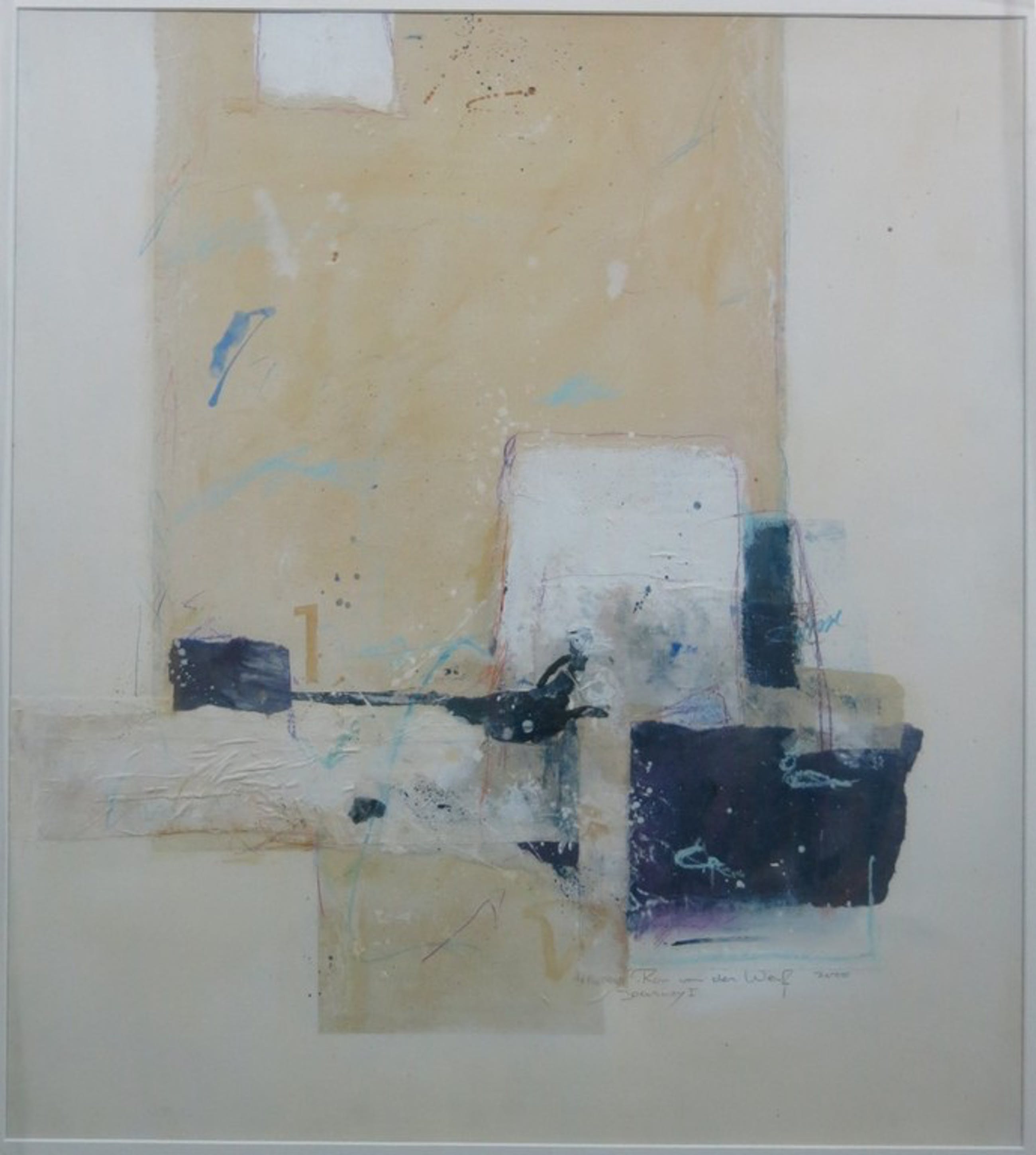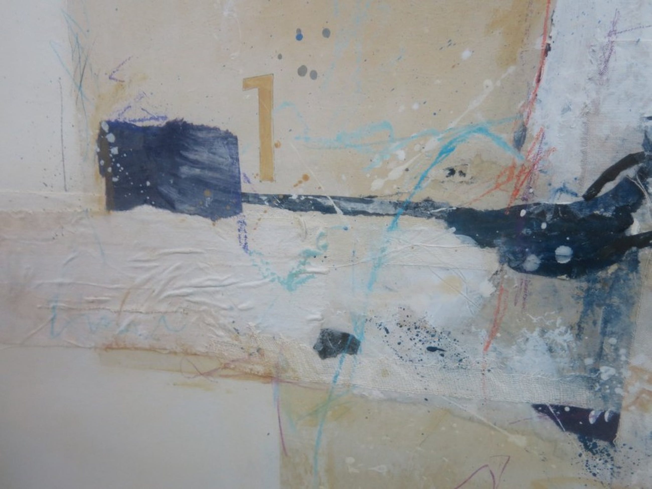Materiaal: Gemengde techniek waaronder acrylverf, krijt en collage op papier