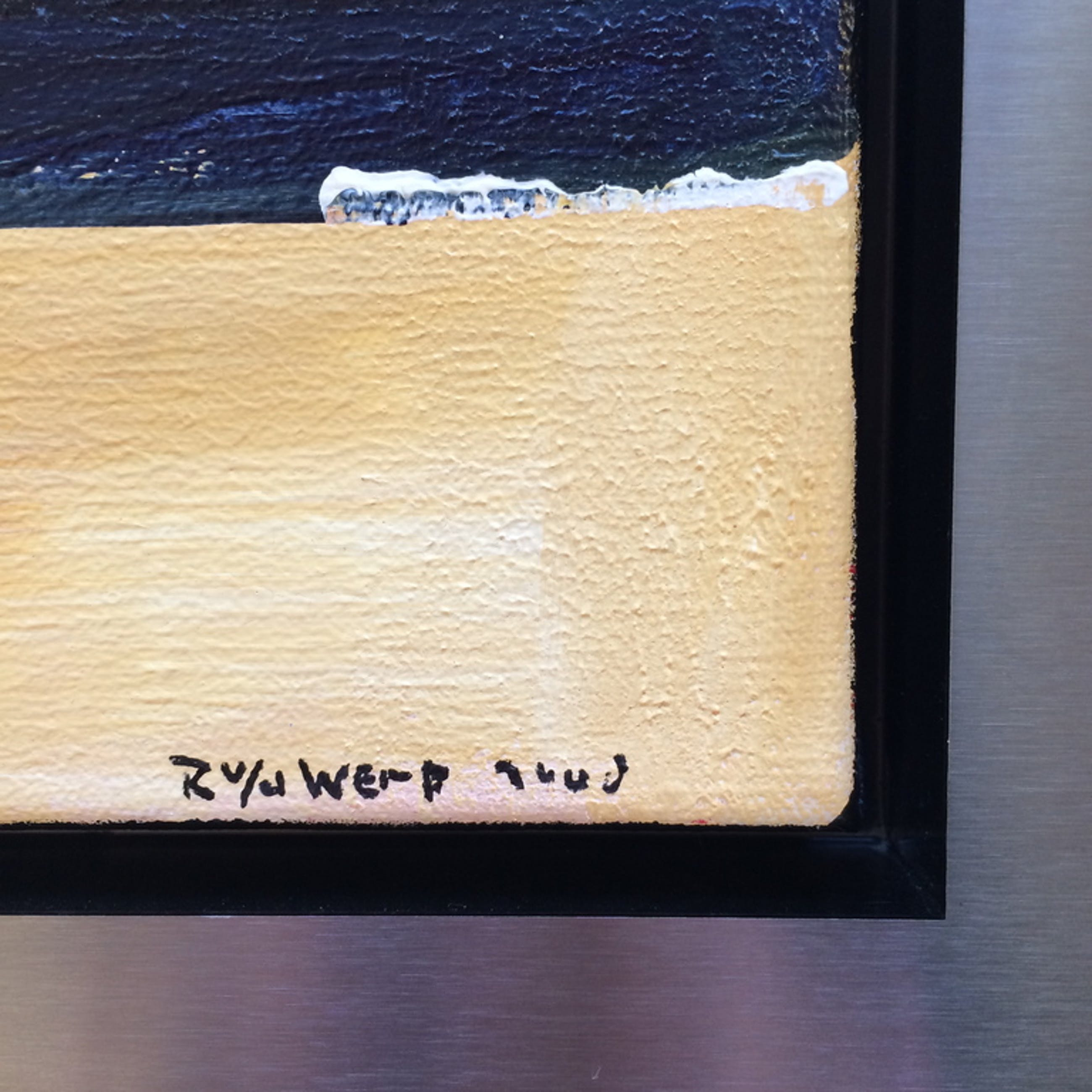 Origineel schilderij op linnen van Ron van der Werf, ingelijst in een exclusieve RVS-baklijst met omgezette randen, afmetingen schilderij 41,5 x 28 cm , afmetingen incl. lijst 63,5 x 49,5 cm. Gesigneerd rechtsonder. Het werk kunnen we aan u verzenden of u kunt het ophalen in de Galerie Van Bellen Art in Willemstad of Brielle.