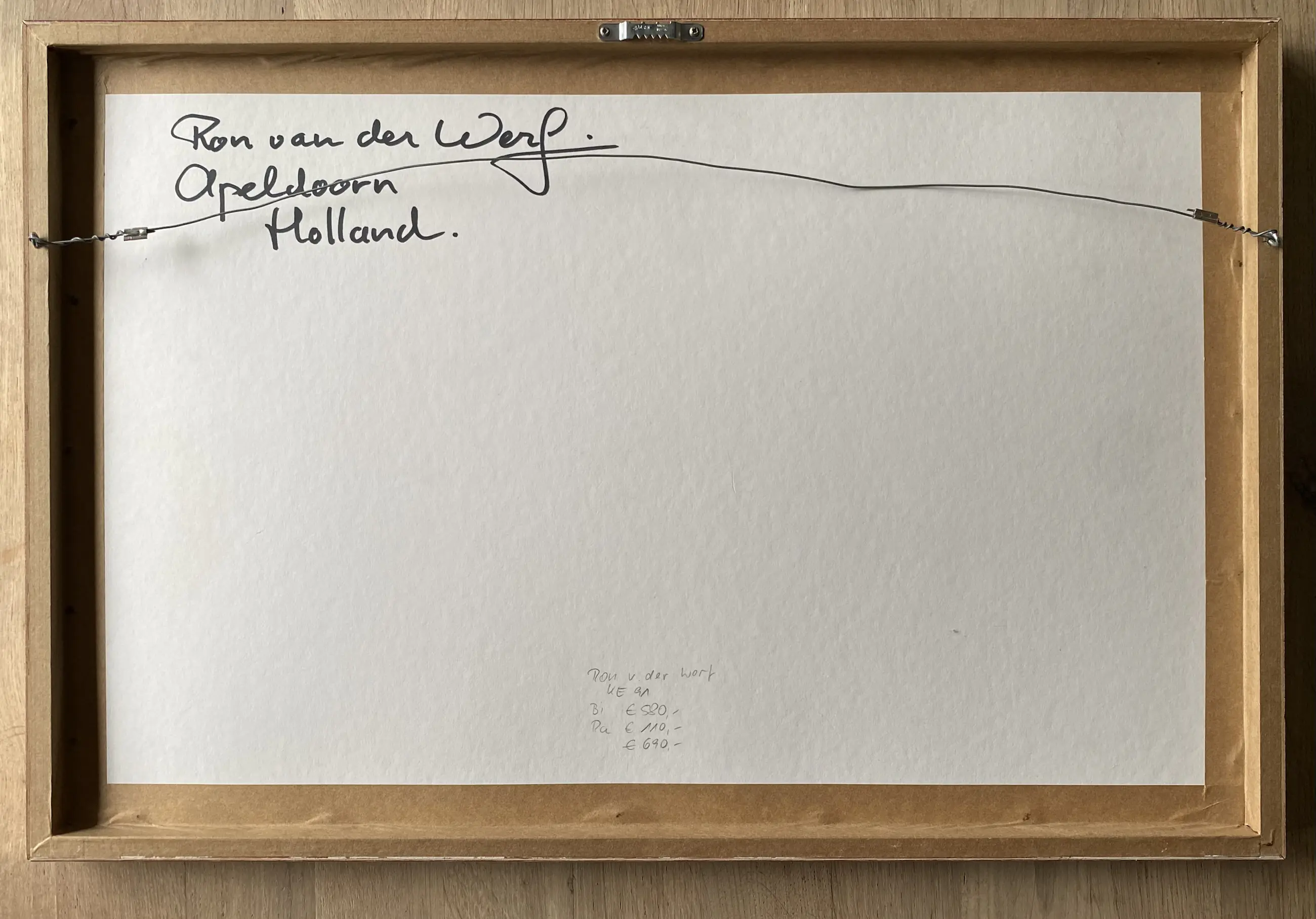 Mooi ingelijst schilderij van de Apeldoornse kunstenaar Ron van der Werf uit 2013.