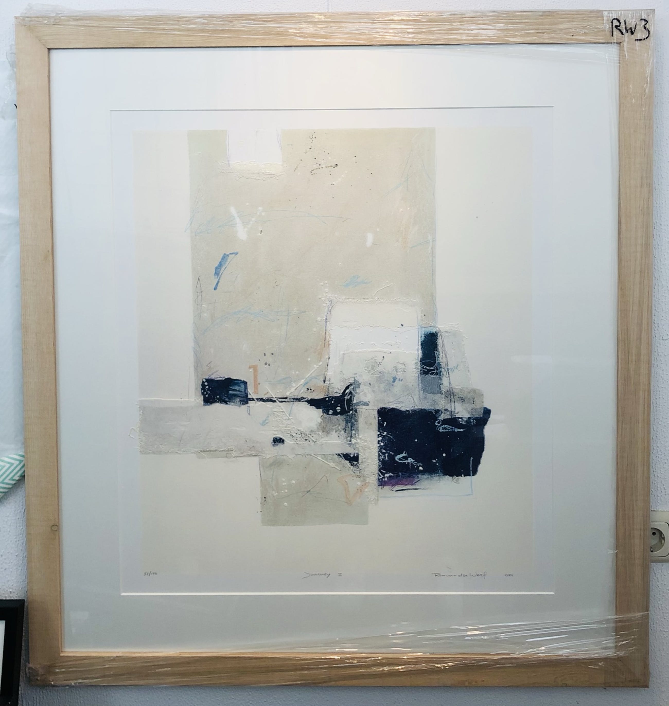 Mooi werk van Ron van der Werf. Een werk dat zo aan de muur kan worden gehangen! U kunt het werk vooraf komen bekijken in de Schatkamer van galerie Rotor in Gorcum, na aankoop afhalen of verzenden per koerier met lijst of zonder lijst per aangetekende post toegestuurd krijgen. Het werk zit in een prima maar gebruikte lijst. De foto is door het glas van de lijst heen genomen.