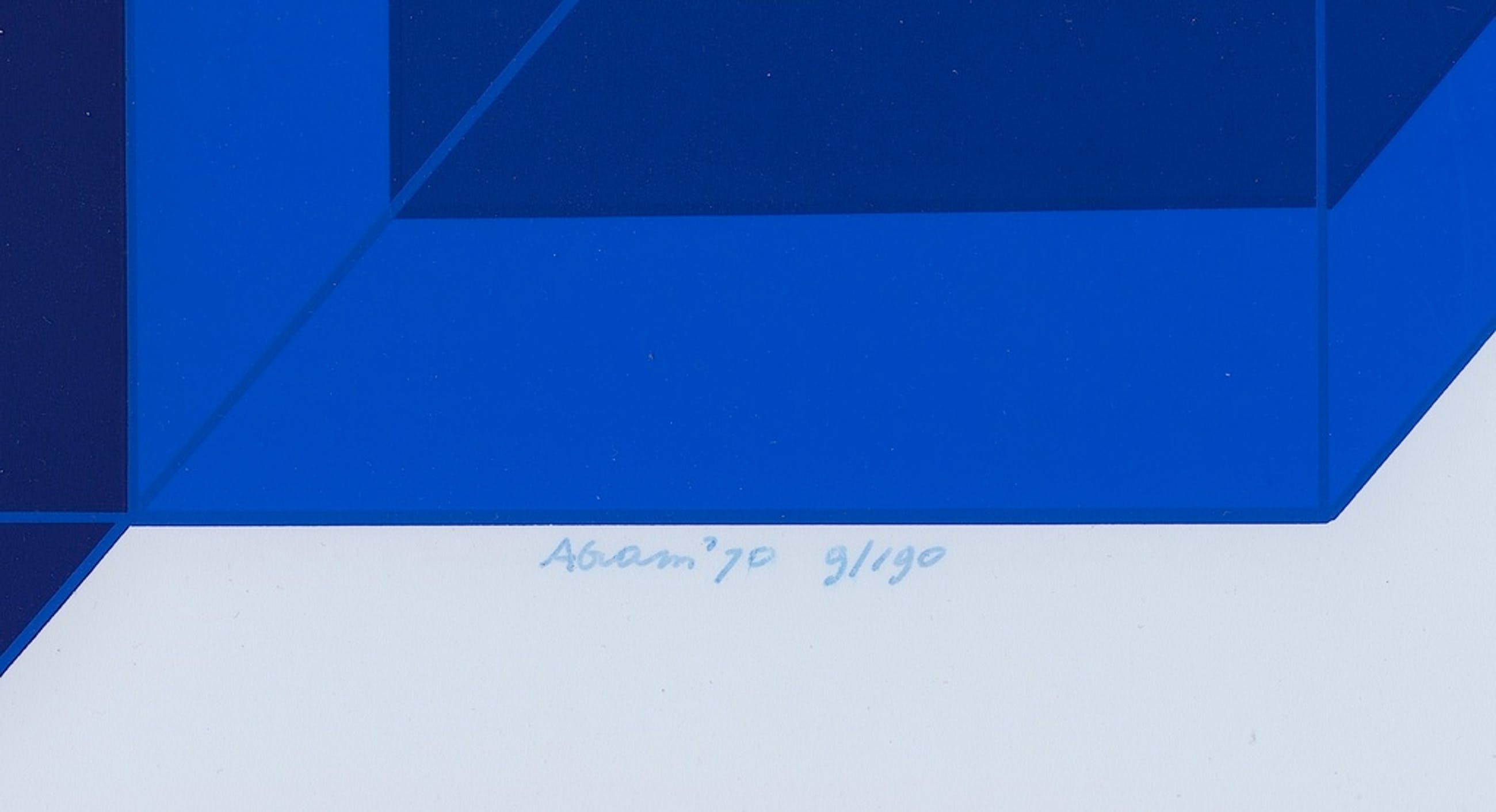 Ronald Abram werkte in Parijs en Amsterdam. Dit werk wordt gerekend tot de stroming “Nieuwe Abstractie” of “Popart”. Handgedrukt uit serie 6 van “Prent 190” uit 1970/71, door kunstenaar gesigneerd en voorzien van exemplaarnummer 9/190.