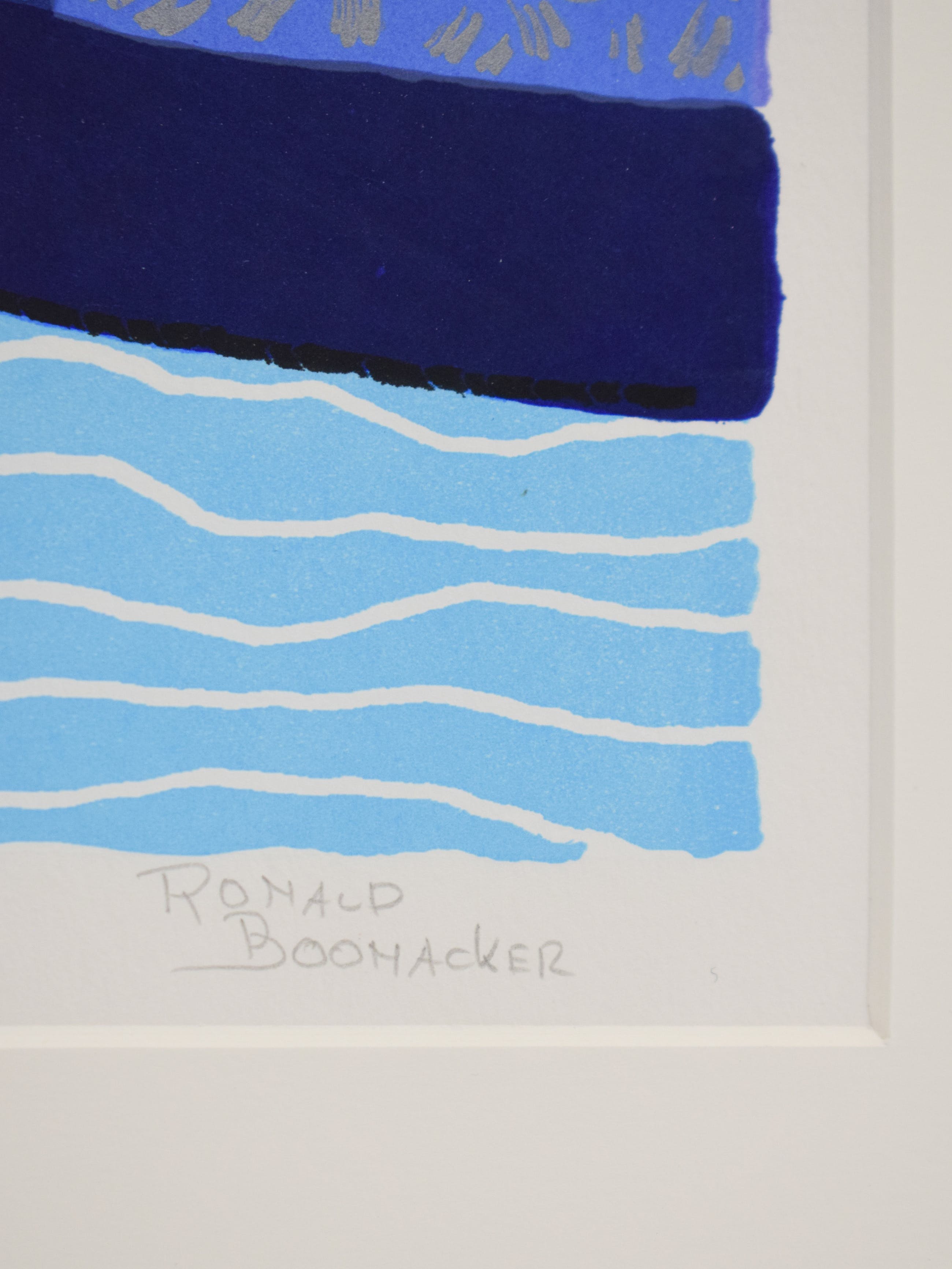 Ronald Boonacker is een autodidact die tijdens zijn vele reizen is begonnen met schilderen. Door zijn kunstlezingen in Rome, Florence en Venetië bracht hij zijn liefde voor de kunst voor het eerst tot uitdrukking. Op aanraden van zijn vrienden die zeer enthousiast Waren over zijn eerste schuchtere pogingen met penseel en doek, besloot hij zich een aantal geleden volledig op het schilderen toe te leggen. Hij werkt overwegend met acrylverf in veel en felle tinten, af en toe afgewisseld met zilver en goud. Ronald Boonacker heeft een zonnige kijk op het leven. Tropische stranden, eilanden en palmen zijn zijn lievelingsonderwerpen. Het is dus niet verwonderlijk dat zijn werken titels hebben als “Andalucia”, “Route du Soleil” of “Red Palm Mauritius Island”. Haalt hij zijn inspiratie vooral uit het buitenland? “Eigenlijk wel. Ik werk graag vanuit pittoreske omgevingen. Zo heb ik een keer een oud klooster in Toscane gehuurd. Als je daar een tijdje vertoeft komt de inspiratie vanzelf. Vaak wordt ik geraakt door iets in het landschap, bijvoorbeeld een zonsondergang of de lichtval. Dat blijft me dan bij. ”Maar hoe kosmopolitisch kunst ook is, de basis van zijn doeken ligt in de Nederlandse traditionele stillevens en landschappen. Ronald Boonacker heeft onmiskenbaar zijn roots in Nederland liggen.