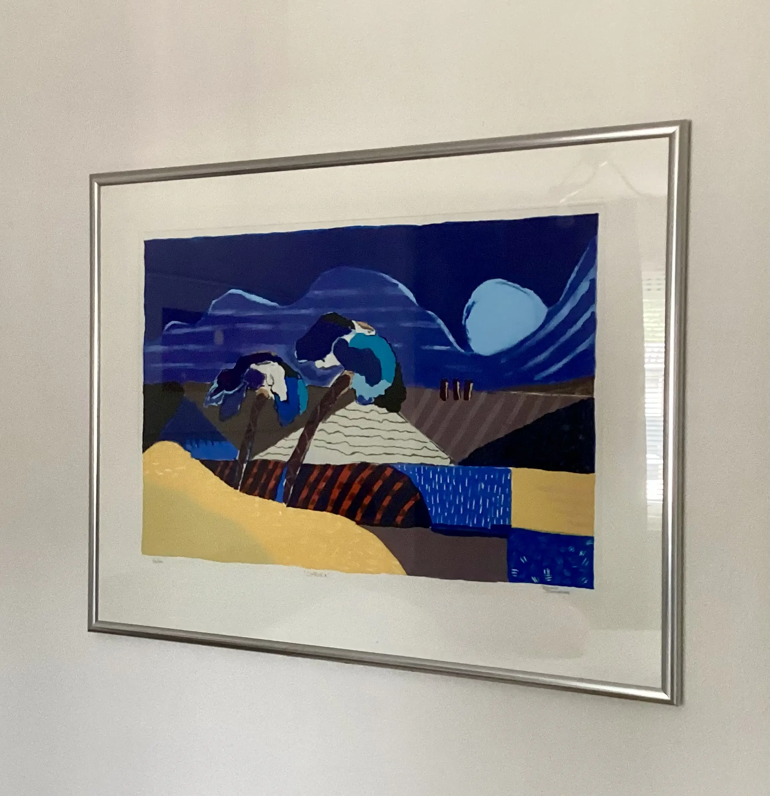 Mooi kleurrijk werk van Ronald Boonacker. Sfeer van Corsica wordt mooi weergegeven en geeft je het gevoel van de Middellandse Zee Werk is in hele goede conditie en is heel mooi ingelijst. De lijst is van aluminium en het werk is omringd door passepartoute. Het geheel wordt beschermd door glasplaat. Is een groot werk voorzien van stevig hangdraad zodat het direct een plaats op uw muur kan krijgen. Kan het werk niet verzenden ivm grote van het werk .U mag zelf een koerier sturen als u dat wilt maar ophalen kan ook.De locatie is in Elst tussen Arnhem en Nijmegen.