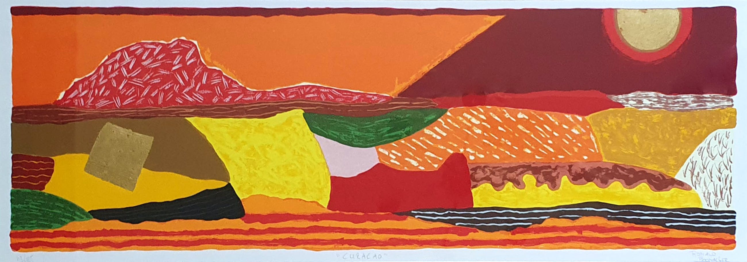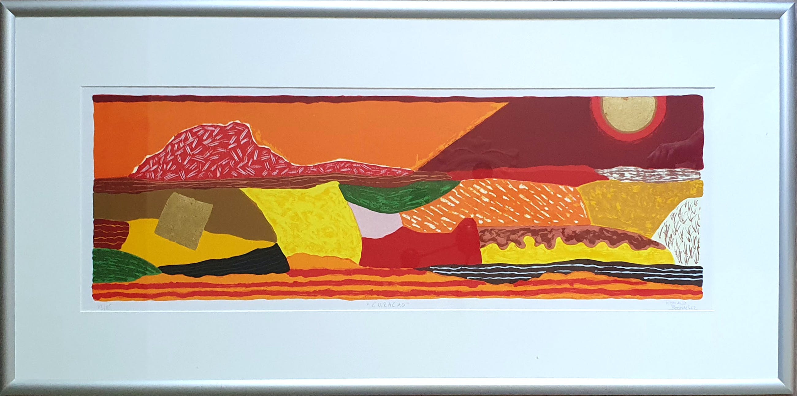 Mooie grote zeefdruk van Ronald Boonacker. Het werk is met potlood gesigneerd en genummerd.