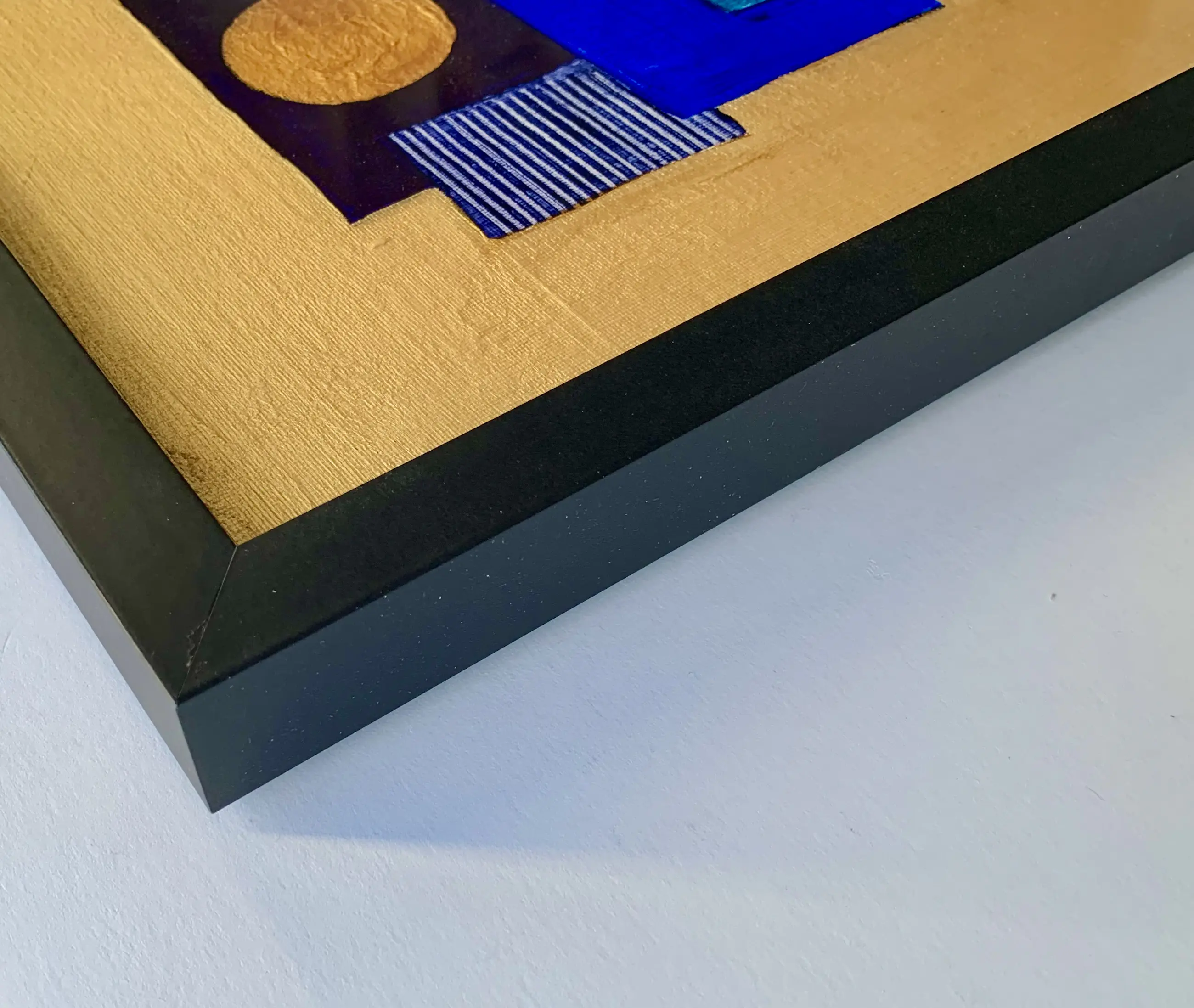 Deze paneeltjes zijn in Epoxy gegoten en hebben een moderne uitstraling. In een zwarte houten lijst.
