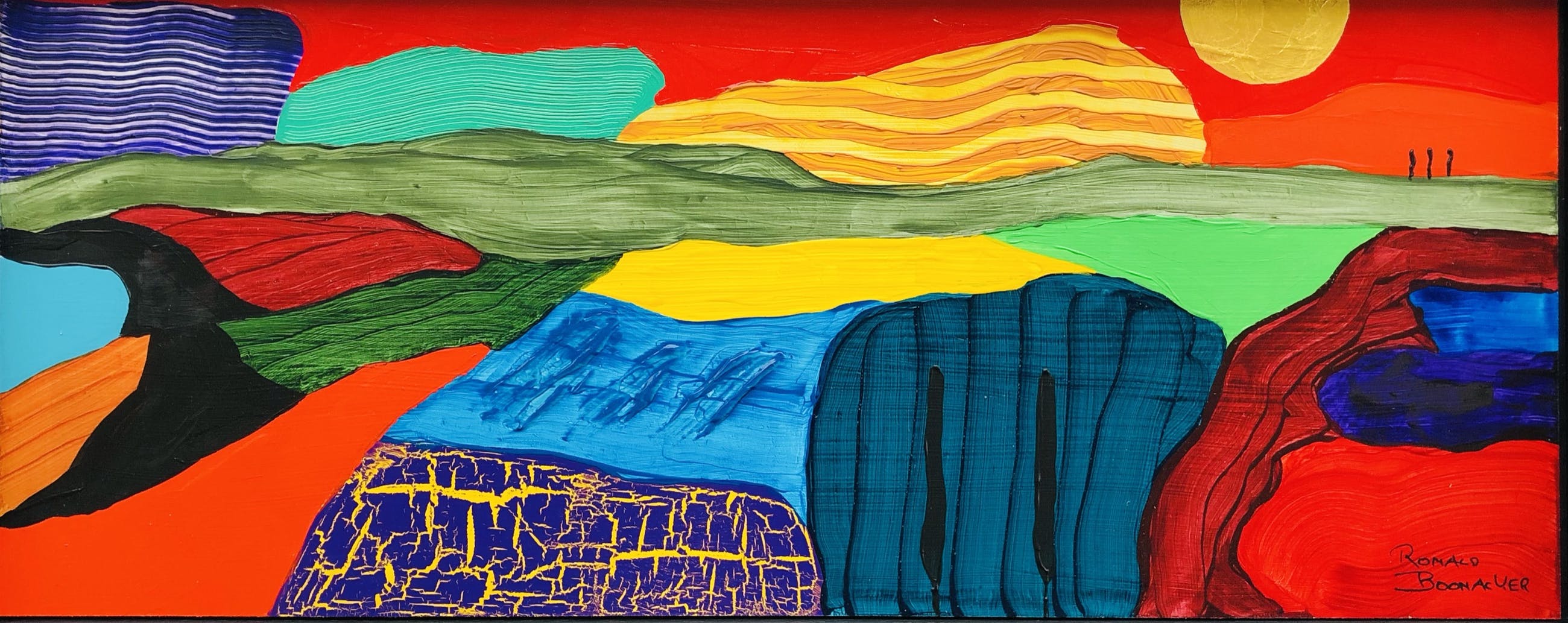 Uniek schilderij met lijst uit een serie van paneelschilderingen van het Italiaanse landschap van de Amsterdamse kunstenaar Ronald Boonacker, geschilderd in 2021 met acrylverf. Haal de zomer in huis, kan zo aan de muur. Nieuwstaat! Gesigneerd door de kunstenaar.