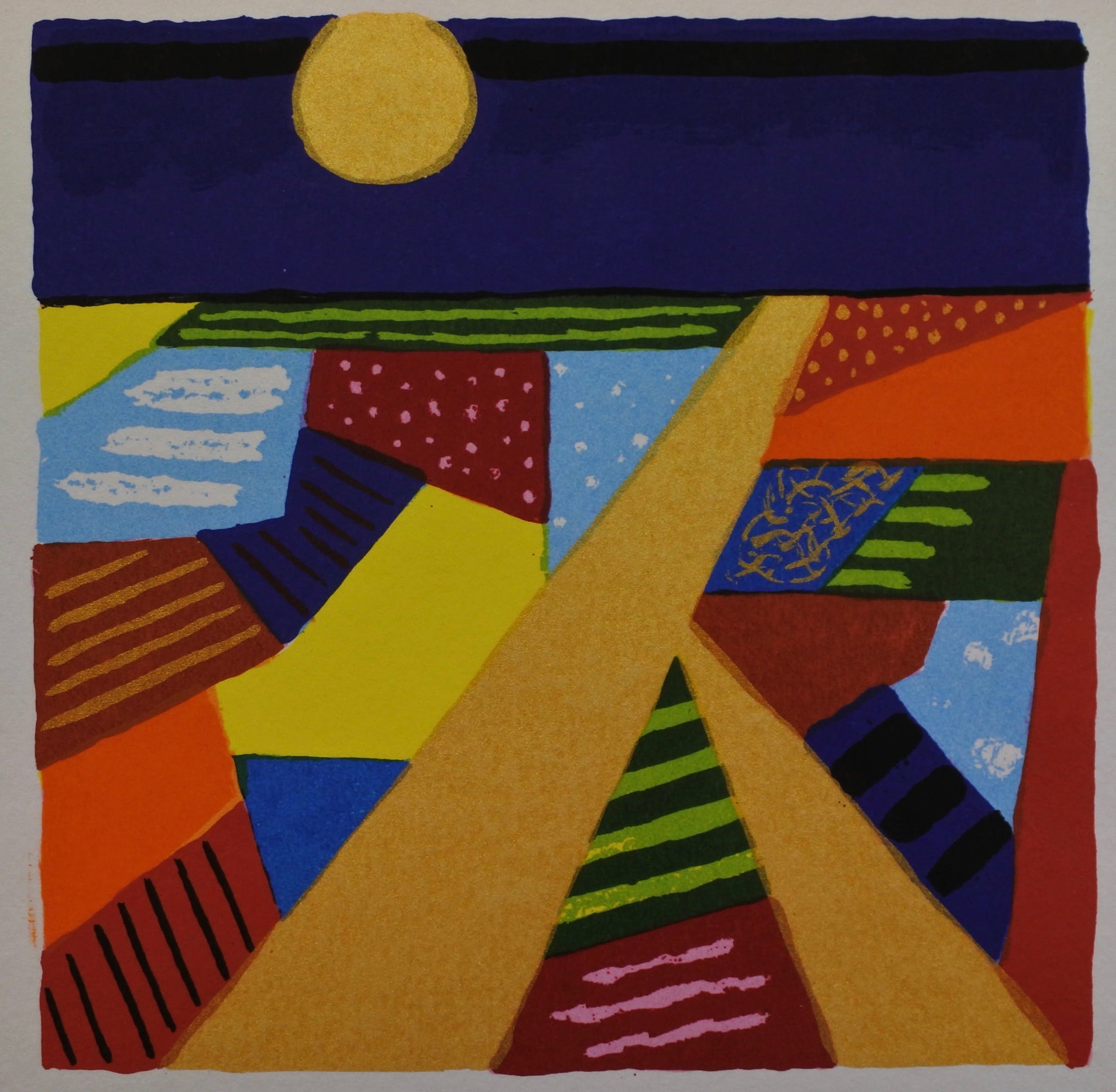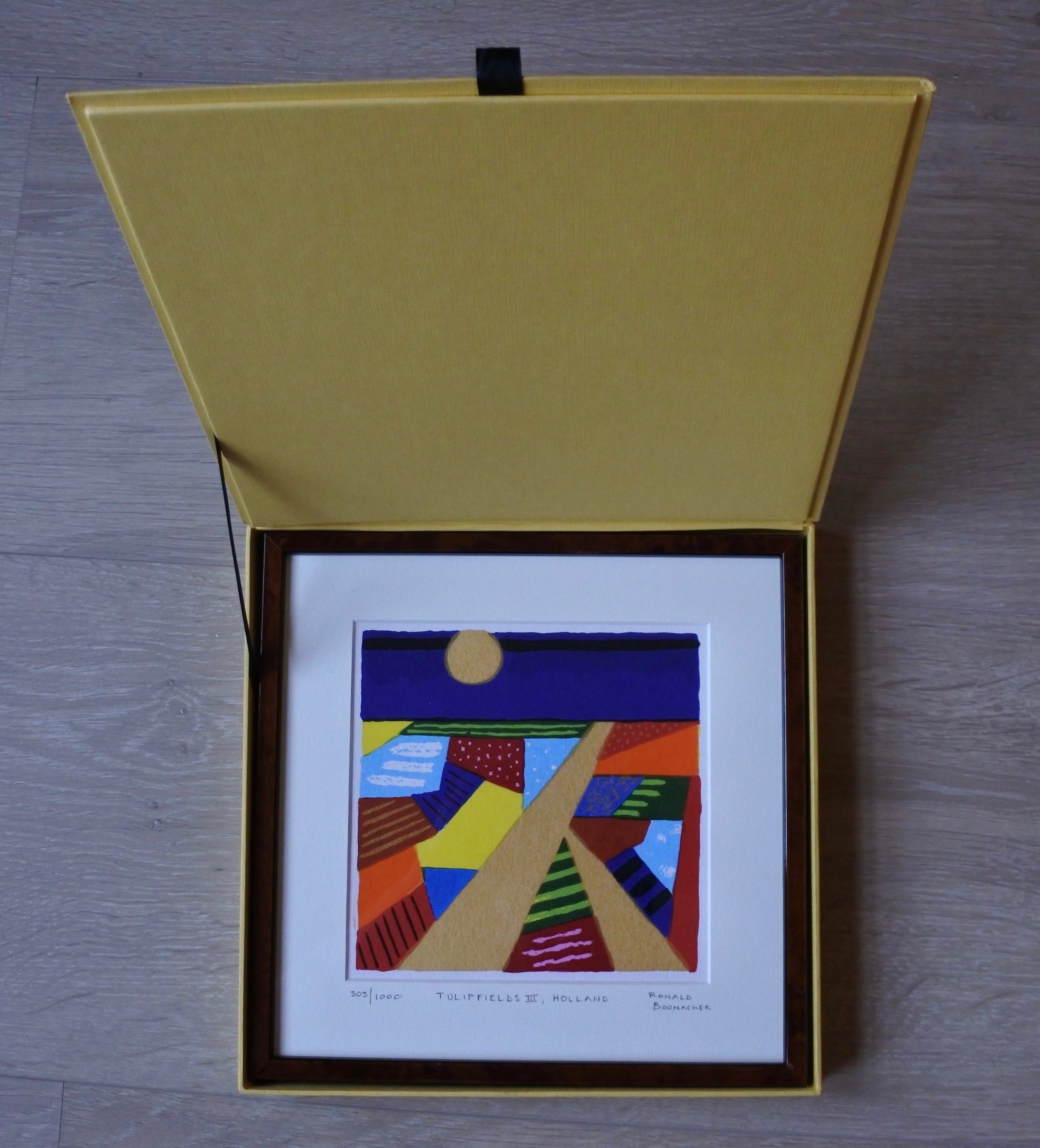 Zeefdruk 20 x 20 cm Lijst 25 x 25 cm Kleur : notenhouten kleur Oplage : 300/1000 Conditie: nieuw "Ready to hang"