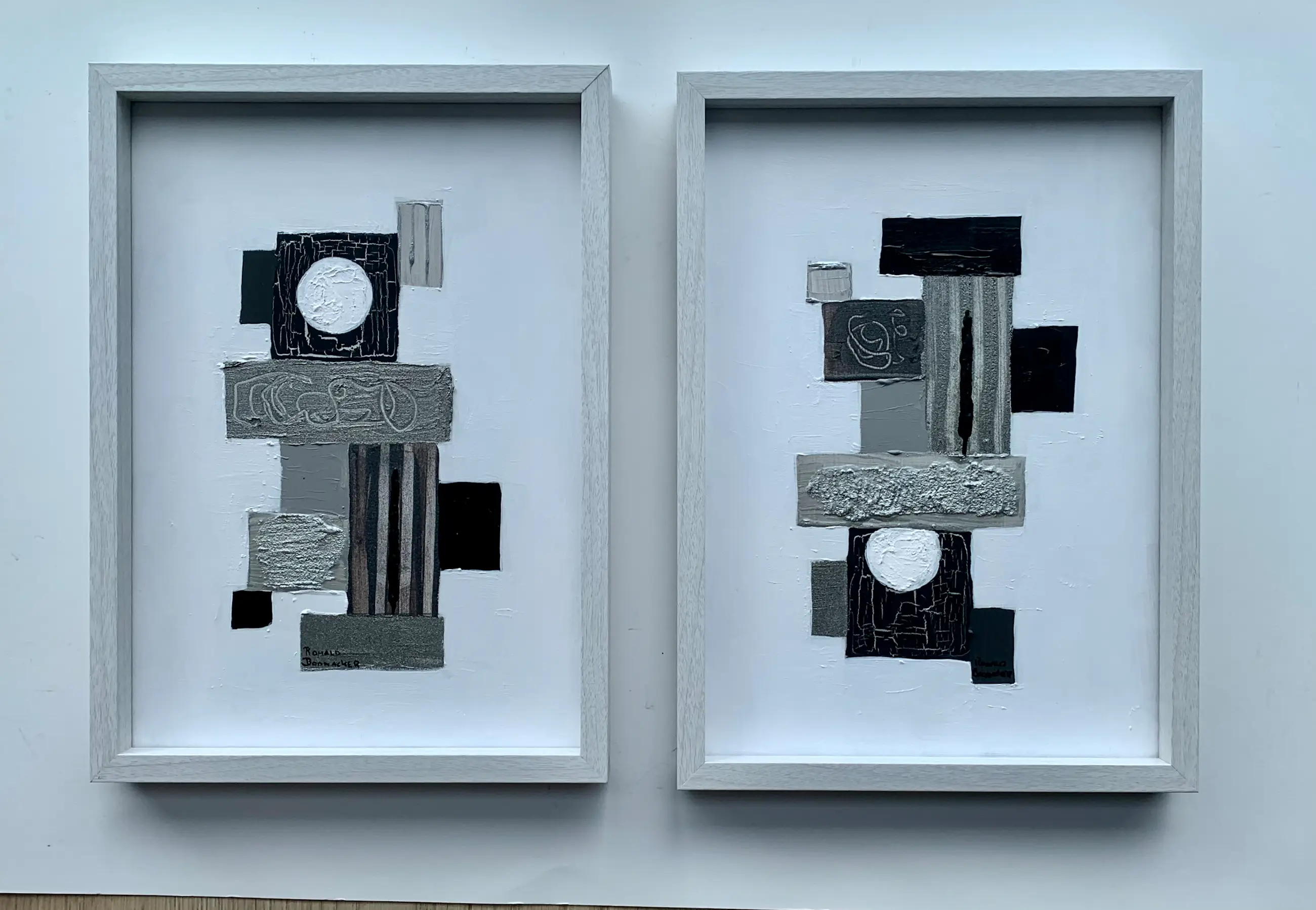 De serie abstracte landschappen zijn geschilderd met prachtige, heldere acryl verf pigmenten. zwart/wit/grijs