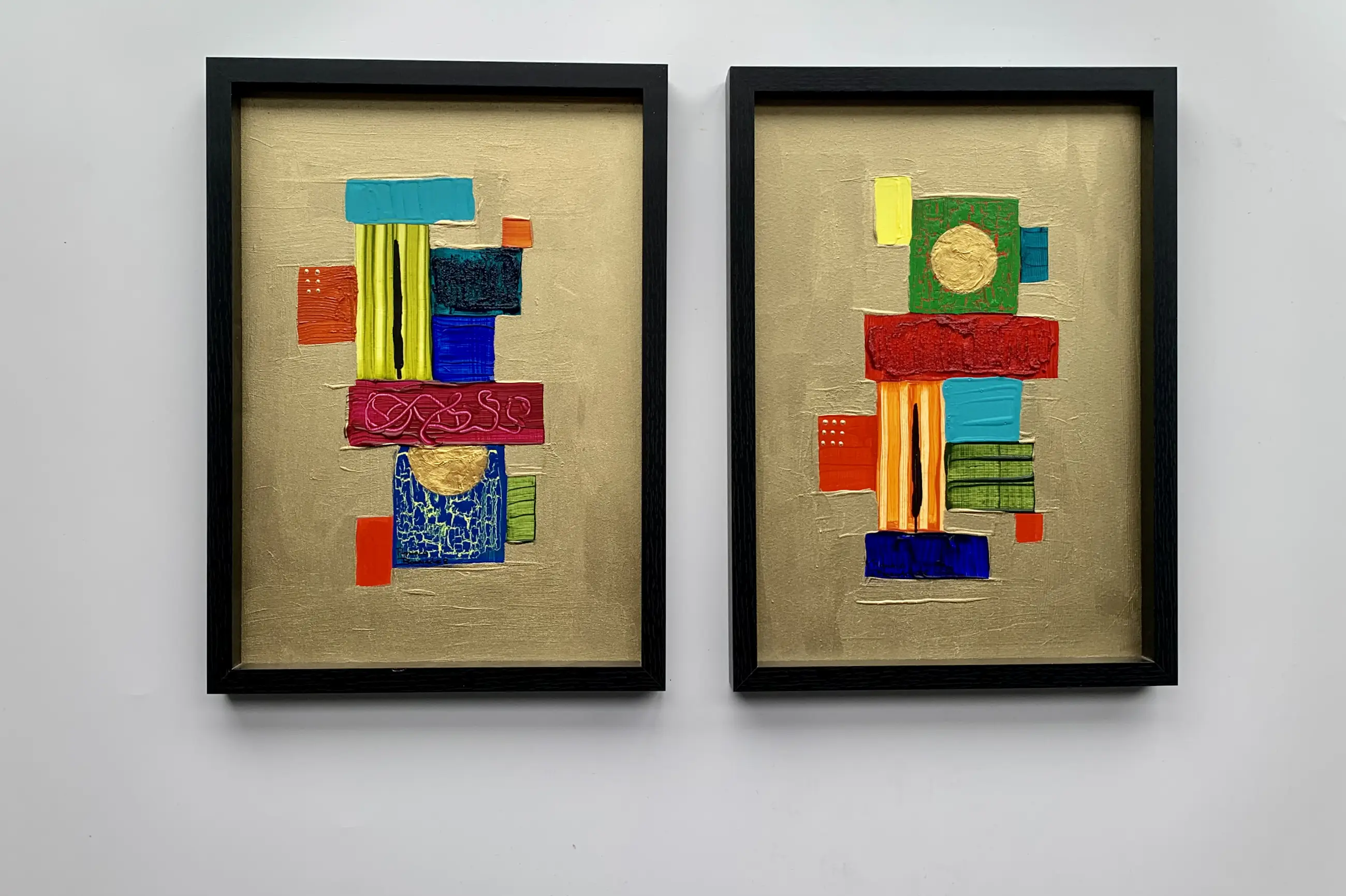 De serie abstracte landschappen zijn geschilderd met prachtige, heldere acryl verf pigmenten.
