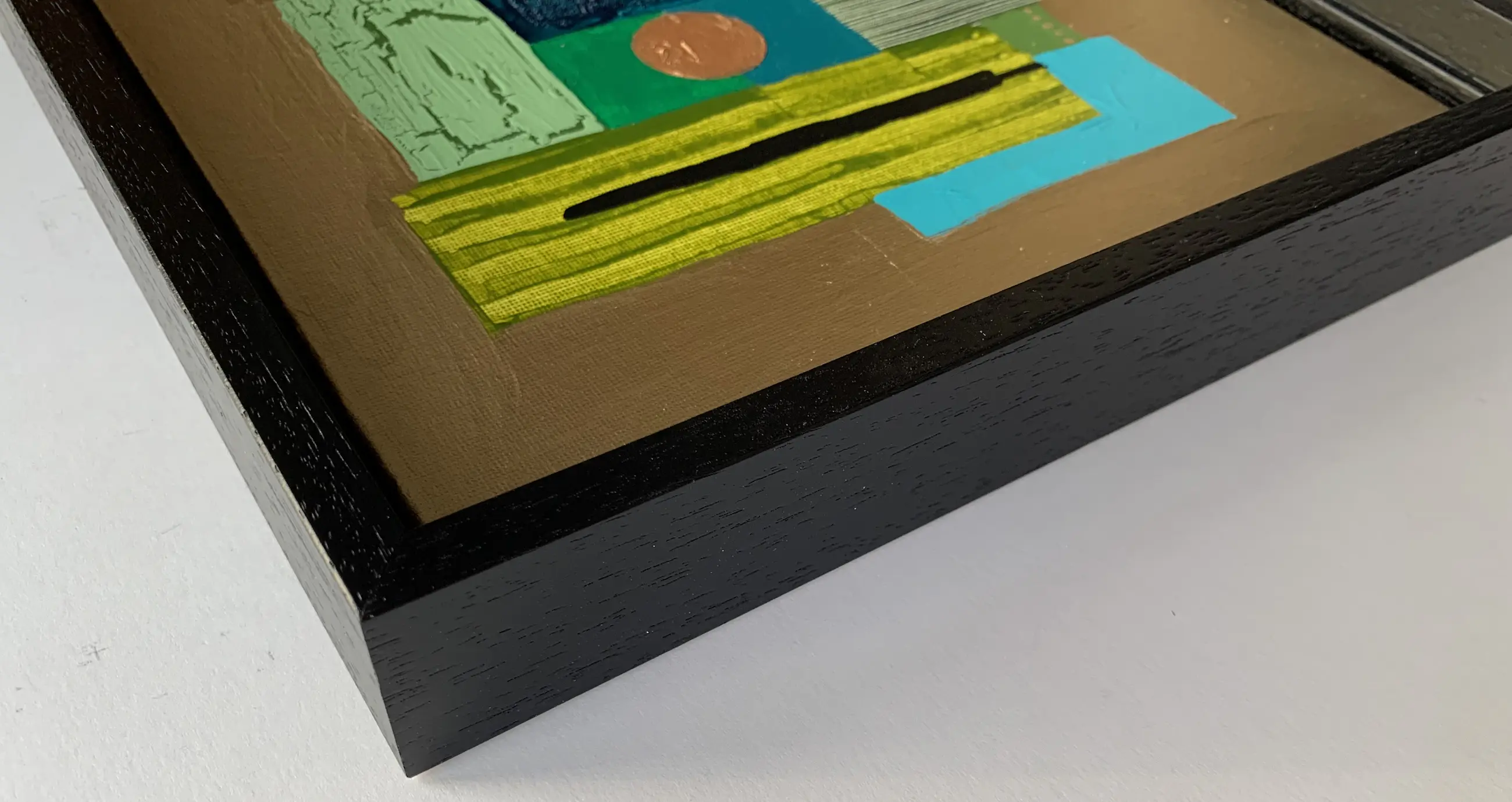 Ingelijst in een mooie zwart houten baklijst (26 x 26 cm)
