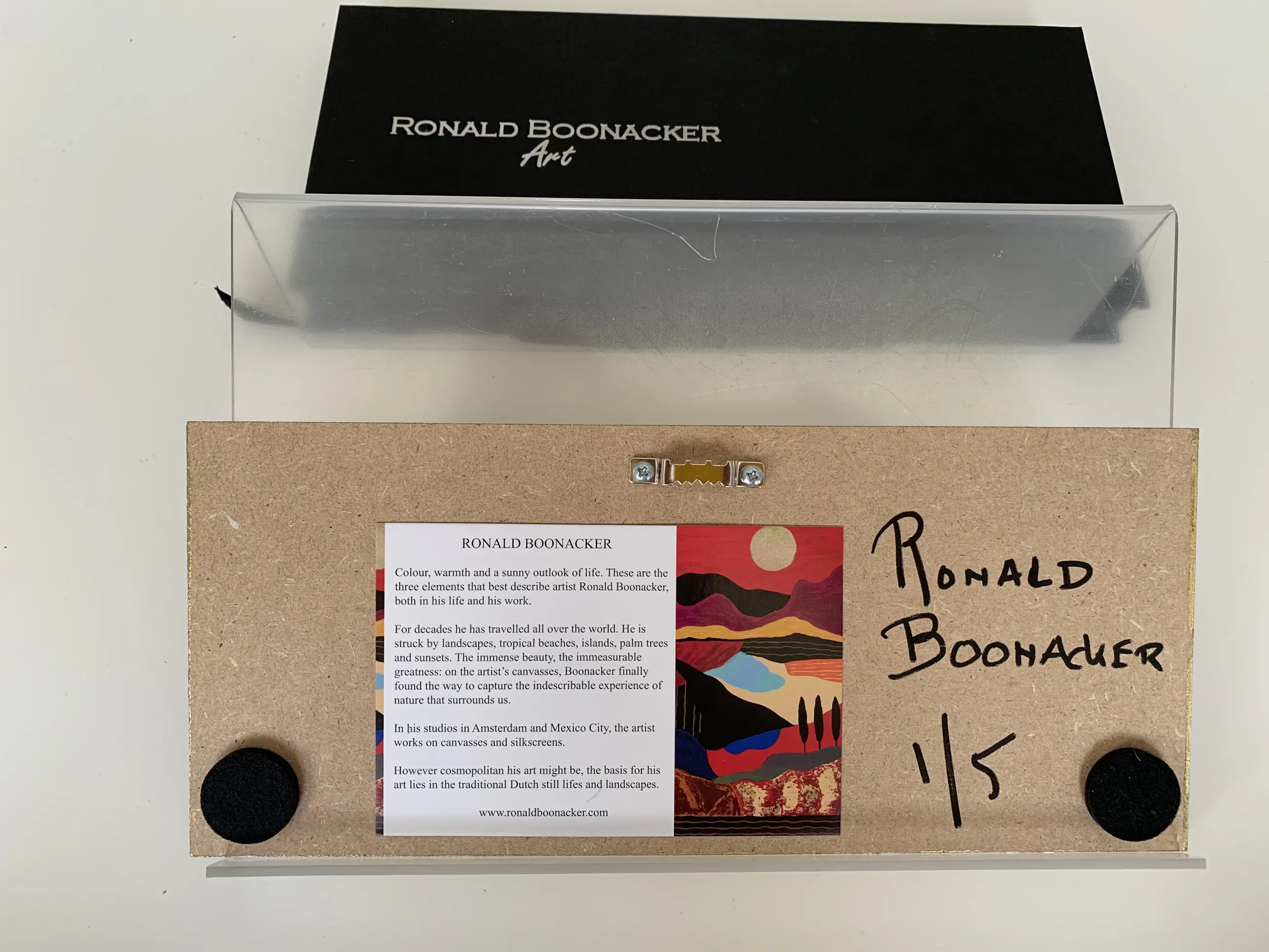 Komt in en luxe geschenk cassette en is voorzien van een ophanghaakje en beschrijving kunstenaar.