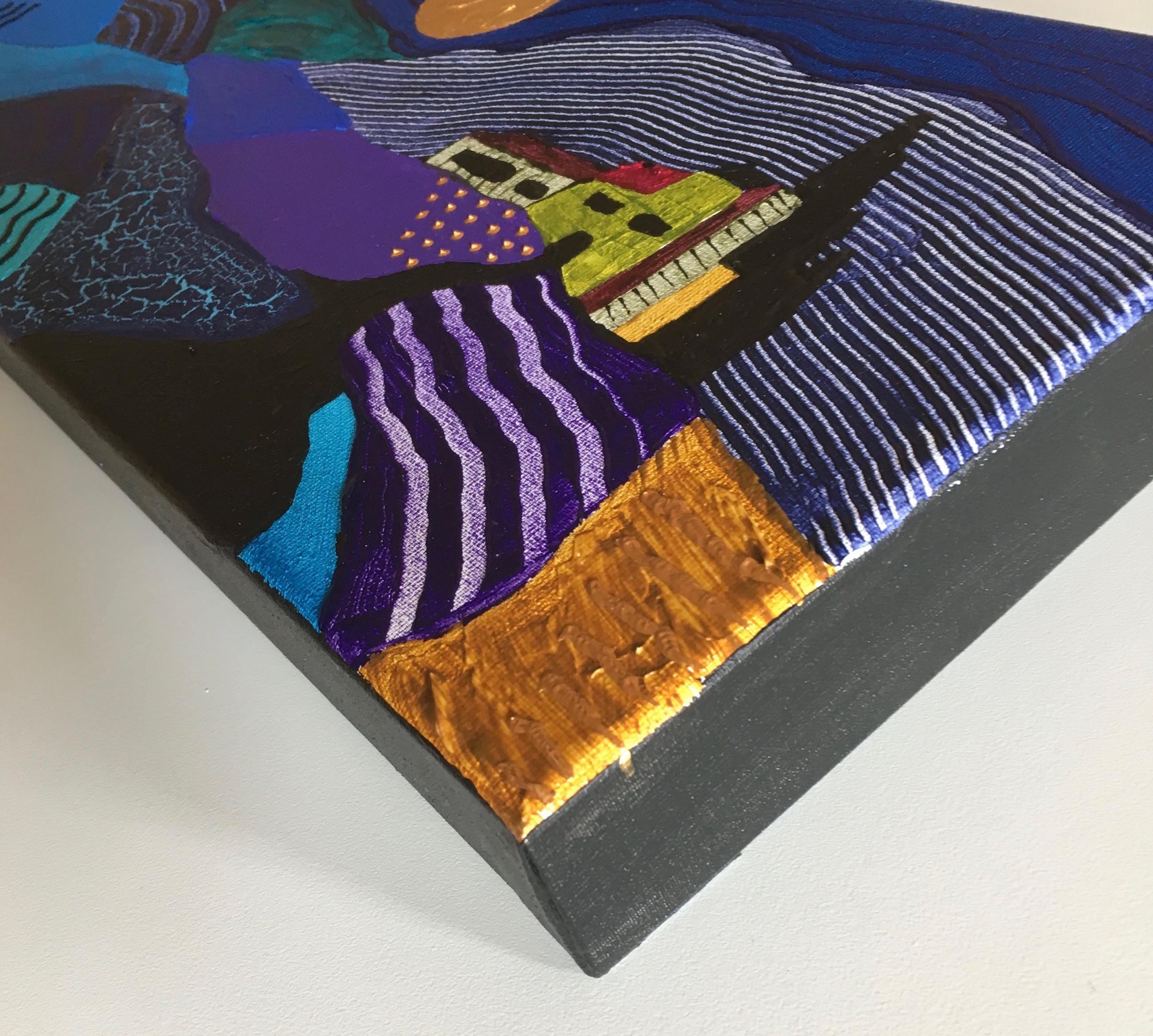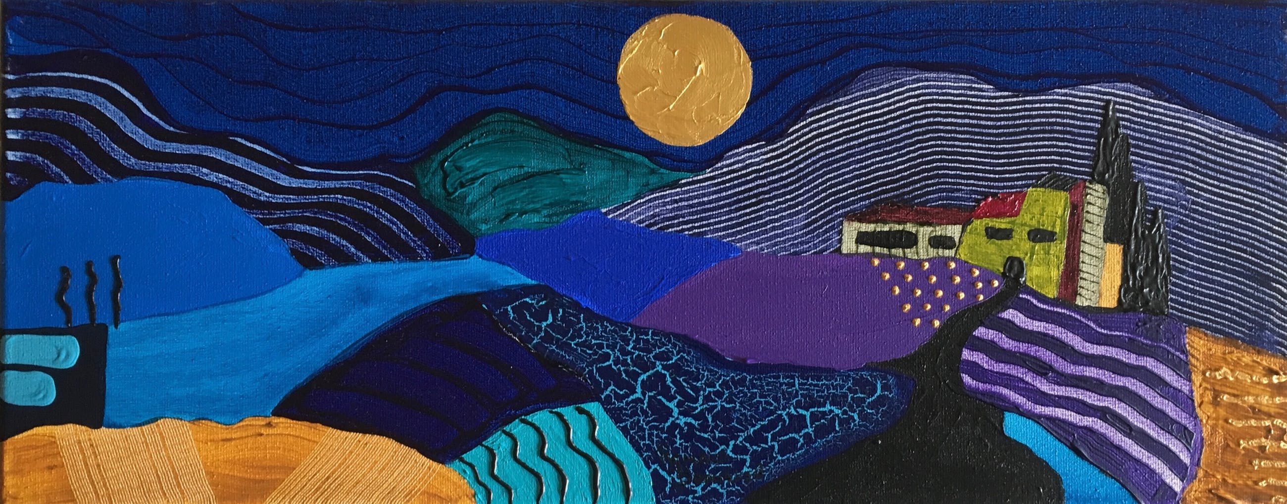 Titel Italiaans Landschap Gespannen op 3,5 cm dik spierraam Afmeting 20 x 50 cm Gesigneerd