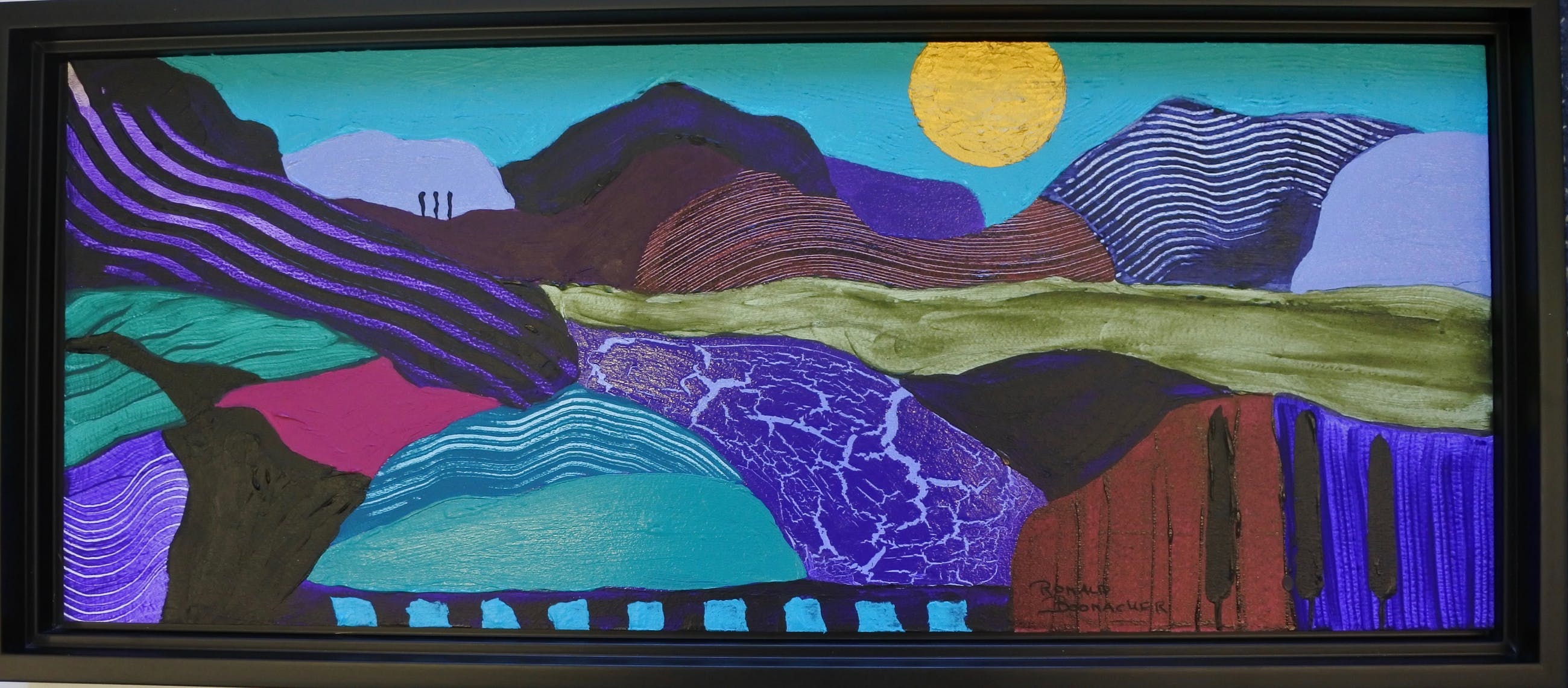 Italiaans LandschapBeeldformaat: 20 x 50 cmLijstformaat: 23,5 x 53,5 (eenvoudige houten zwarte baklijst)Op paneel