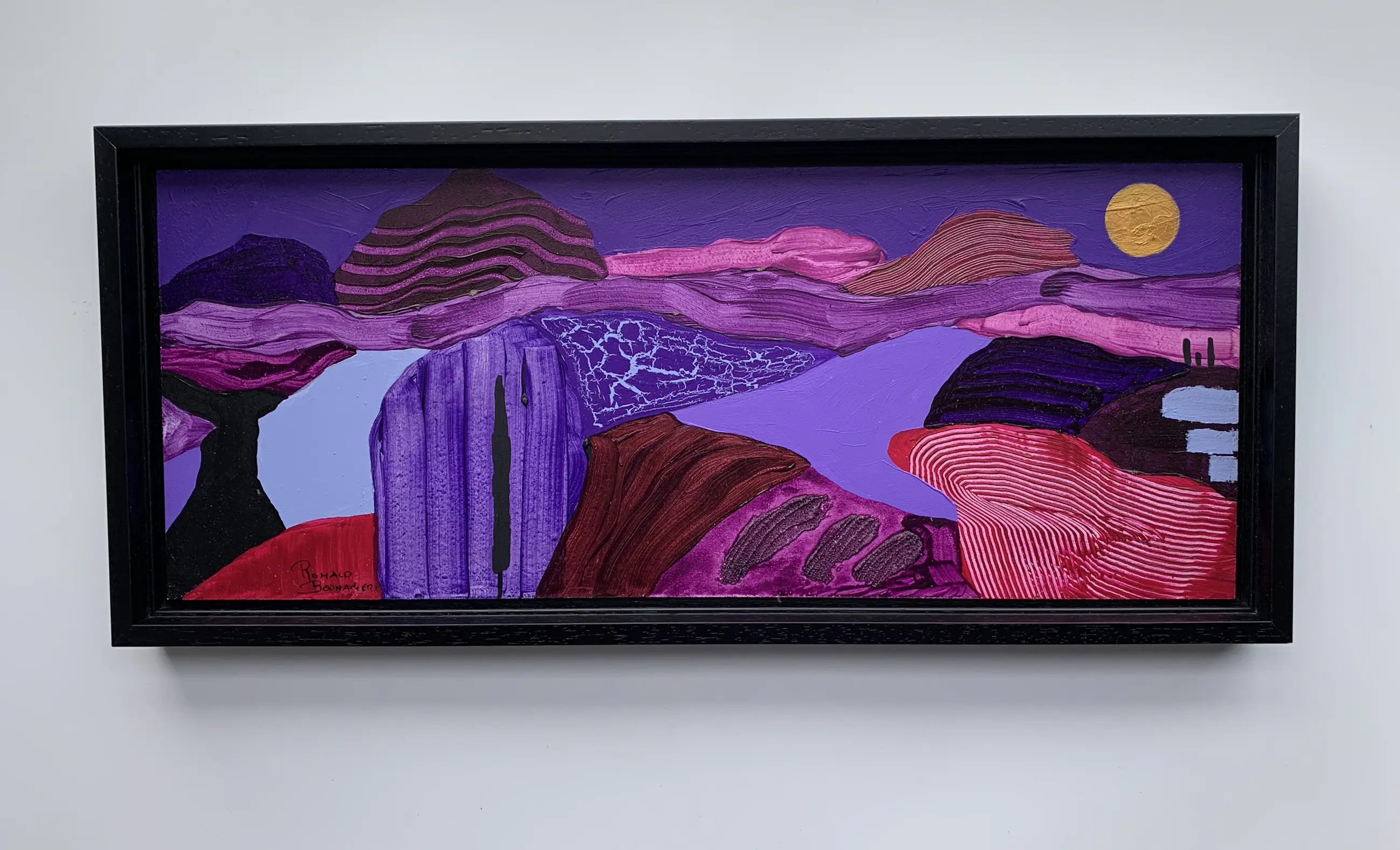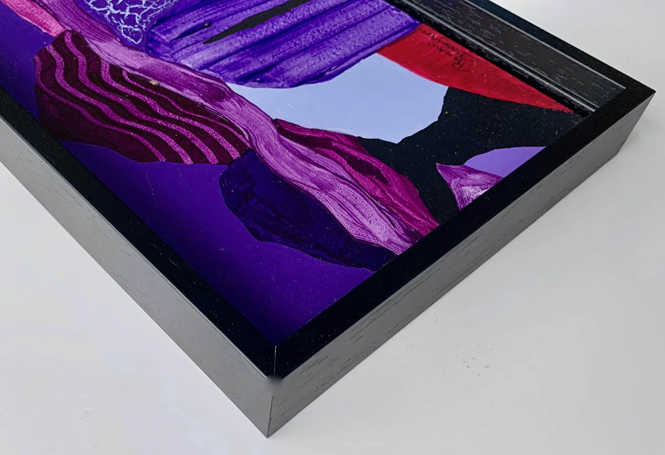 Geschilderd op hout en ingelijst in een mooie zwarte baklijst.